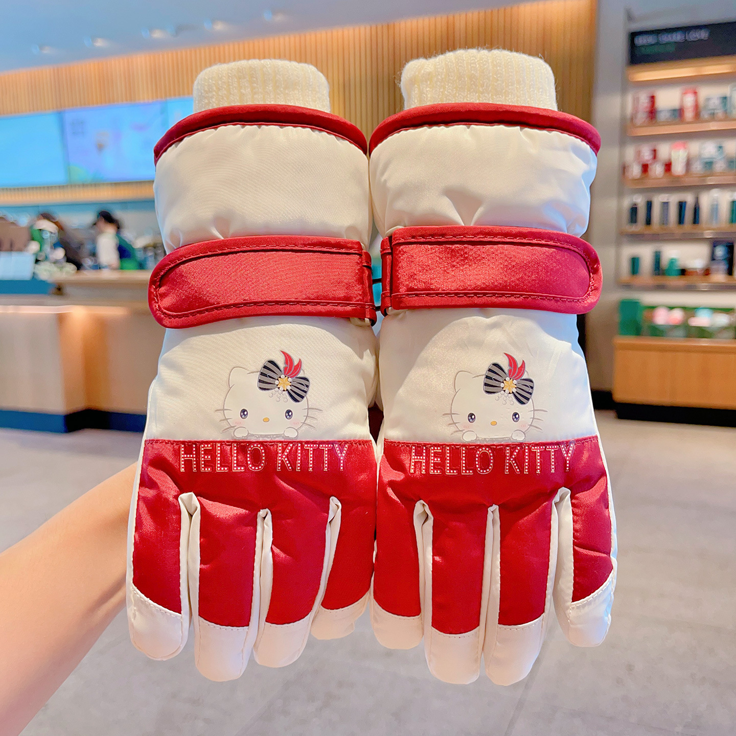 정품 딸기 곰 어린이 스키 장갑 소녀 따뜻한 기모 승마 소녀 방수 부동액 스노우 장갑스토어 가기