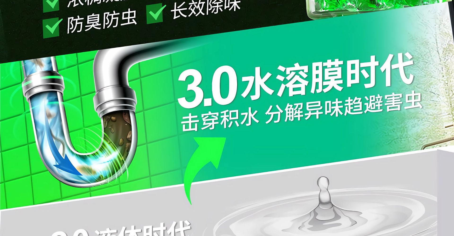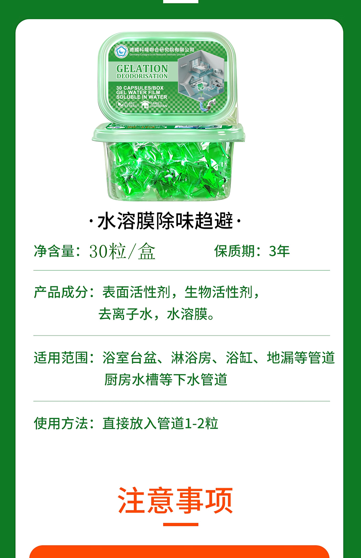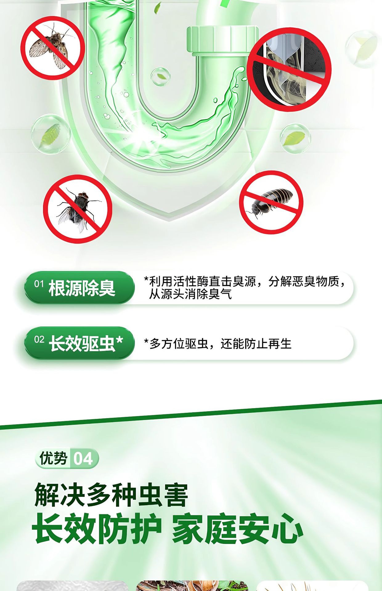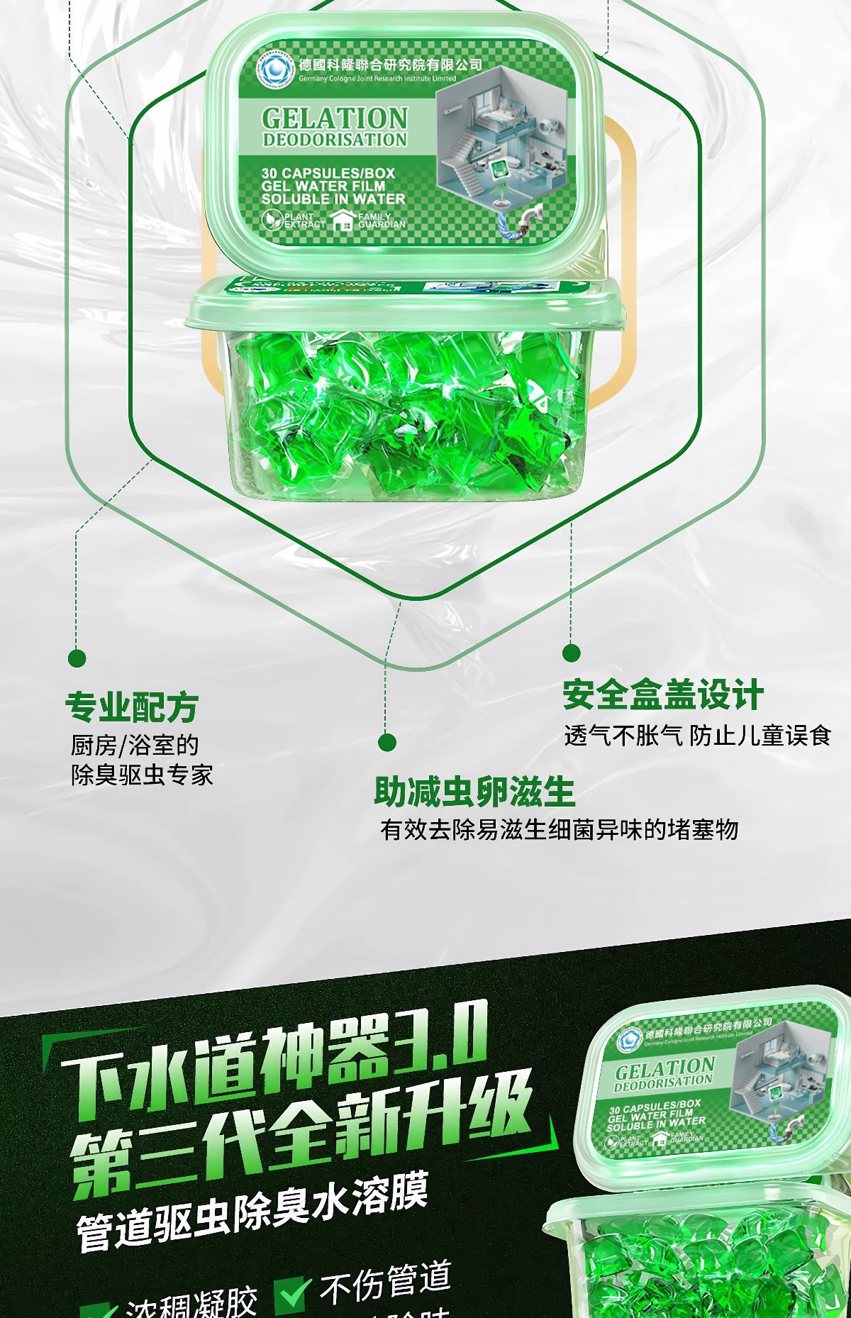 除臭凝珠卫生间厨房通用防返臭神器日常养护下水管口反味地漏除臭