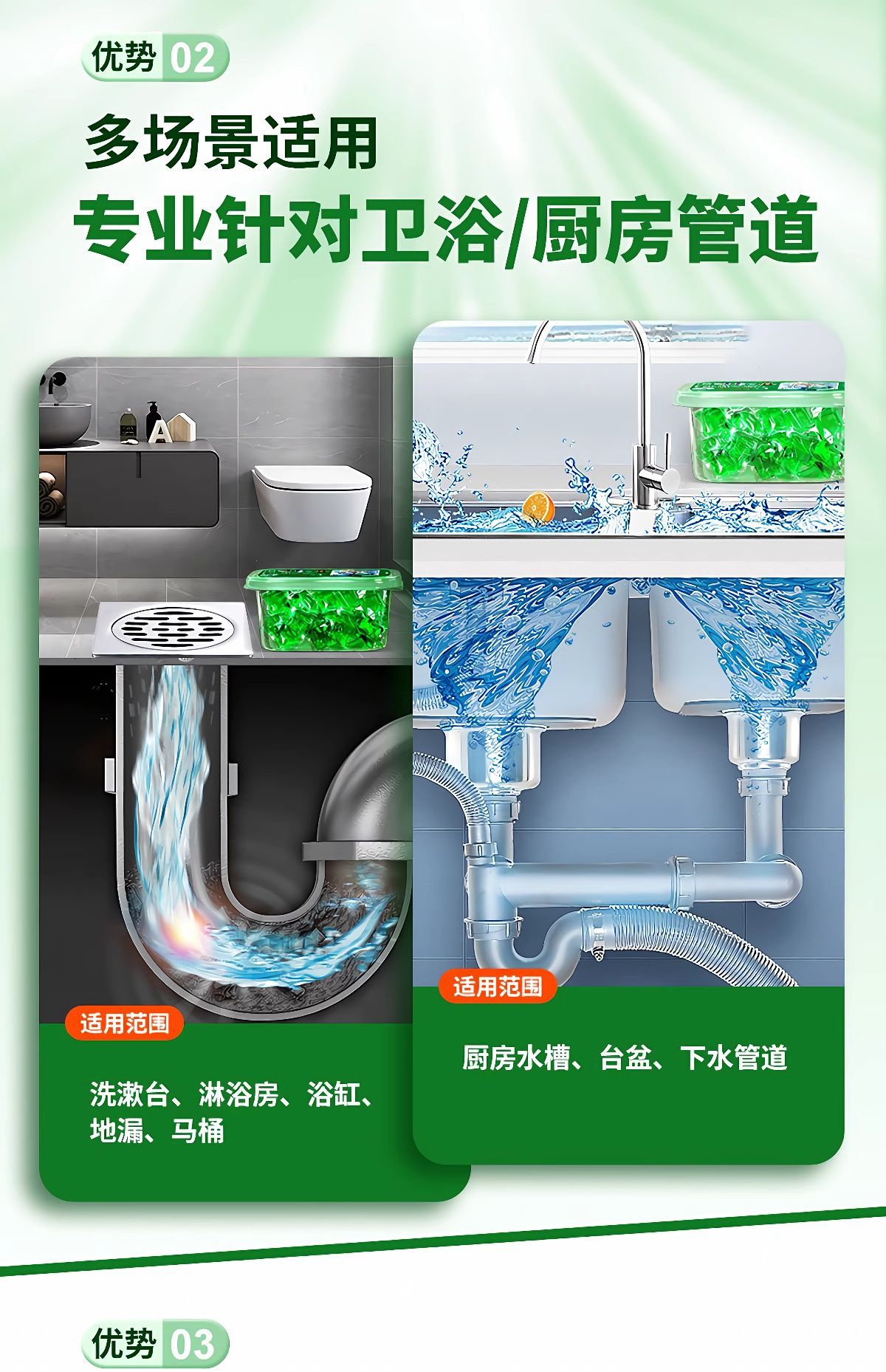 管道疏通剂厨房地漏排水管油污毛发溶解器水槽厕所除臭通下水道
