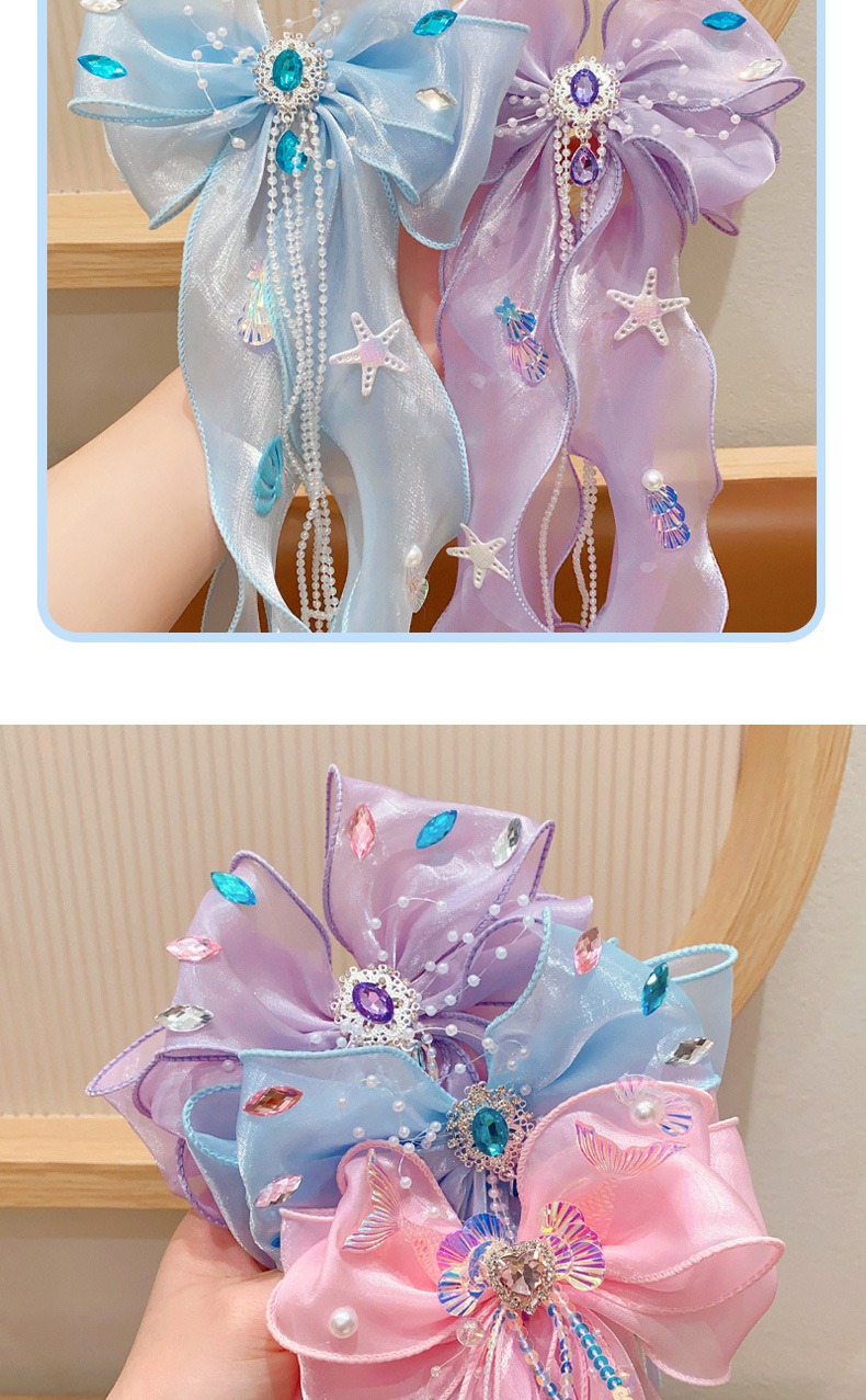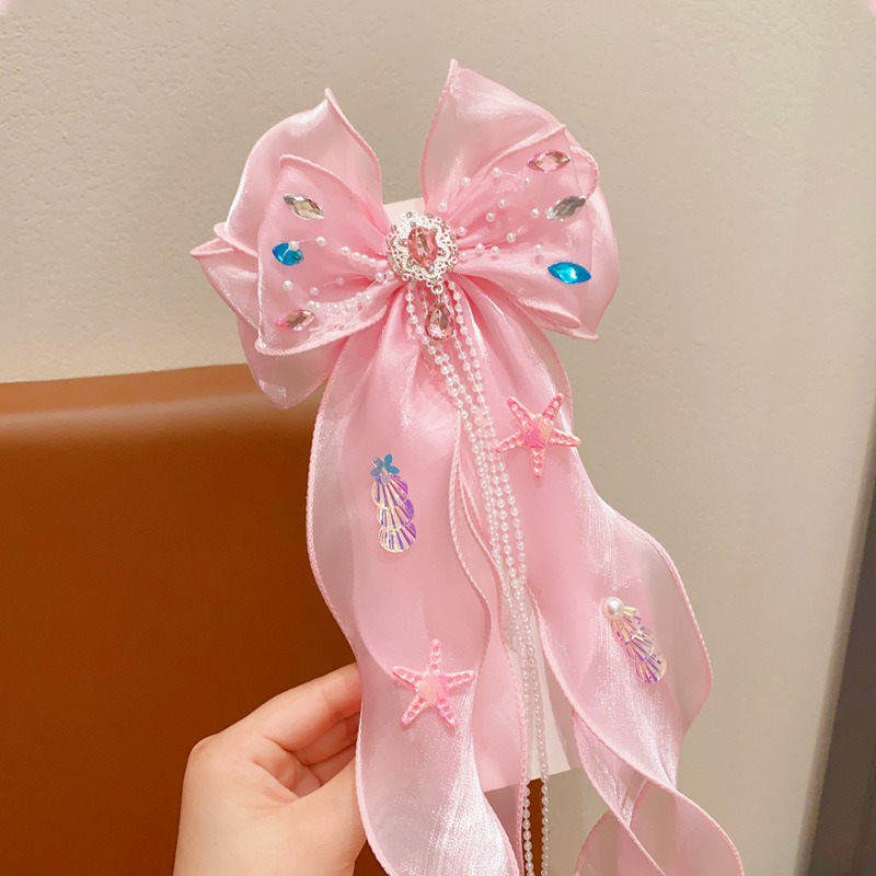 어린이 헤어핀 진주 빛 활 리본 머리핀 슈퍼 불멸의 인어 절묘한 다이아몬드 술 어린이 헤어 액세서리