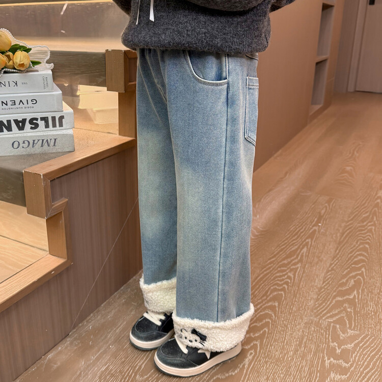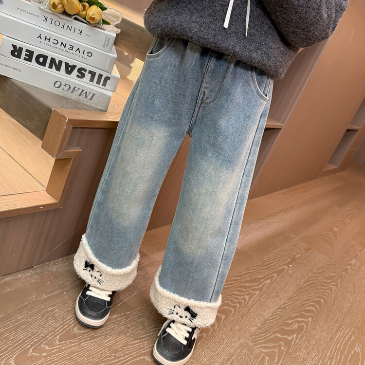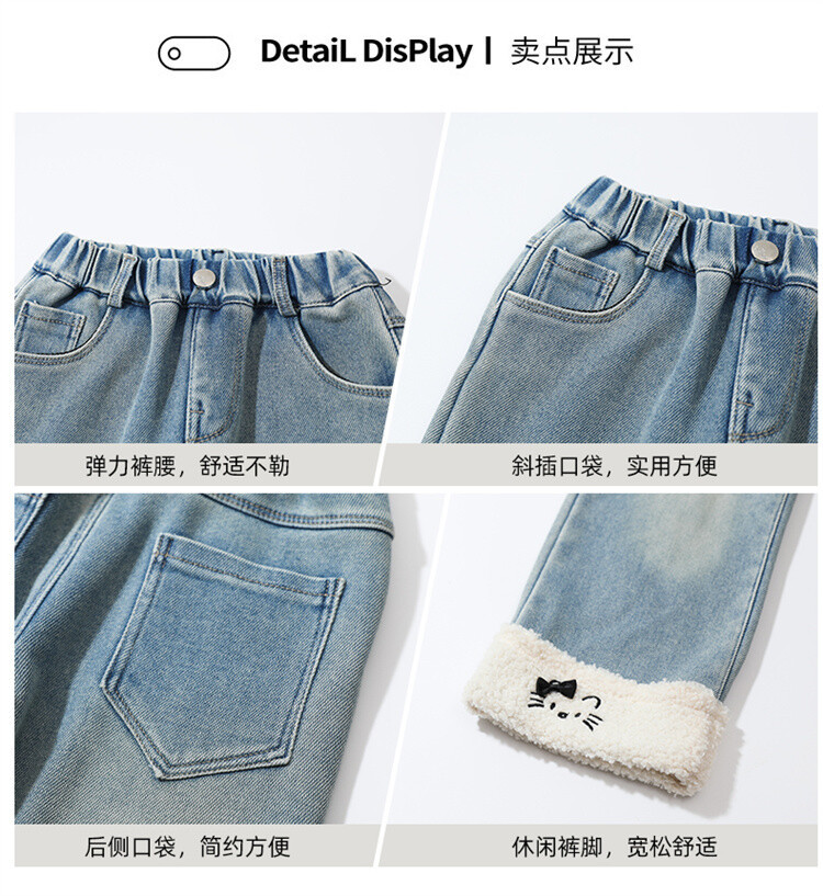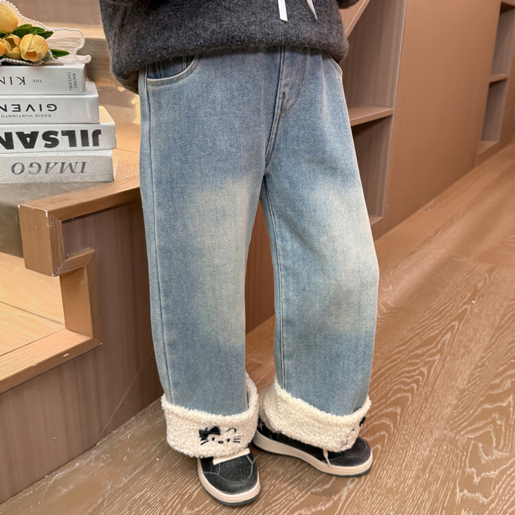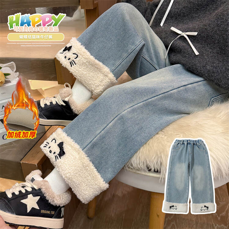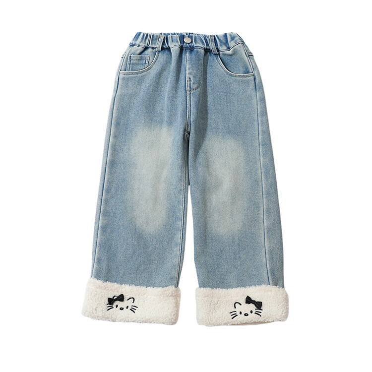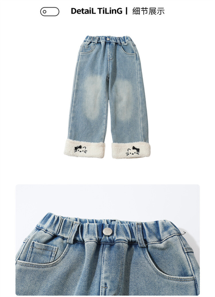 소녀 바지 기모 어린이 청바지 2024 새로운 소녀 스타일 두꺼운 바지 아기 캐주얼 바지스토어 가기