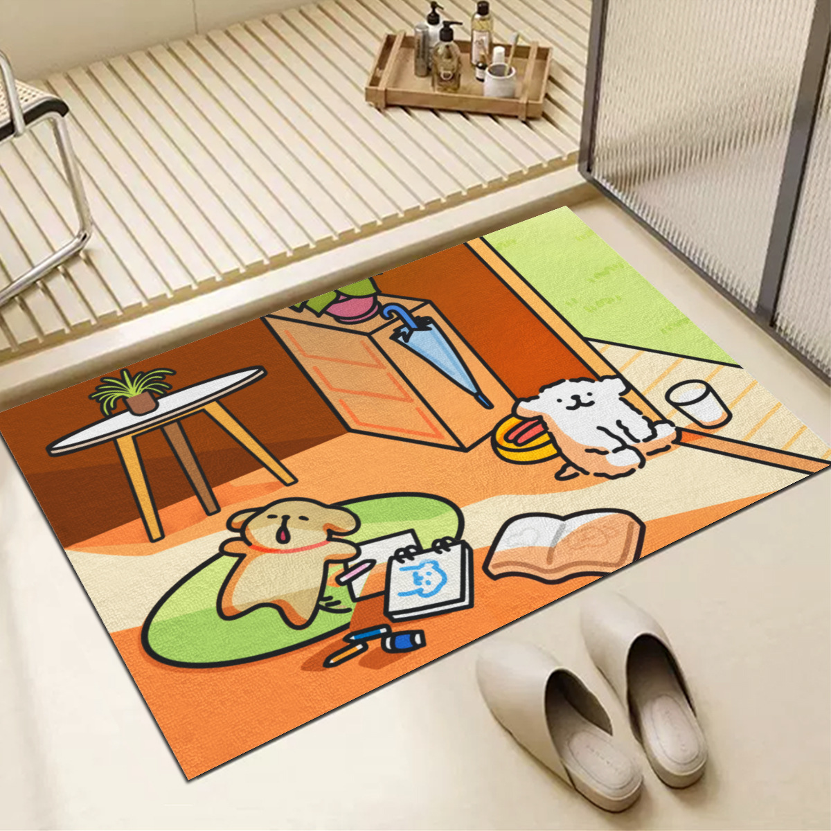 귀여운 강아지 화장실 욕실 흡수성 미끄럼 방지 내마모성 바닥 매트 화장실 가정용 출입구 흡수성 발 매트