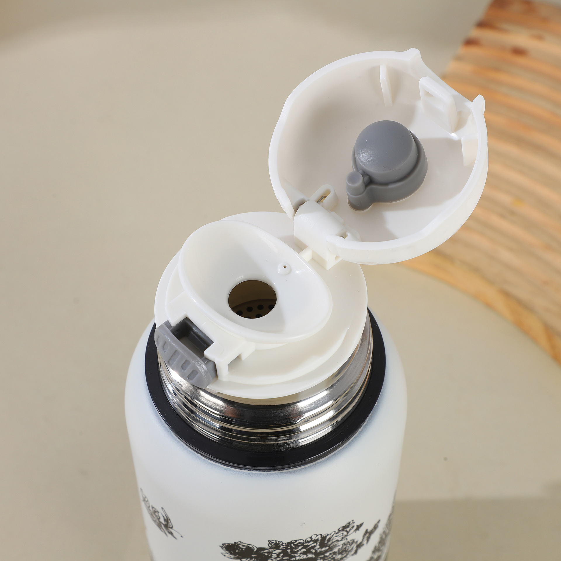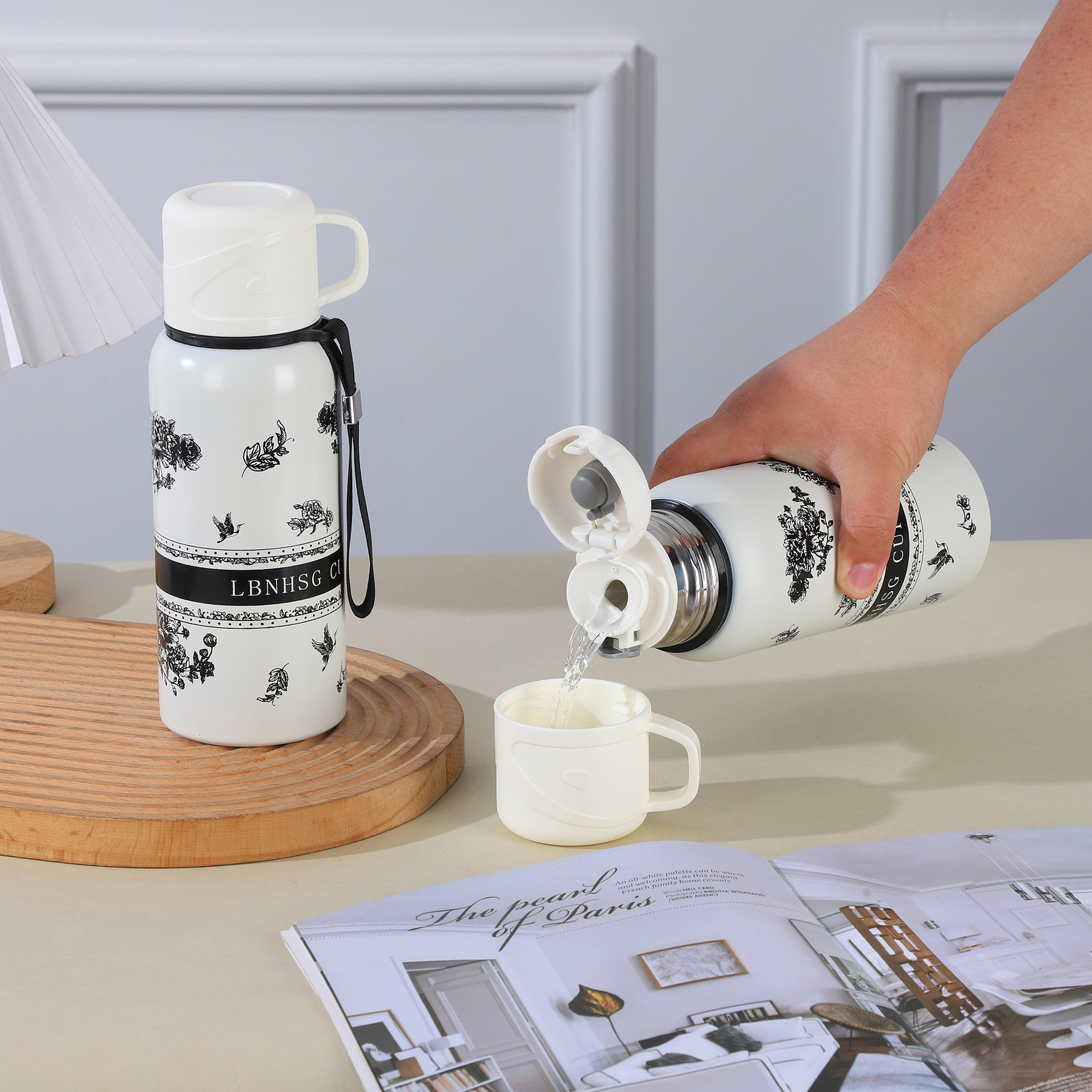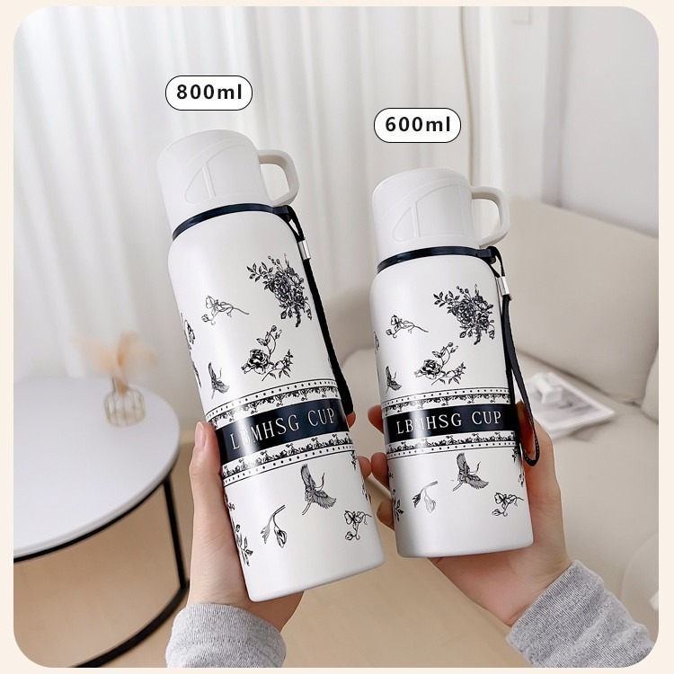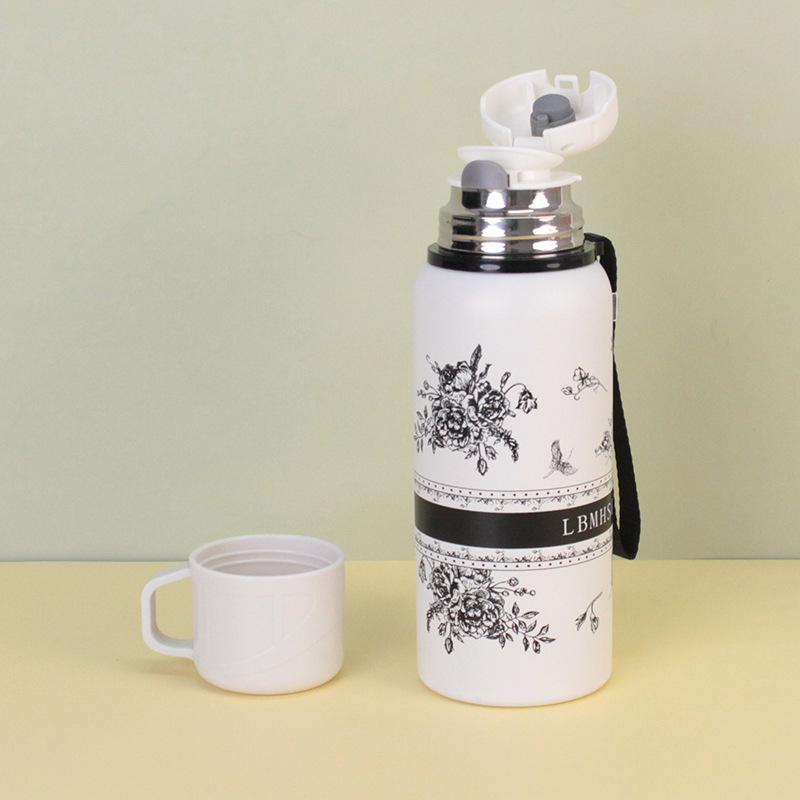 새로운 흰색 치자 나무 보온병 컵 높은 색상 값 차 배수 커피 컵 야외 여행 대용량 물 컵