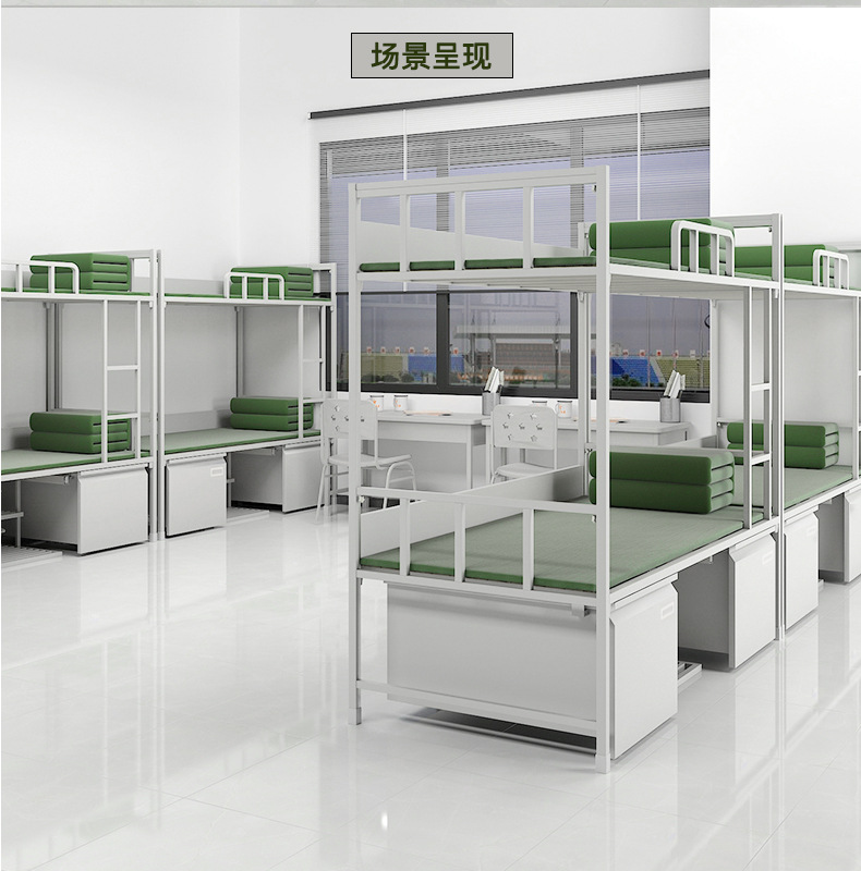 이층 침대 유닛 상부 및 하부 이층 철제 프레임 침대 직원 기숙사 침대 하부 테이블 내부 캐비닛 연구 테이블