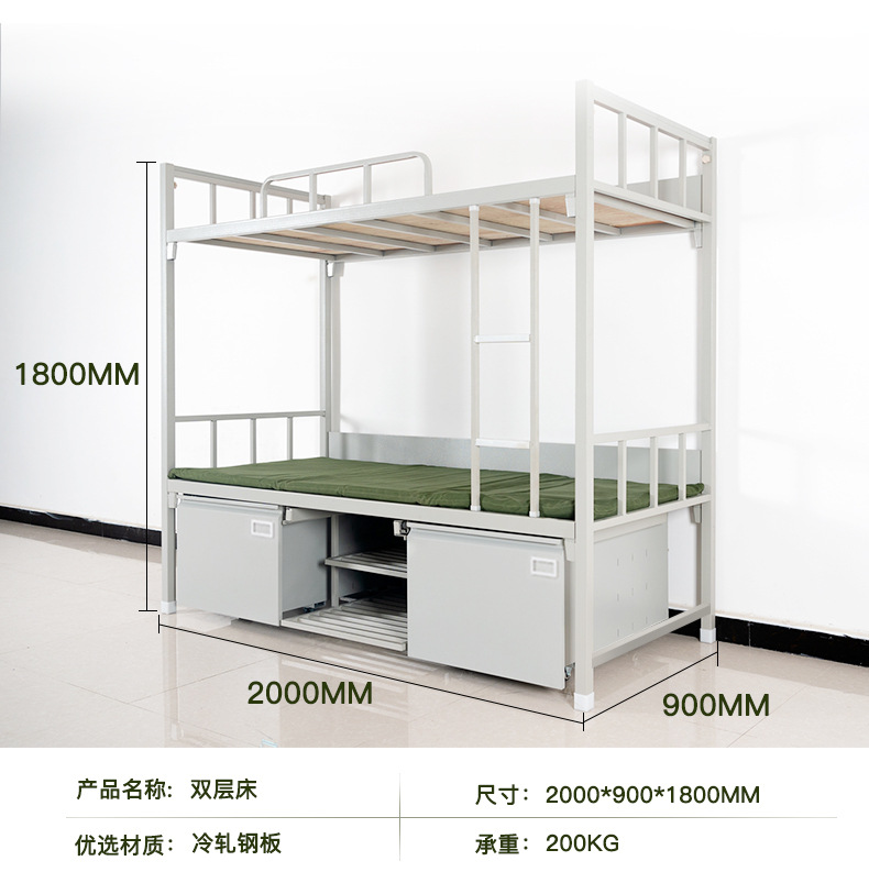 이층 침대 유닛 상부 및 하부 이층 철제 프레임 침대 직원 기숙사 침대 하부 테이블 내부 캐비닛 연구 테이블스토어 가기