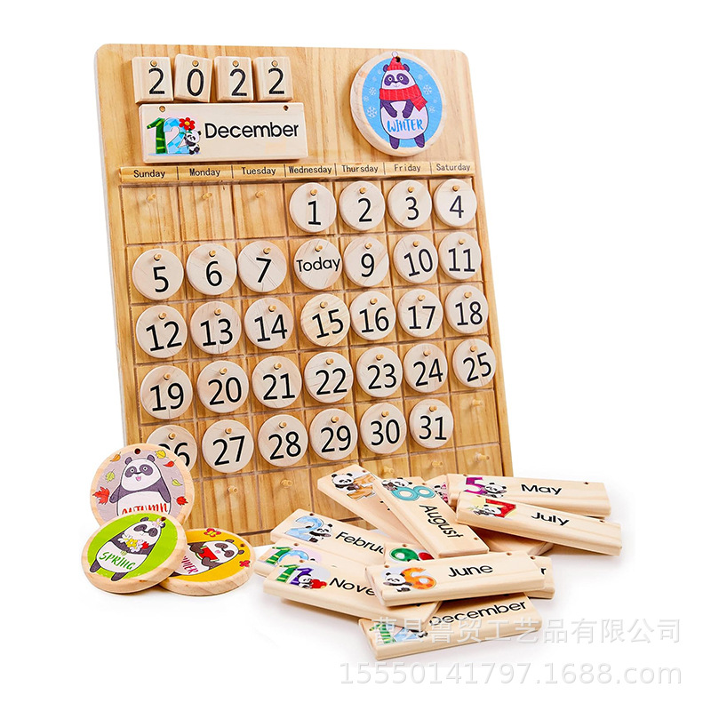 계몽주의 교육은 나무 공예 어린이 교실 교재를 지원합니다 몬테소리 장난감 창조적 인 단단한 나무 영원한 달력