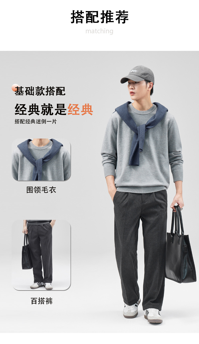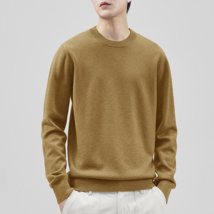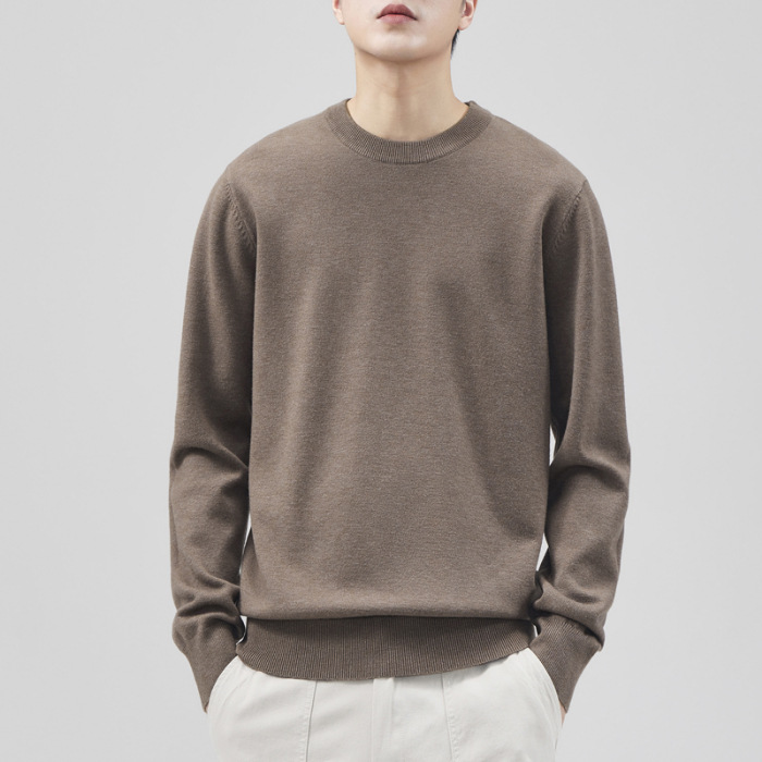 상구 남성복 양모 자체 발열 스웨터 남성용 라이셀 텐셀 니트 라운드넥 가을 남성 스웨터스토어 가기