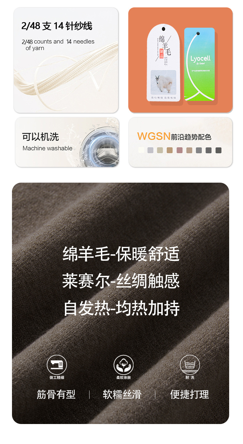 상구 남성복 양모 자체 발열 스웨터 남성용 라이셀 텐셀 니트 라운드넥 가을 남성 스웨터