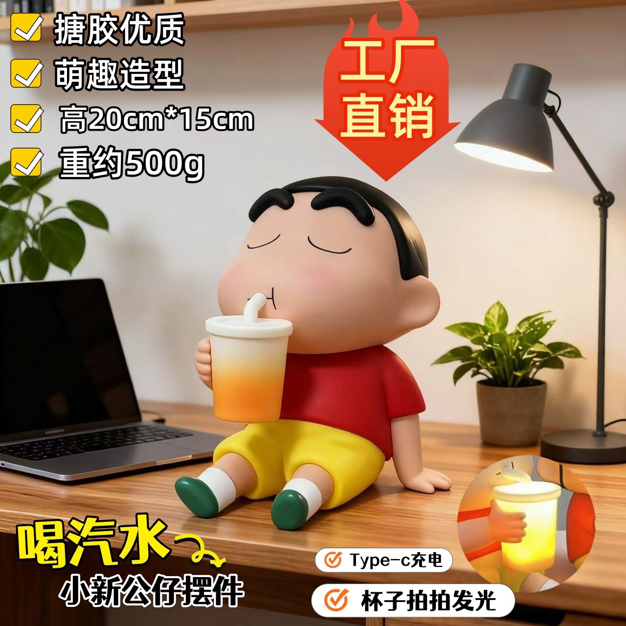 대형 크레용신짱 피규어 트렌디 장난감 모델 인형 밀크티 신짱 홈 장식용 에폭시 제조업체 직판