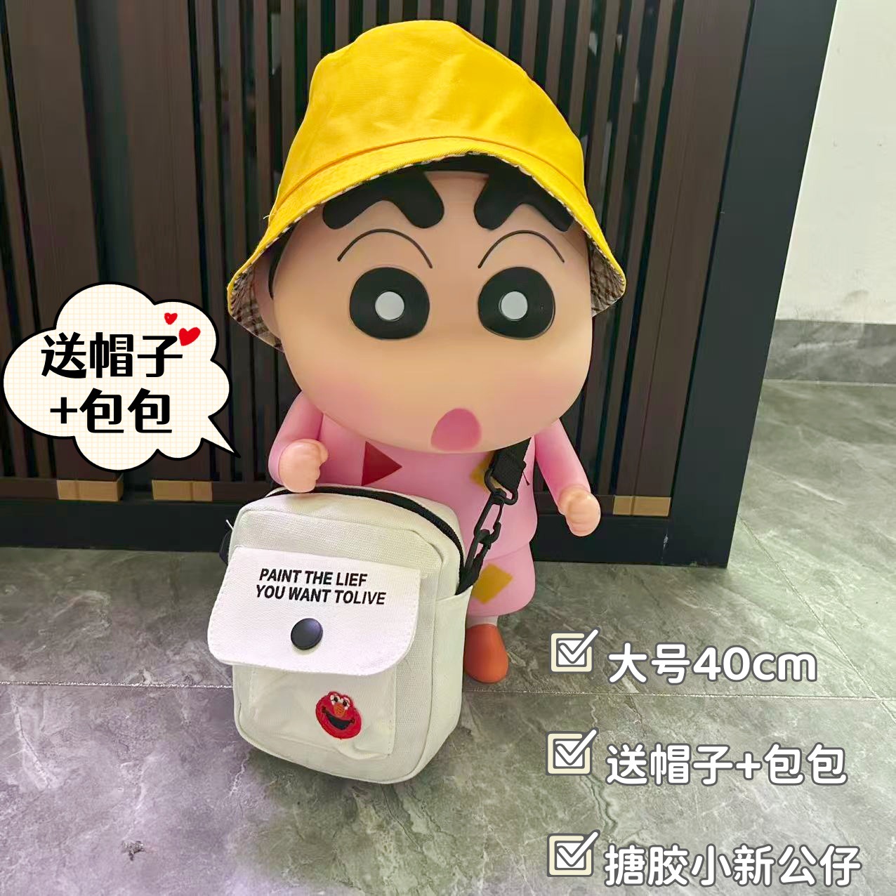 • 대형 40cm 스탠딩 핑크 샤오신 + 모자 + 가방