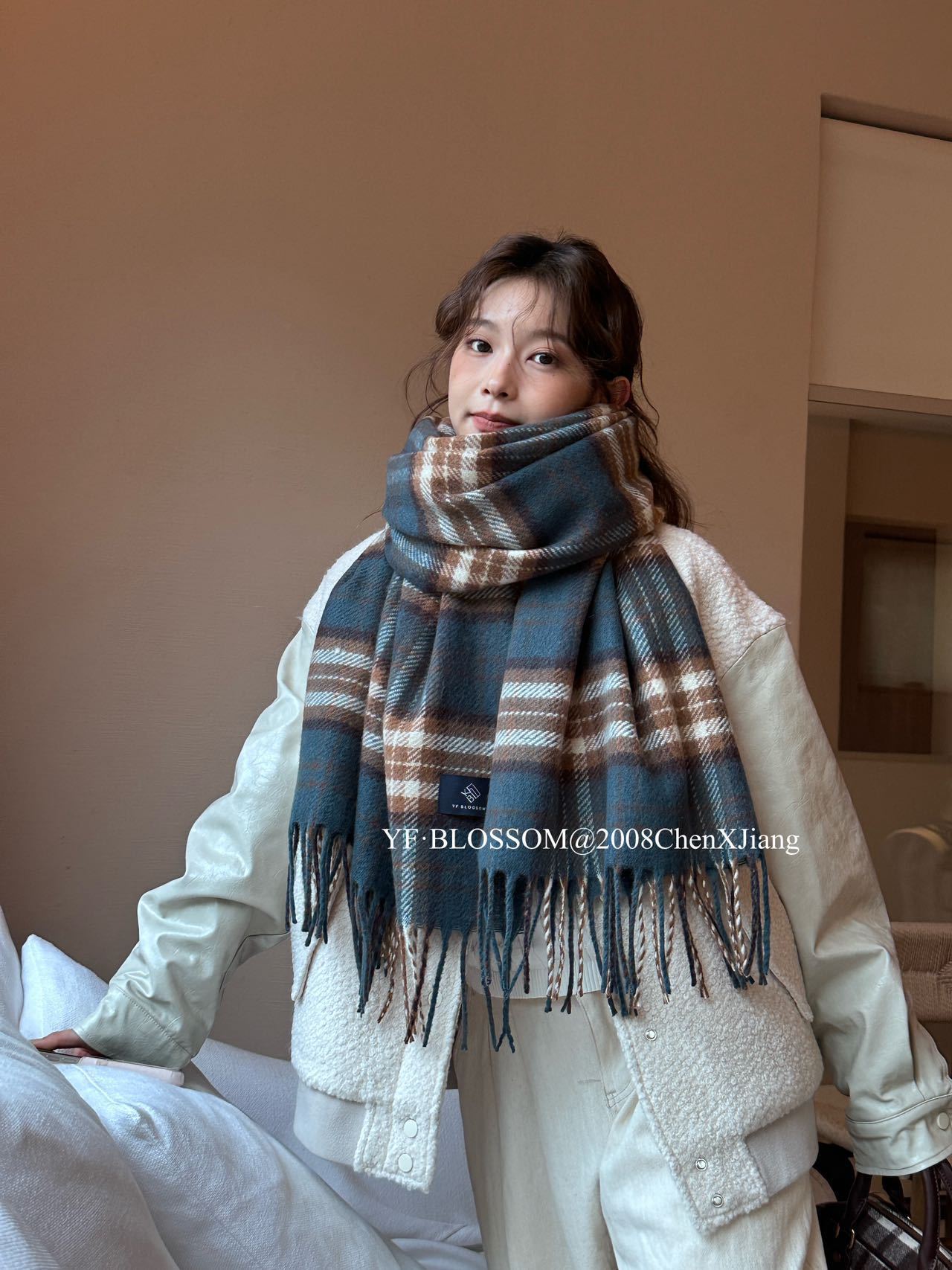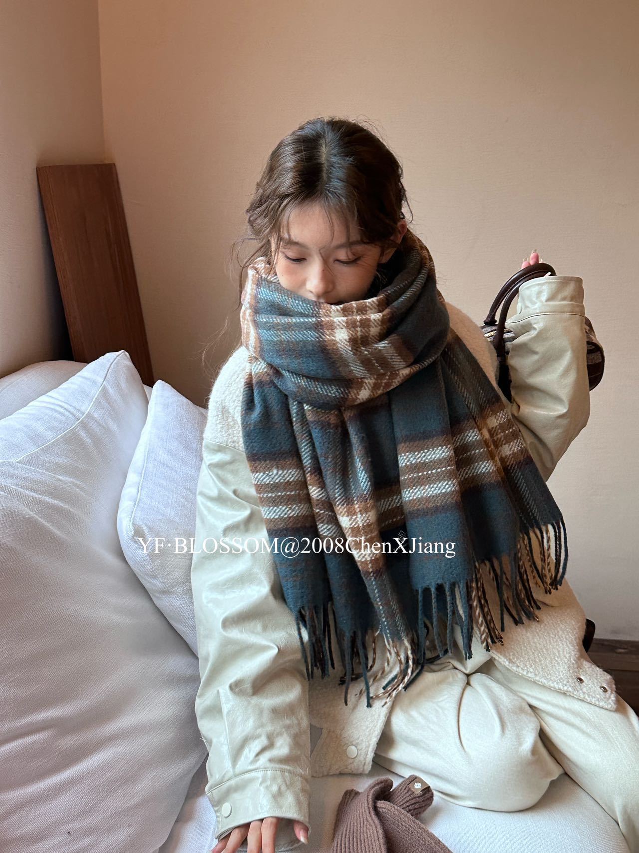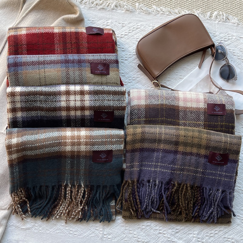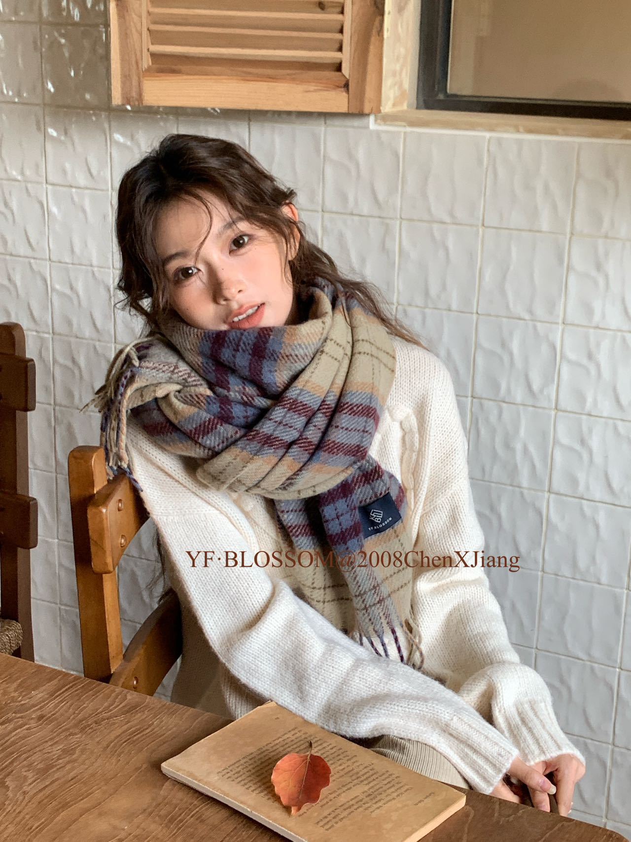 2024SS 한국 이스트 게이트 화이트 스카프 가을과 겨울 따뜻한 조커 레트로 체크 무늬 스카프 목도리 인 트렌디스토어 가기