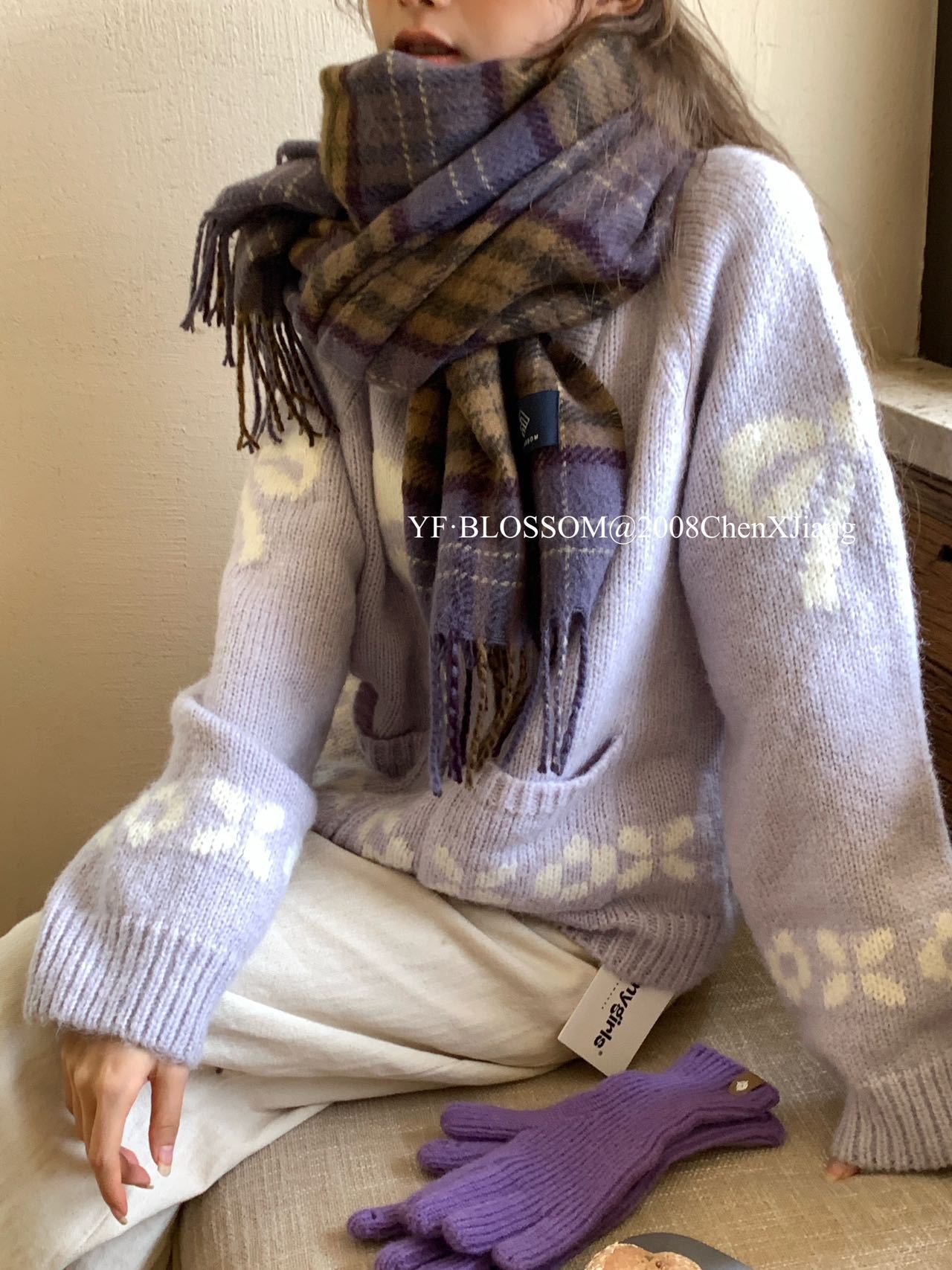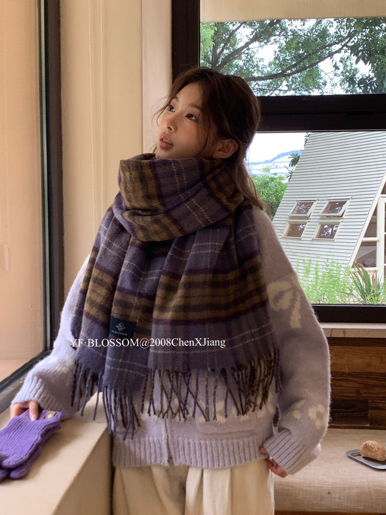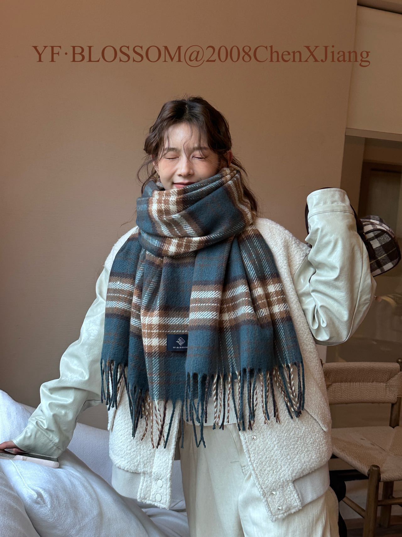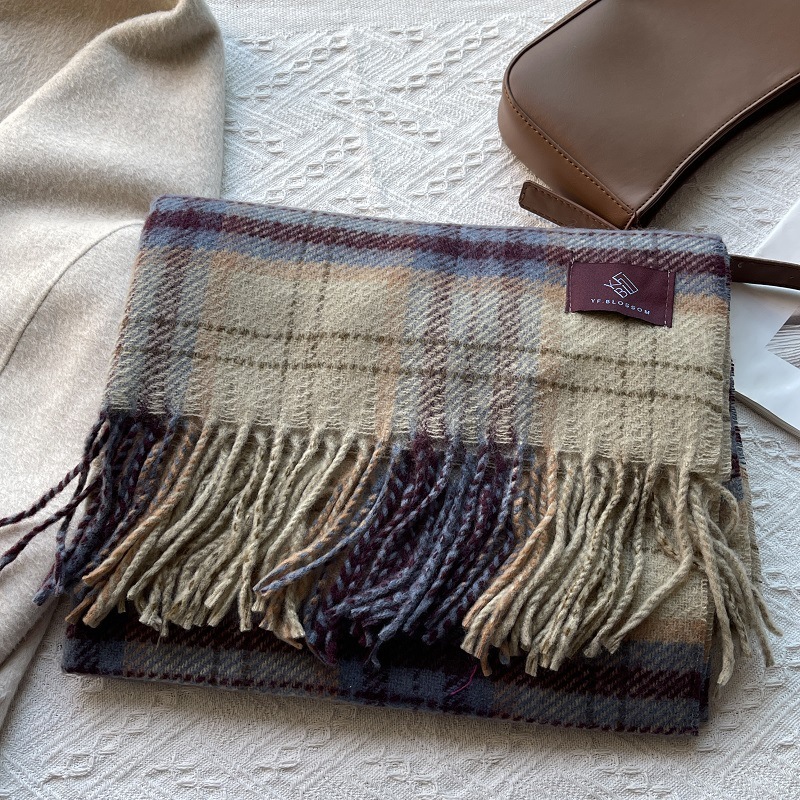 2024SS 한국 이스트 게이트 화이트 스카프 가을과 겨울 따뜻한 조커 레트로 체크 무늬 스카프 목도리 인 트렌디스토어 가기