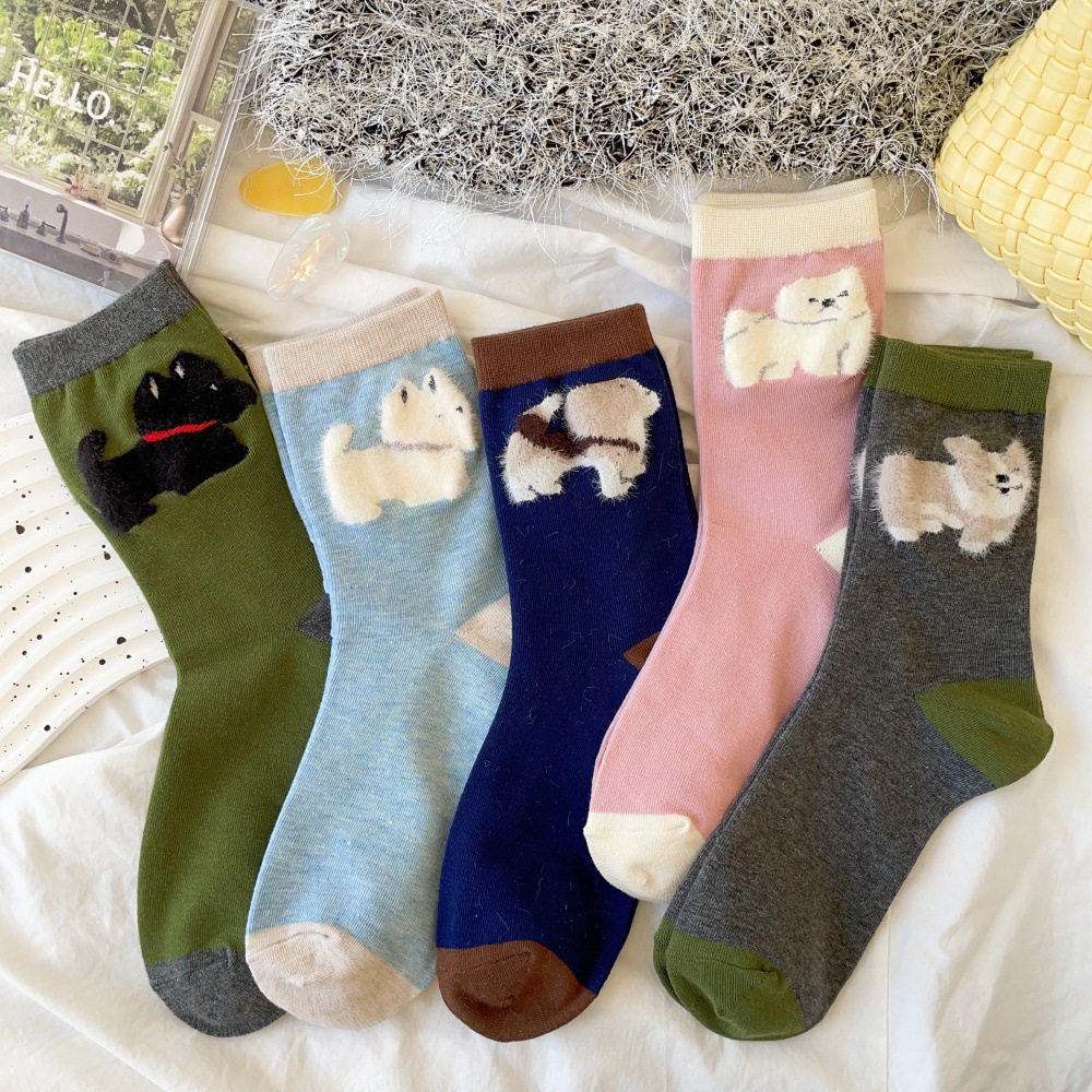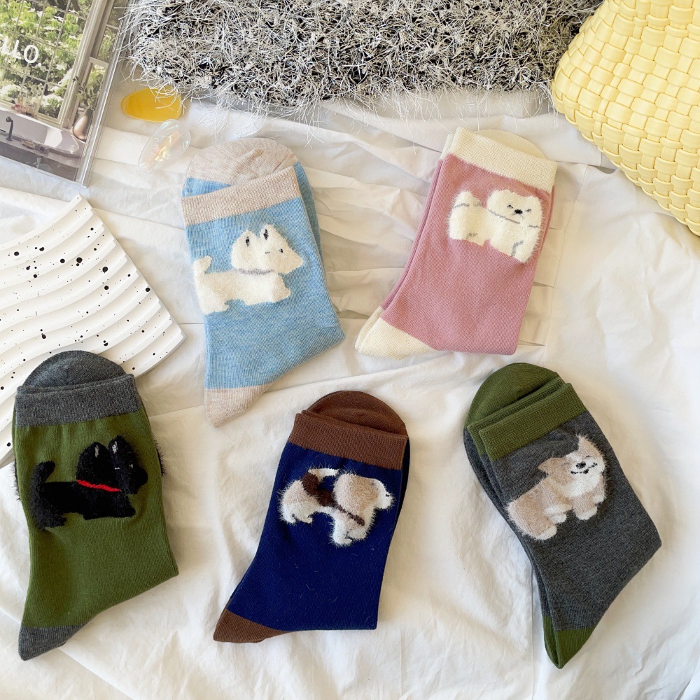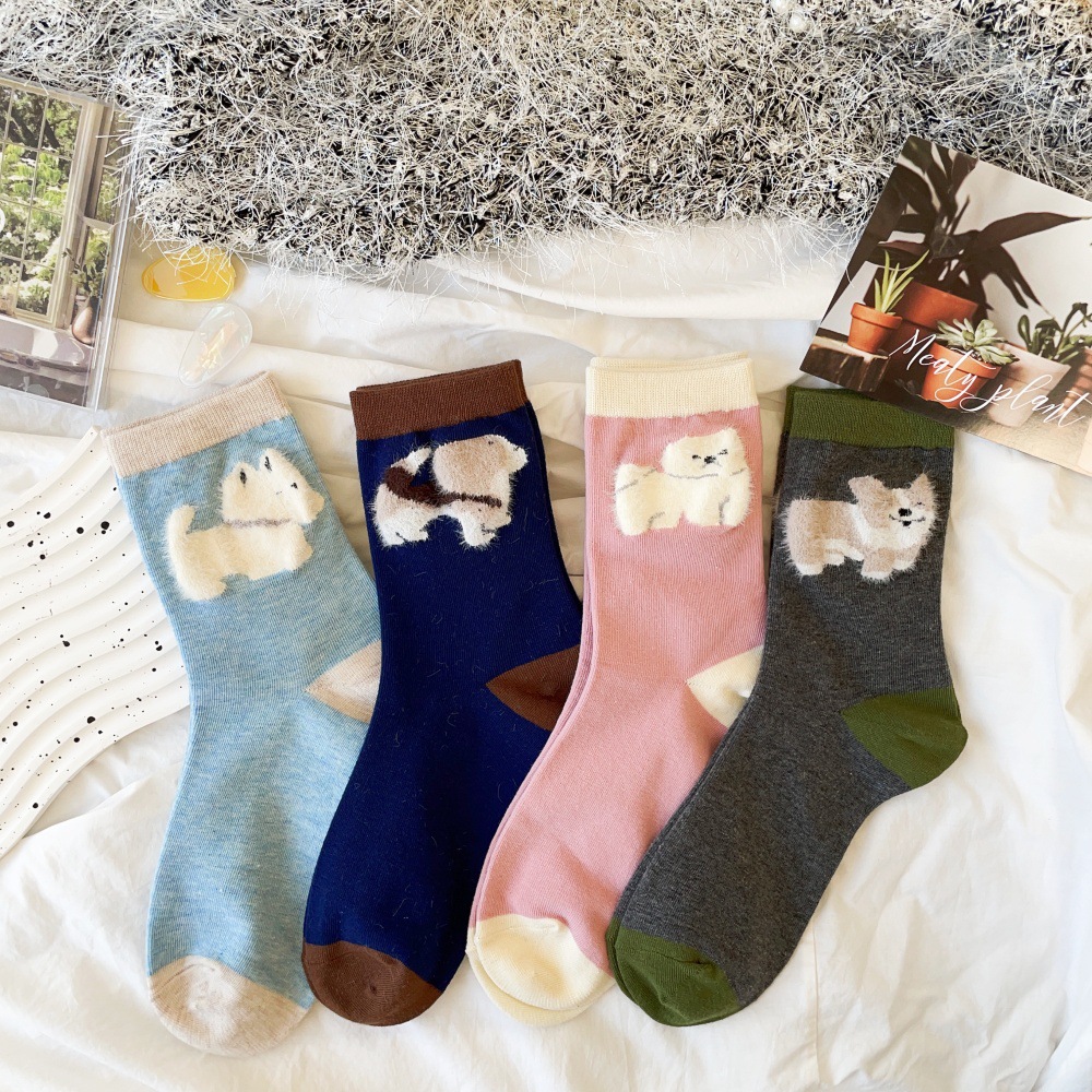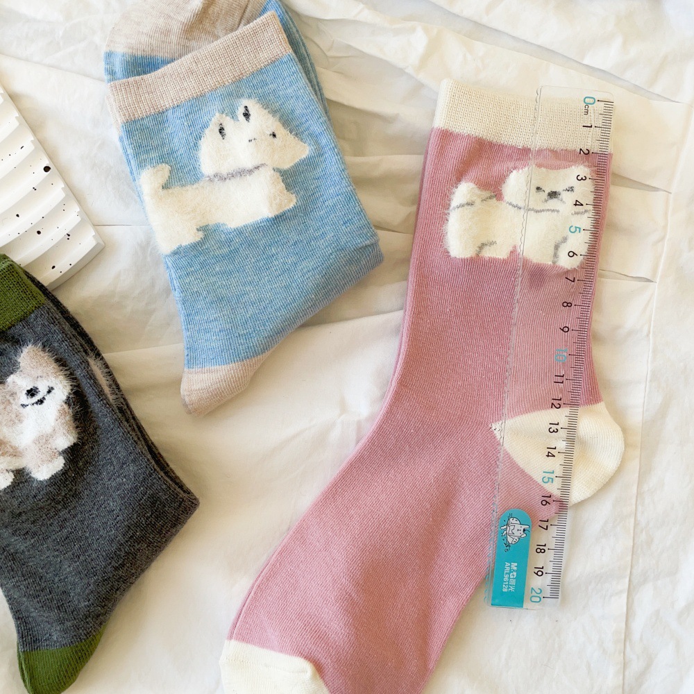 겨울 새로운 귀여운 양말 일본 강아지 따뜻한 양말 한국산 고정 스테레오 만화 대비 양말 학생 양말
