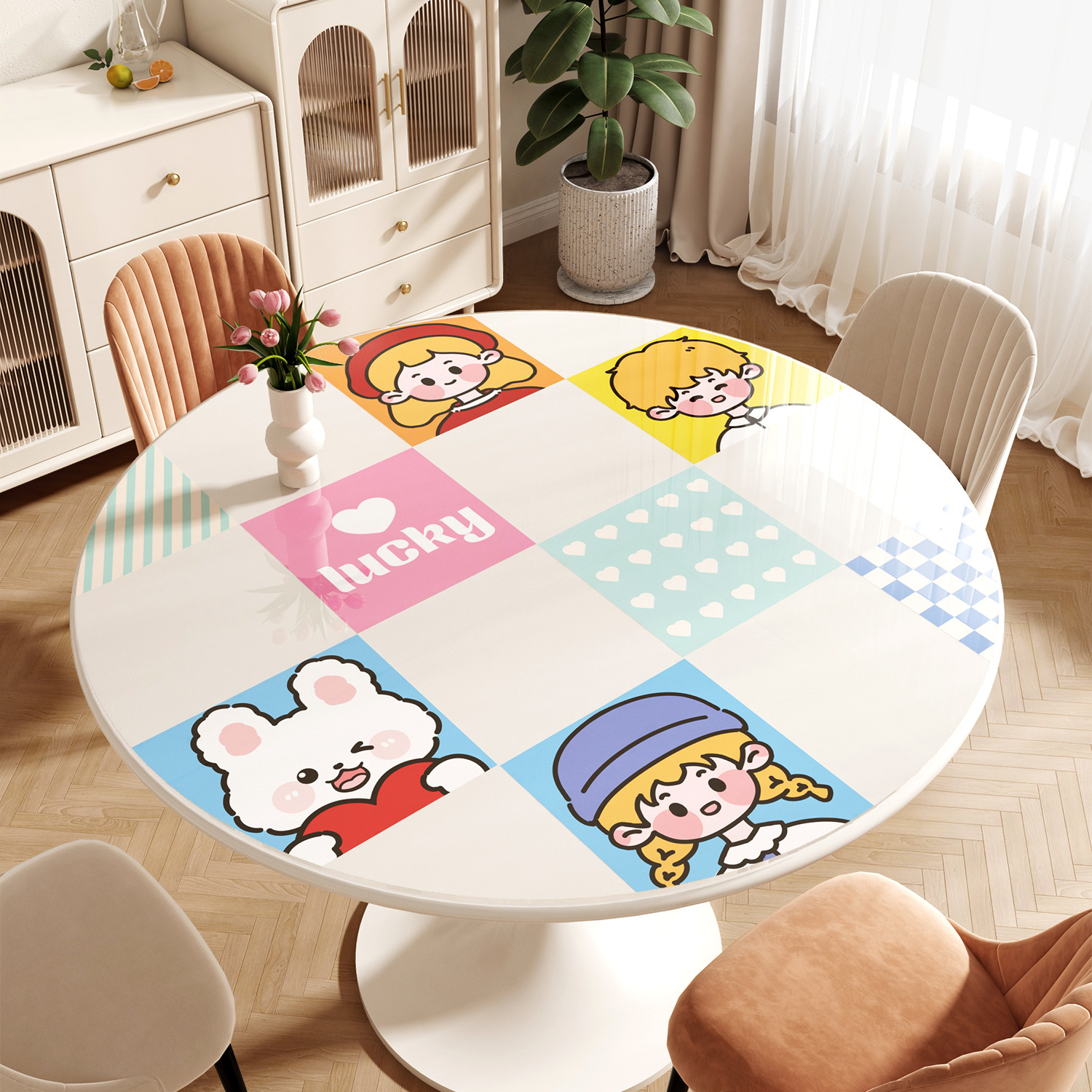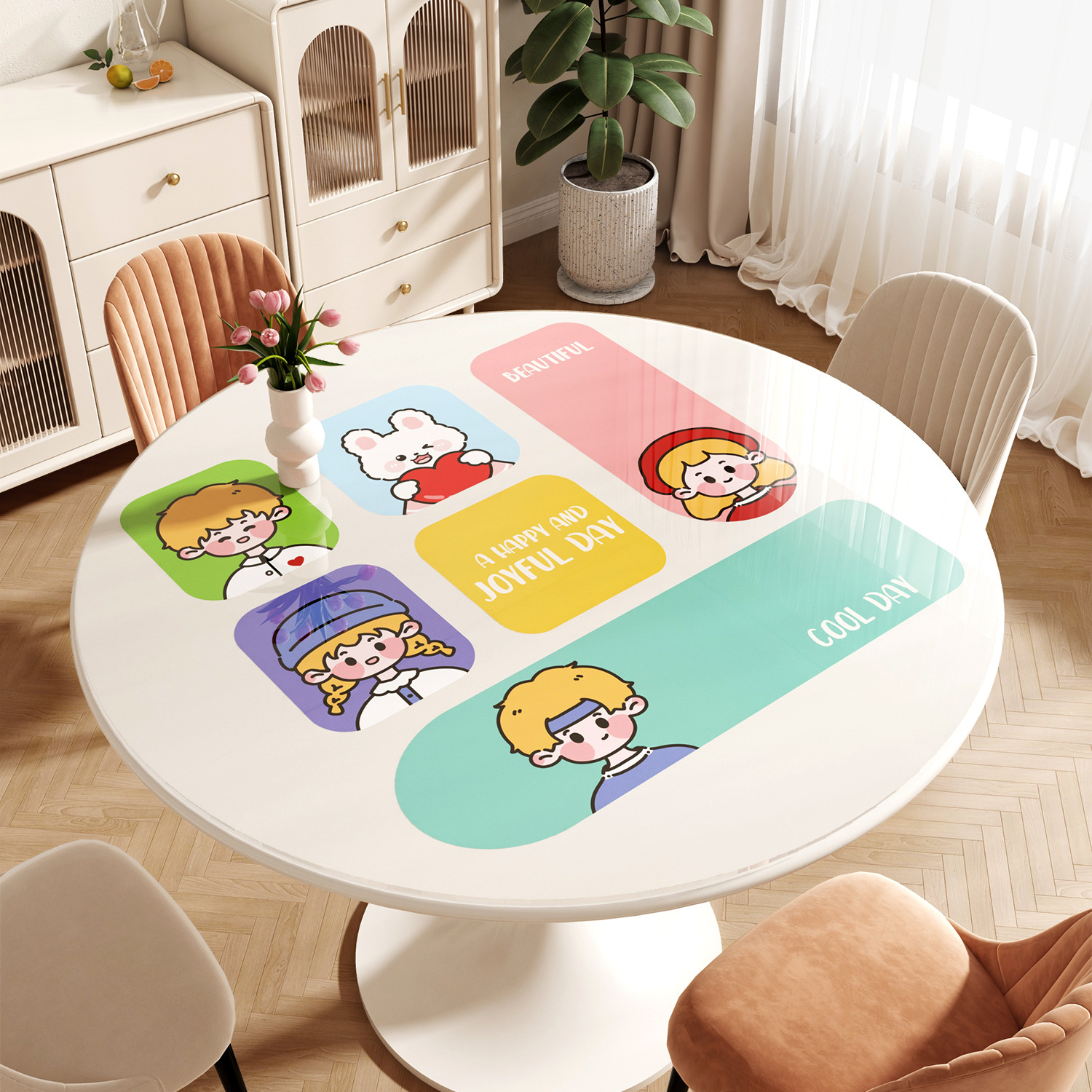 도파민 투명 라운드 테이블 매트 일회용 방수 및 오일 증거 테이블 매트 PVC 소프트 유리 커피 테이블 데스크탑 보호 매트스토어 가기