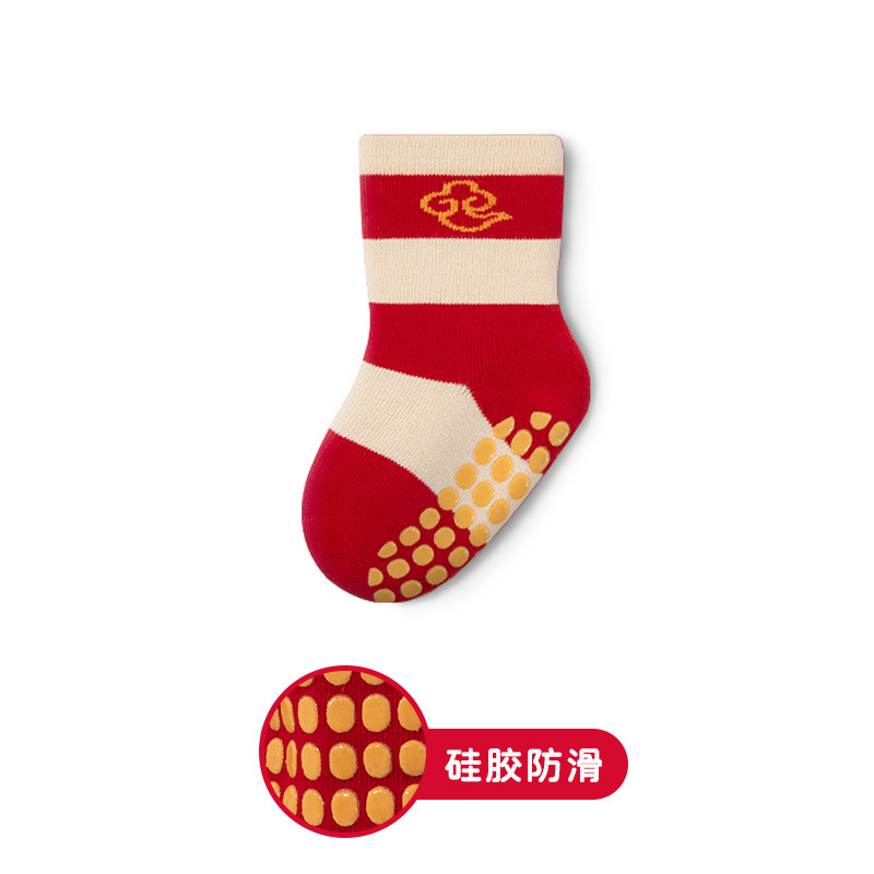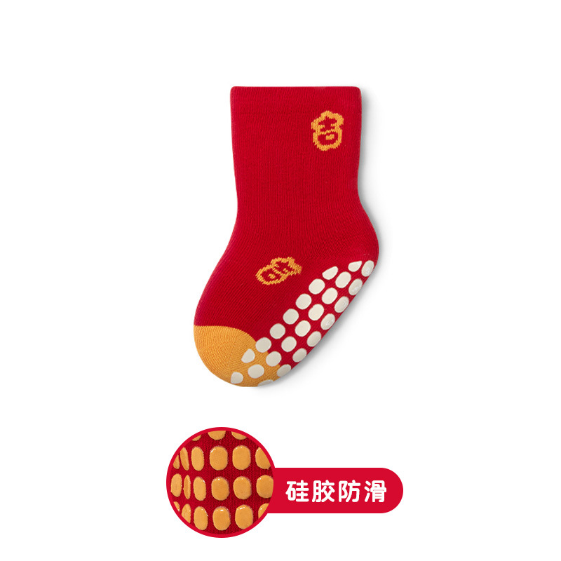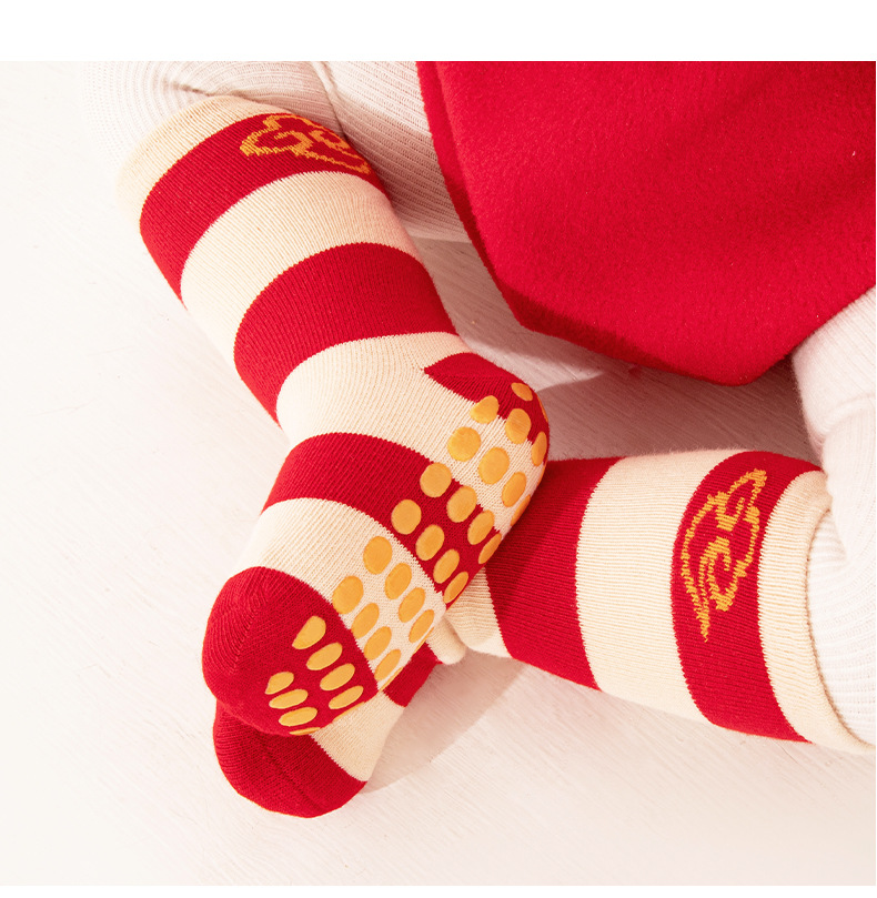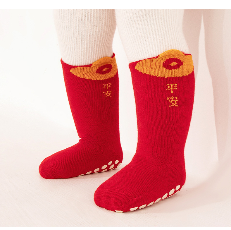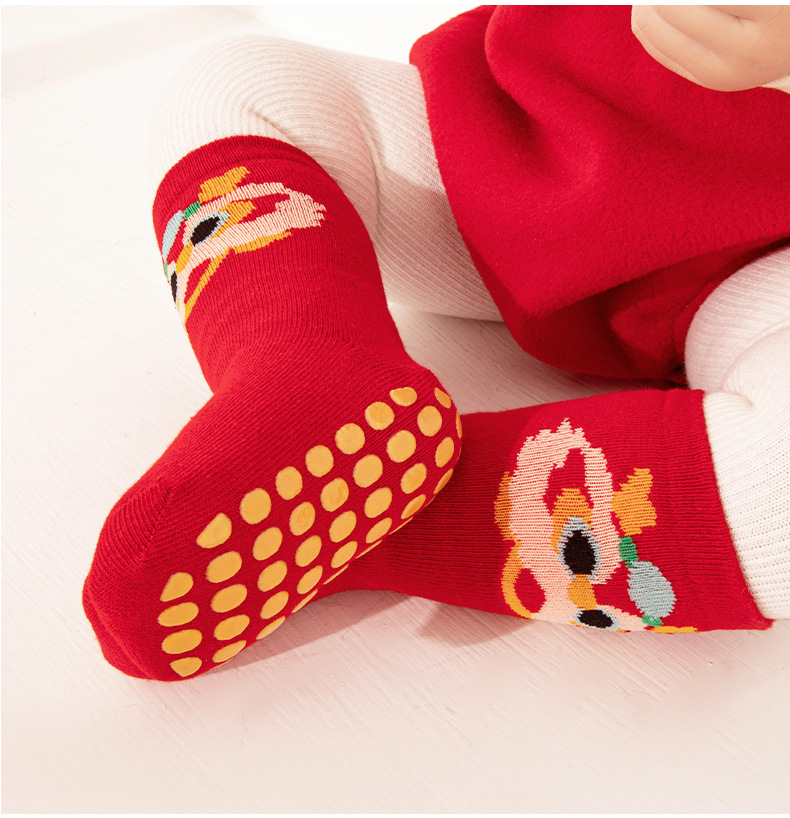 아기 바닥 양말 봄과 가을 미끄럼 방지 시원한 신생아 뼈없는 유아 양말 붉은 새해 면 양말