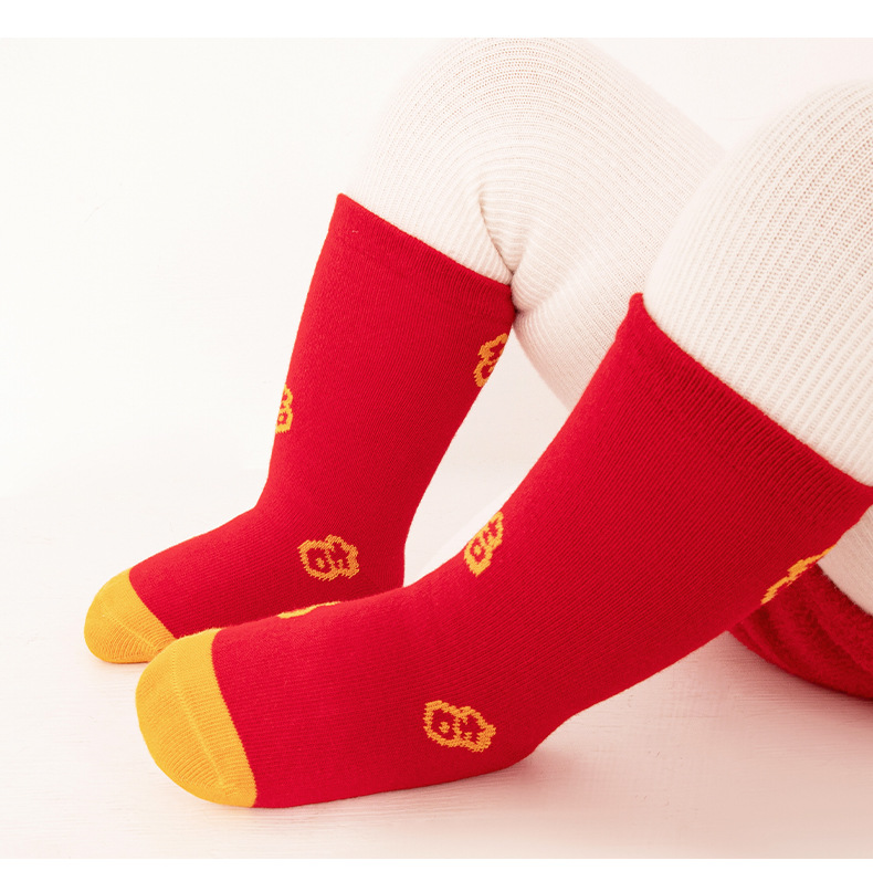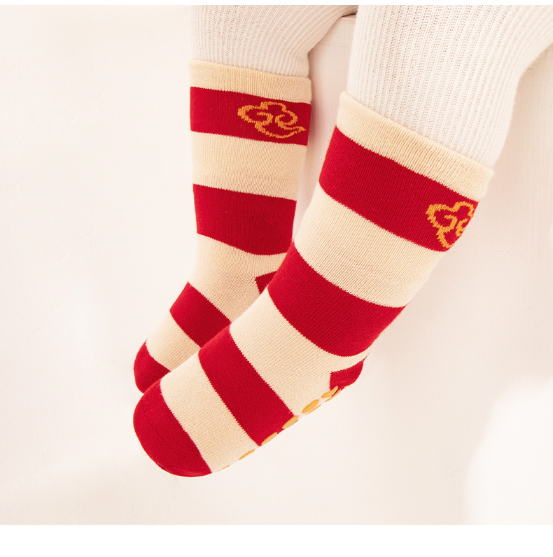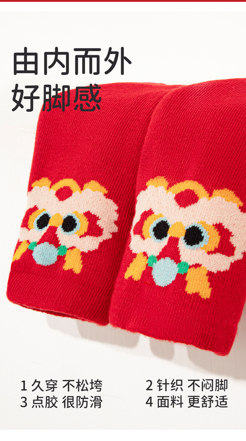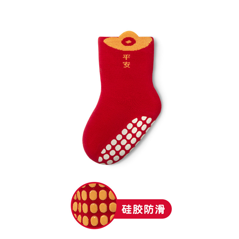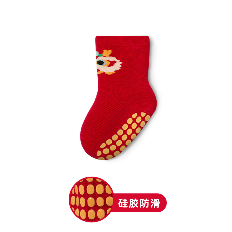 아기 바닥 양말 봄과 가을 미끄럼 방지 시원한 신생아 뼈없는 유아 양말 붉은 새해 면 양말