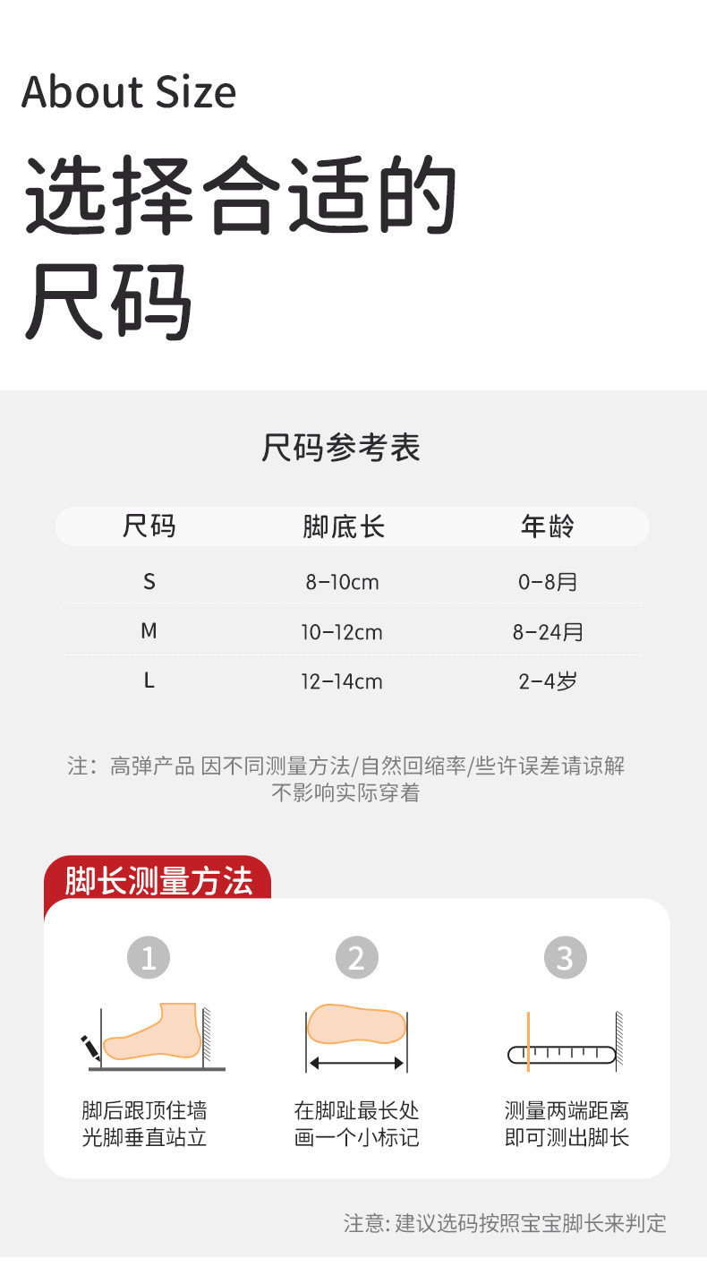 • S 사이즈 0-8개월(발 길이 8-10cm에 적합)