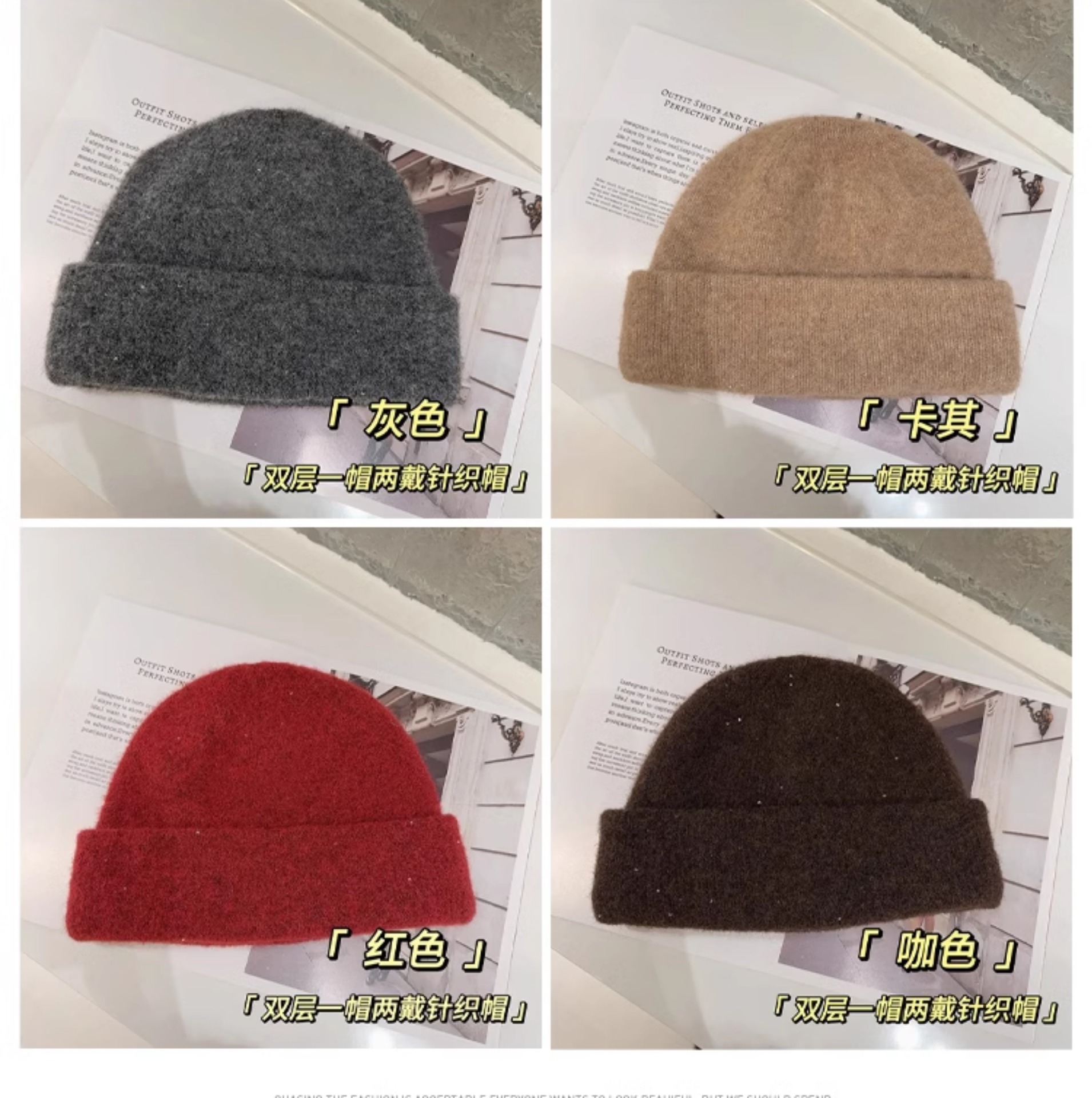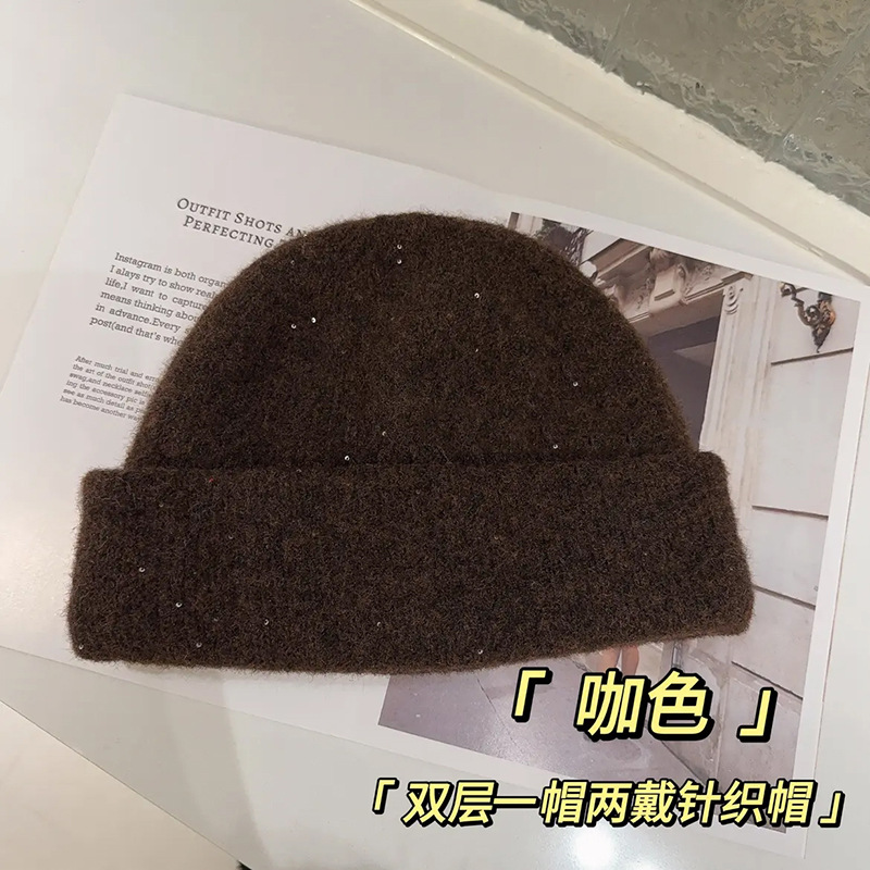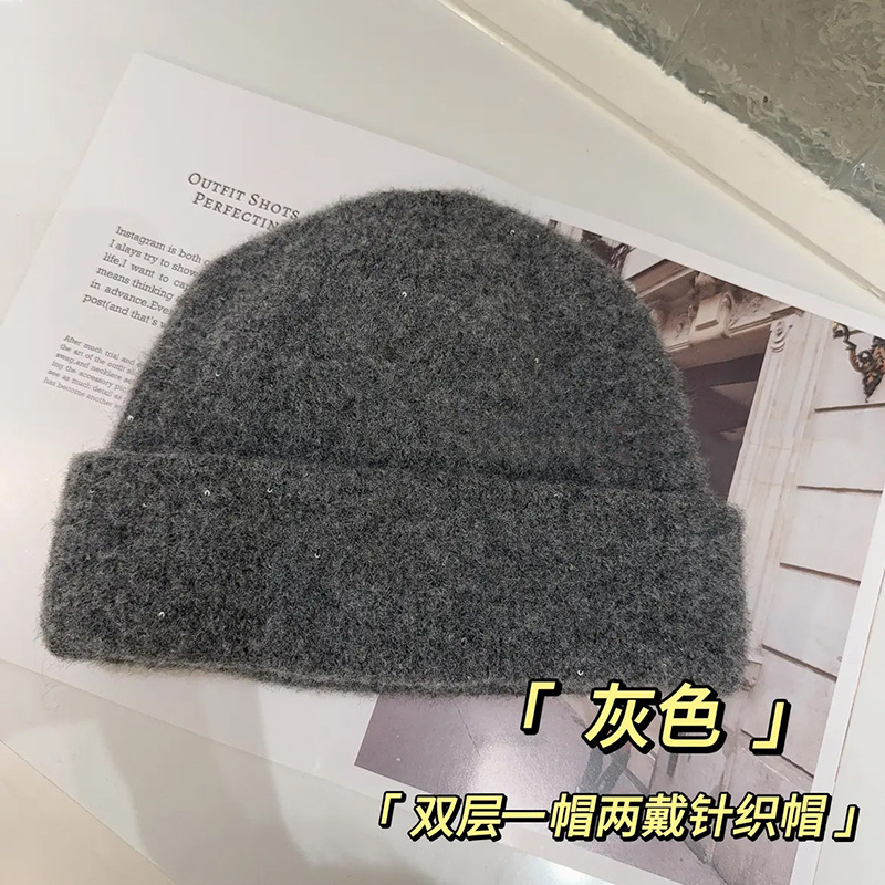 가을과 겨울 새 양모 블렌드 니트 모자 여성용 빅 헤드 힙 올 매치 더블 레이어 따뜻한 두꺼운 모자스토어 가기