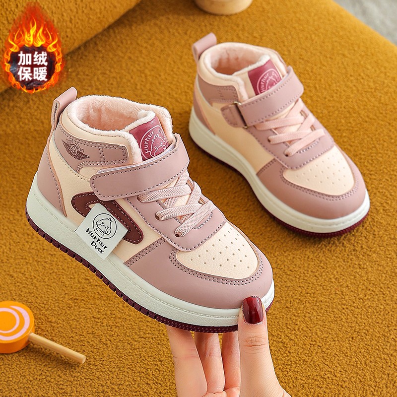 소녀 운동화 가을 겨울 2024 새 겨울 중대형 어린이 하이 탑 보드 신발 기모 투면 신발 아동용 신발스토어 가기