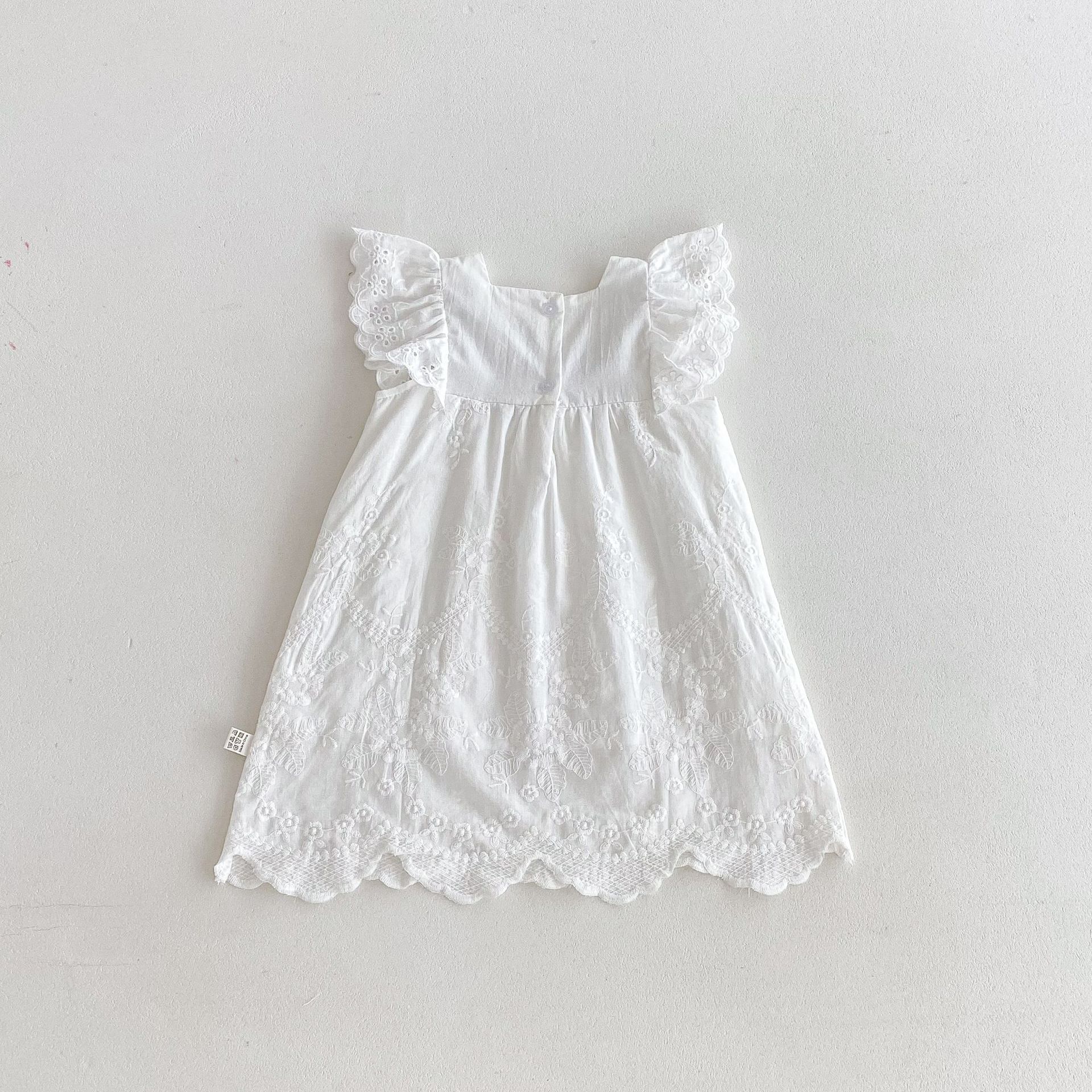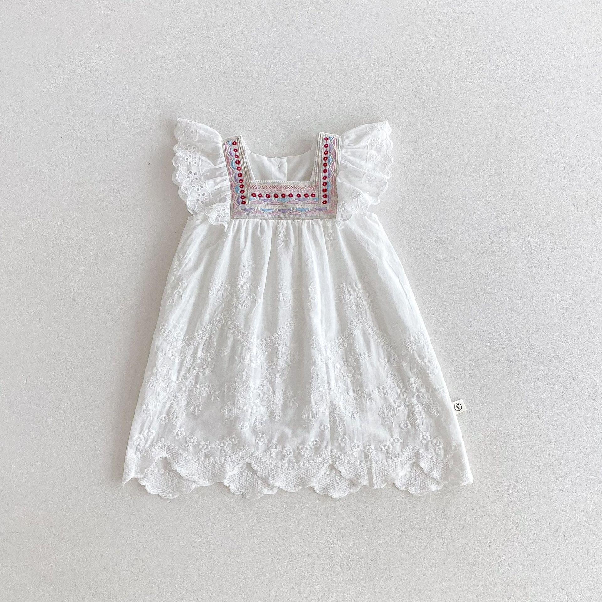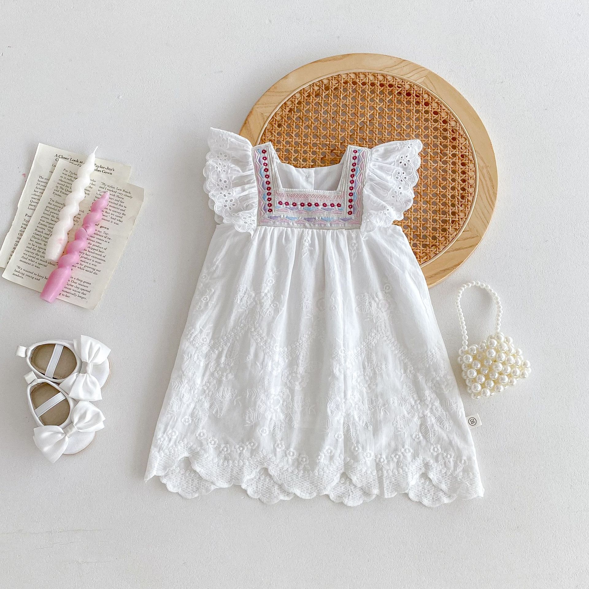 어린이 원피스 2025 여름 여성 아기 한국 자수 레이스 원피스 어린이 짧은 소매 주름 목회 공주 원피스스토어 가기