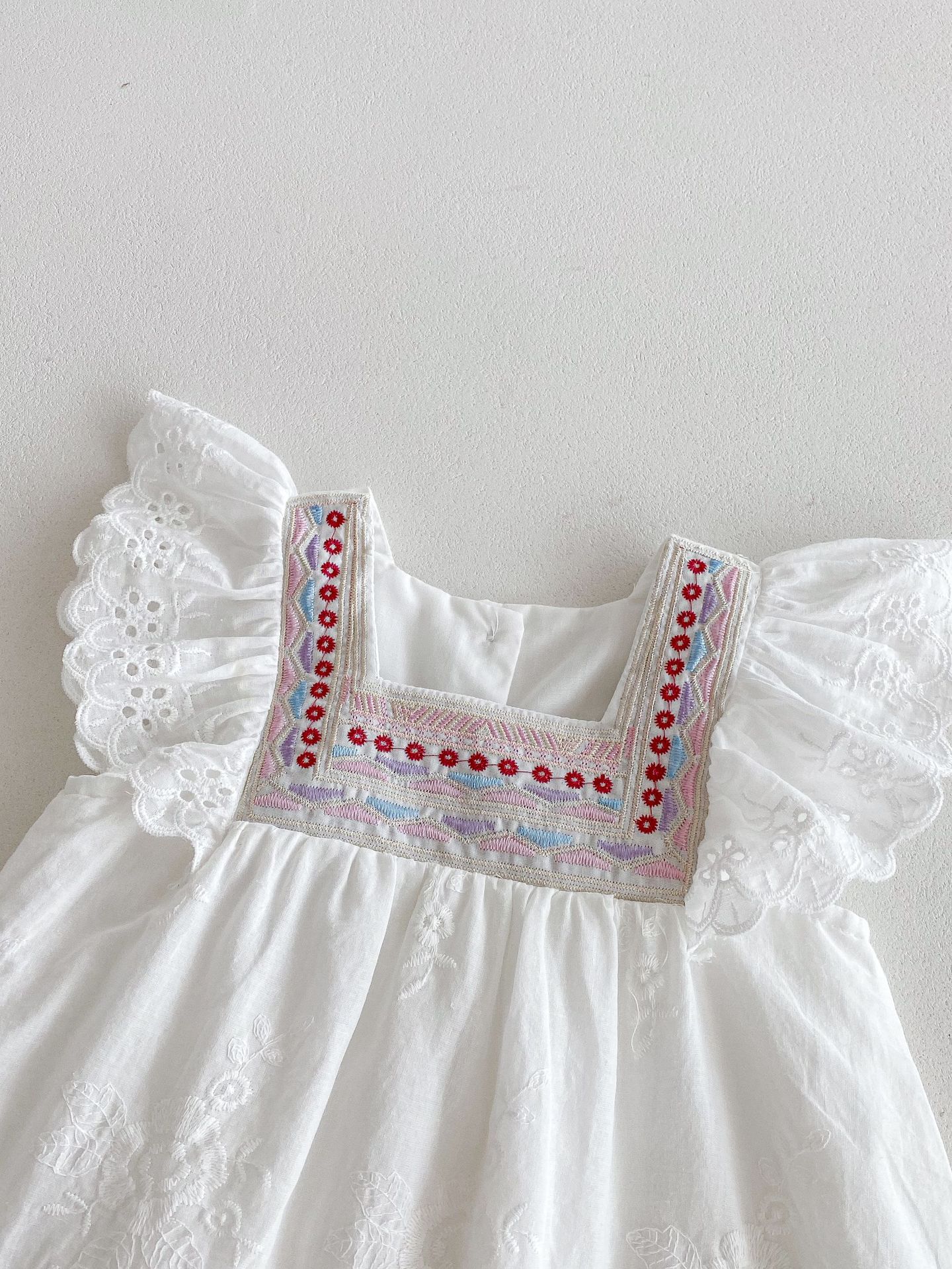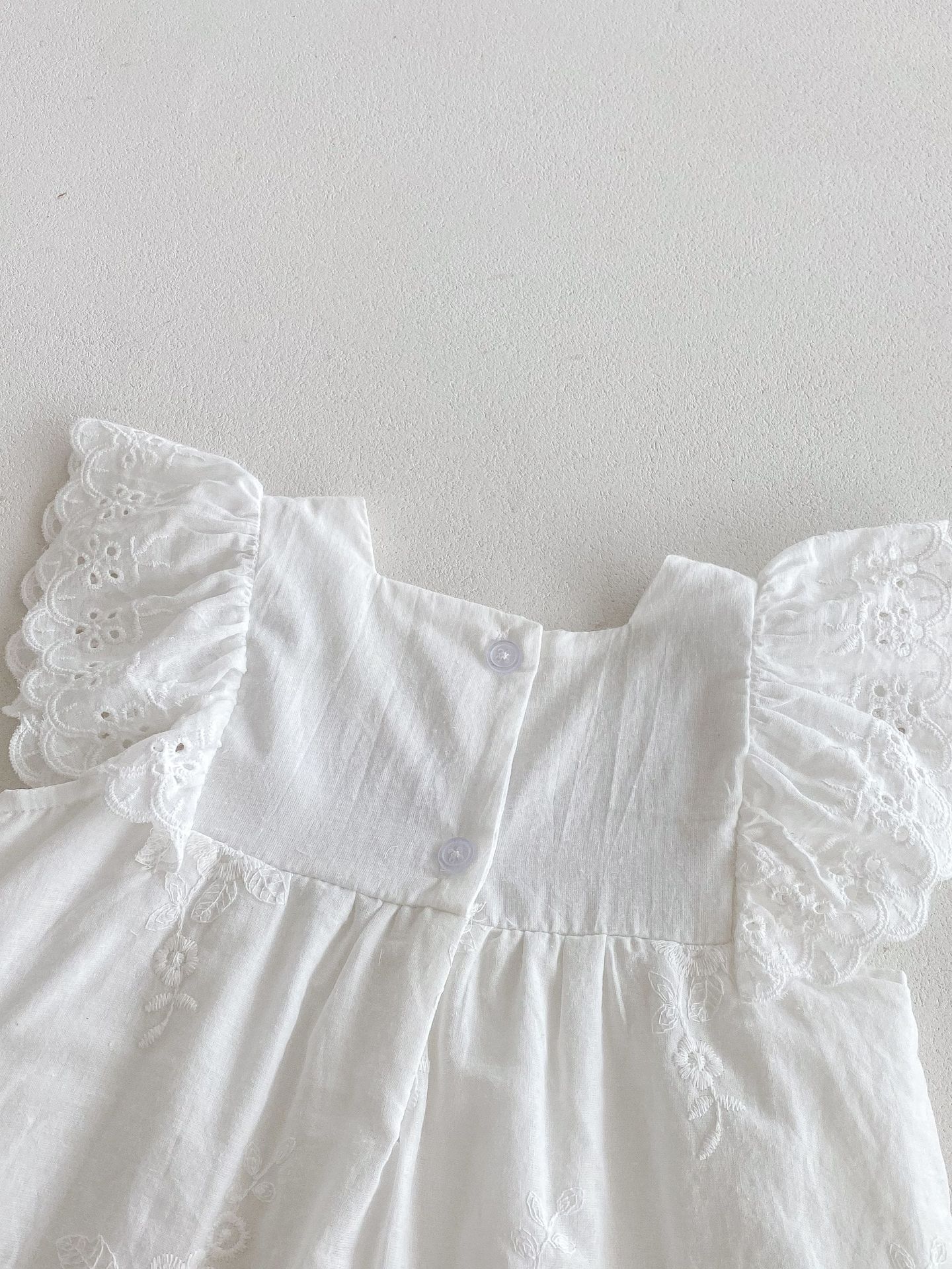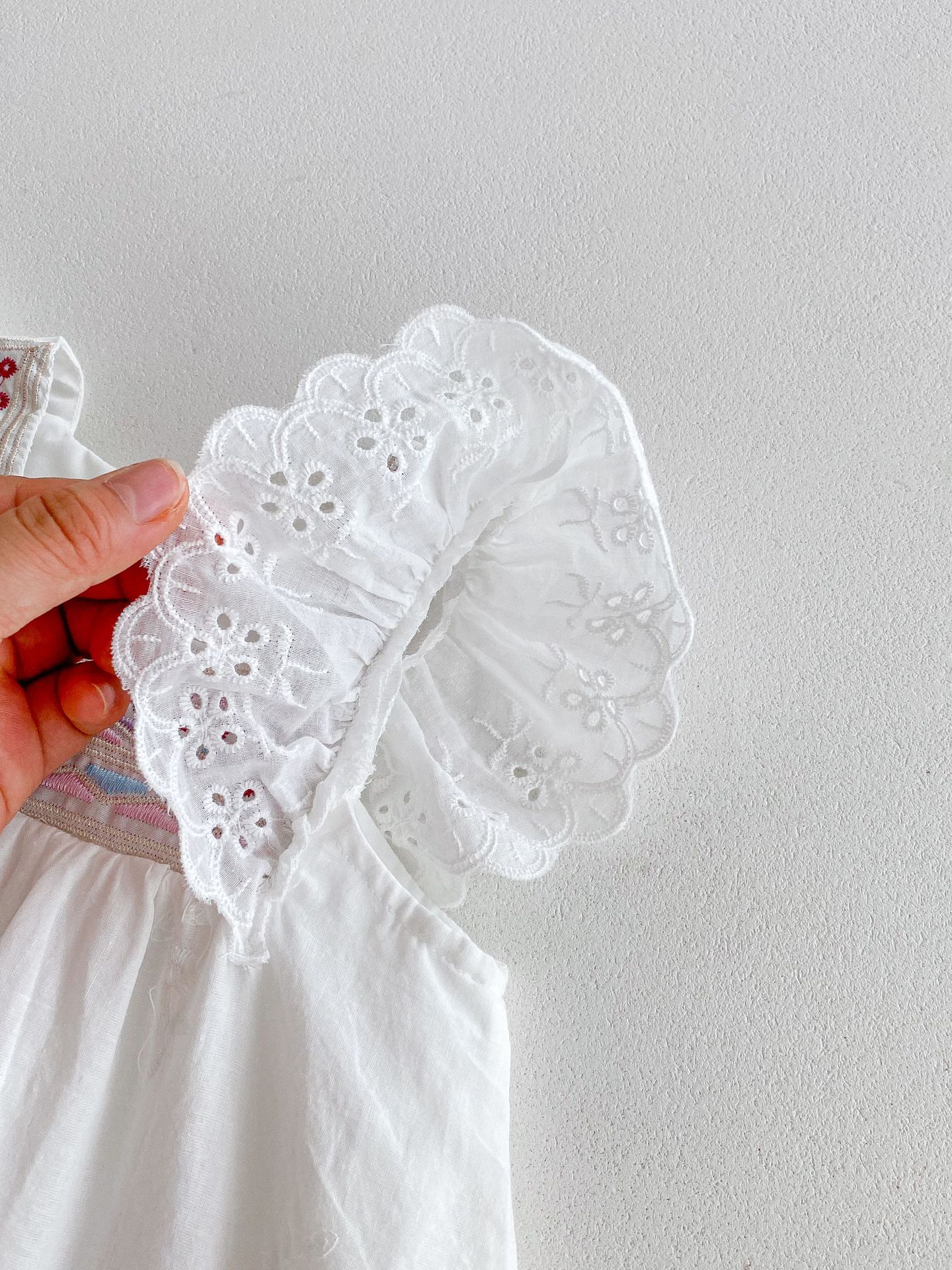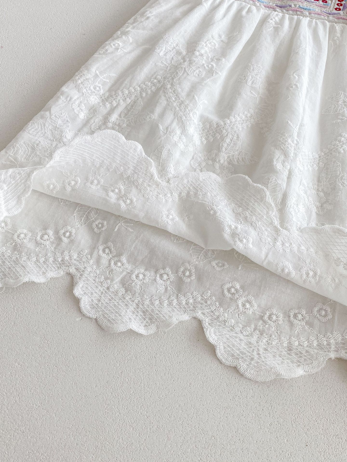 어린이 원피스 2025 여름 여성 아기 한국 자수 레이스 원피스 어린이 짧은 소매 주름 목회 공주 원피스스토어 가기