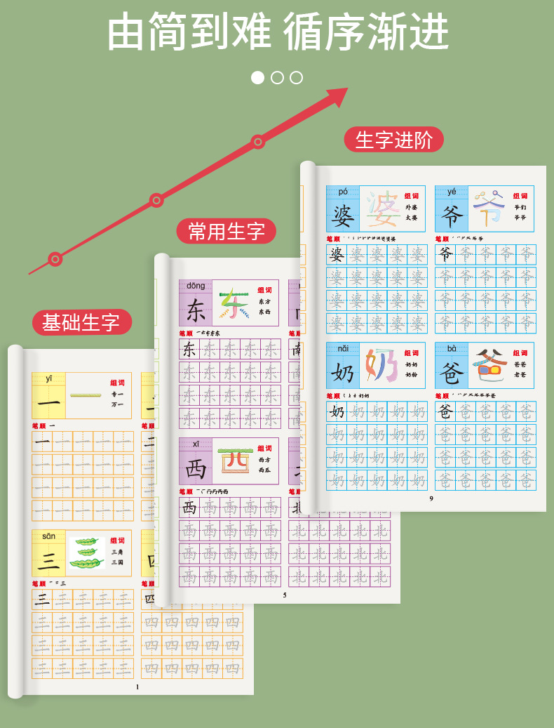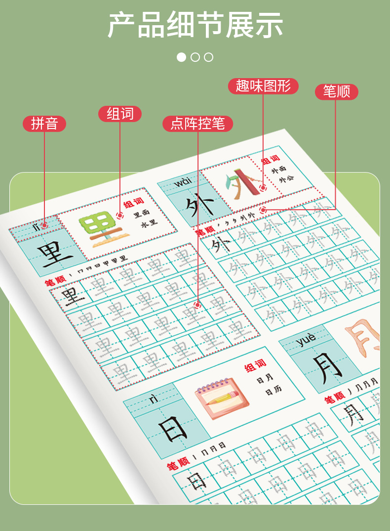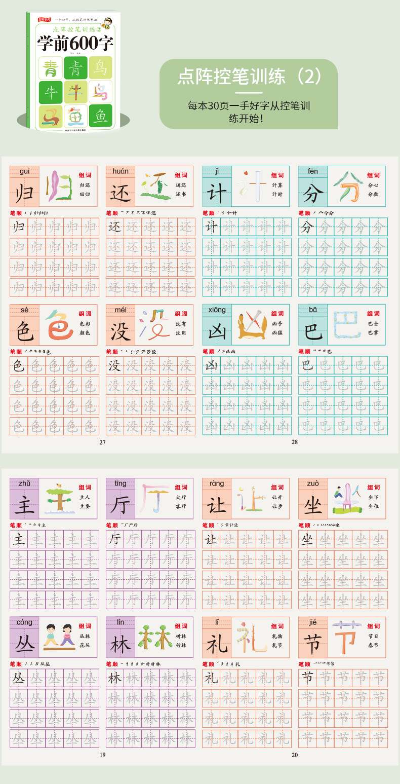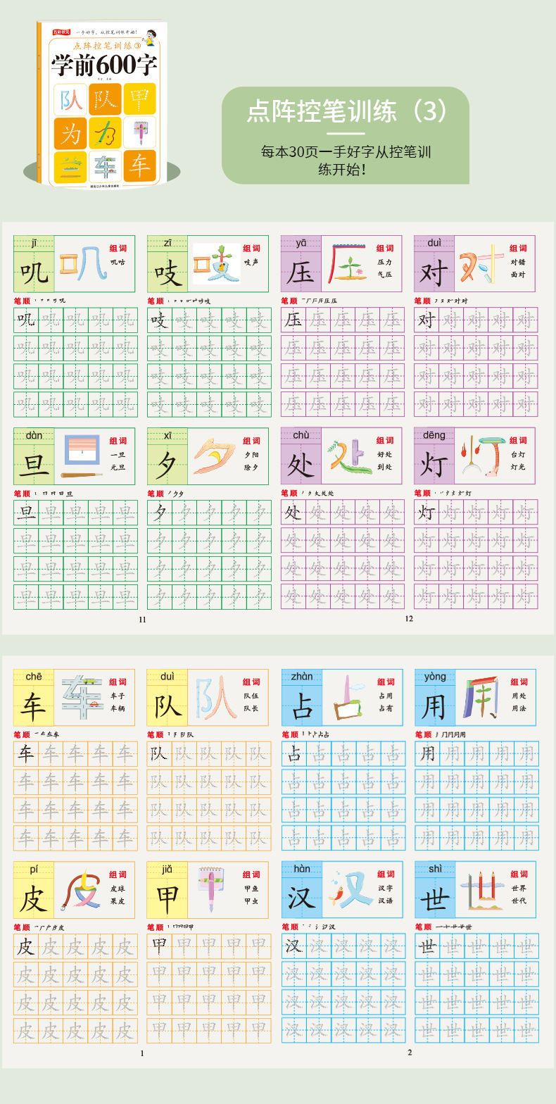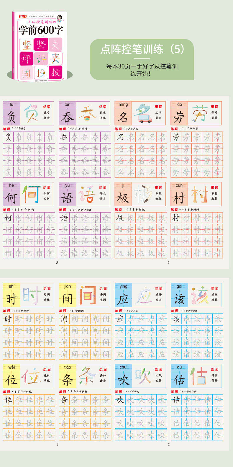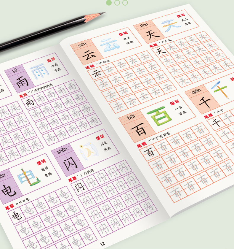 취학 전 600 자 한자 추적 빨간 점 매트릭스 제어 펜 교육 카피 북 유치원 입문 교육 어린 아이들을위한 교육 자료