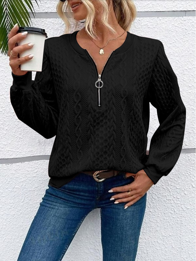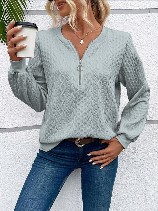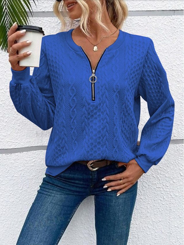 2024 국경을 넘는 유럽과 미국의 새로운 패션 여성 풀오버 스웨터 캐주얼 스웨터 지퍼 스웨터 둥근 목 긴 소매스토어 가기