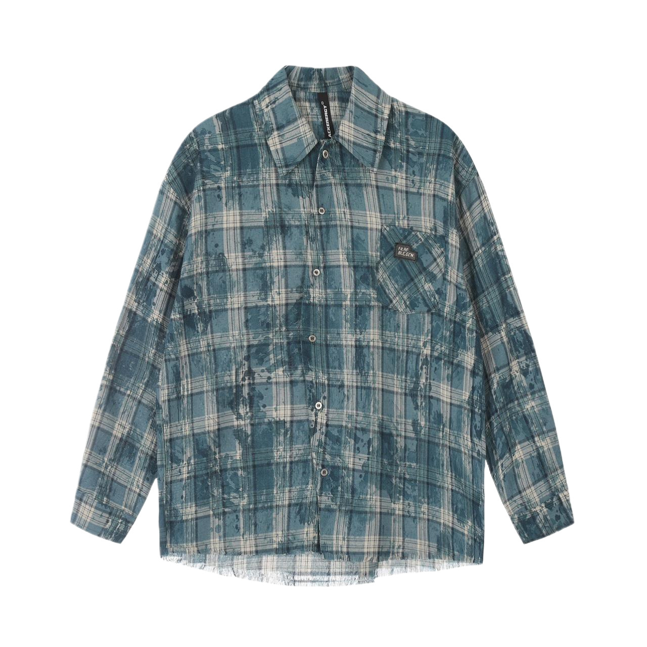 아메리칸 스타일 패션 브랜드 디자인 타이 다이 체크 긴 소매 셔츠 남자의 봄과 가을 느슨한 오버 사이즈 캐주얼 커플 셔츠스토어 가기