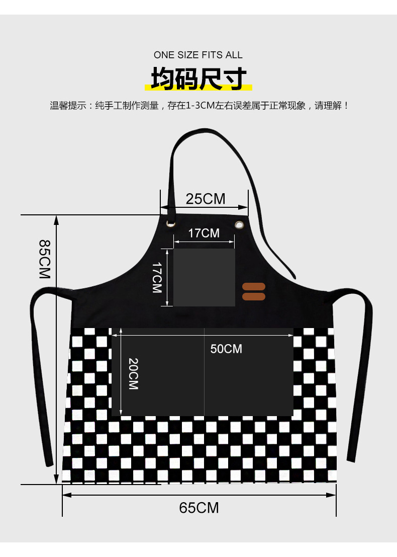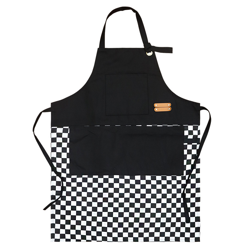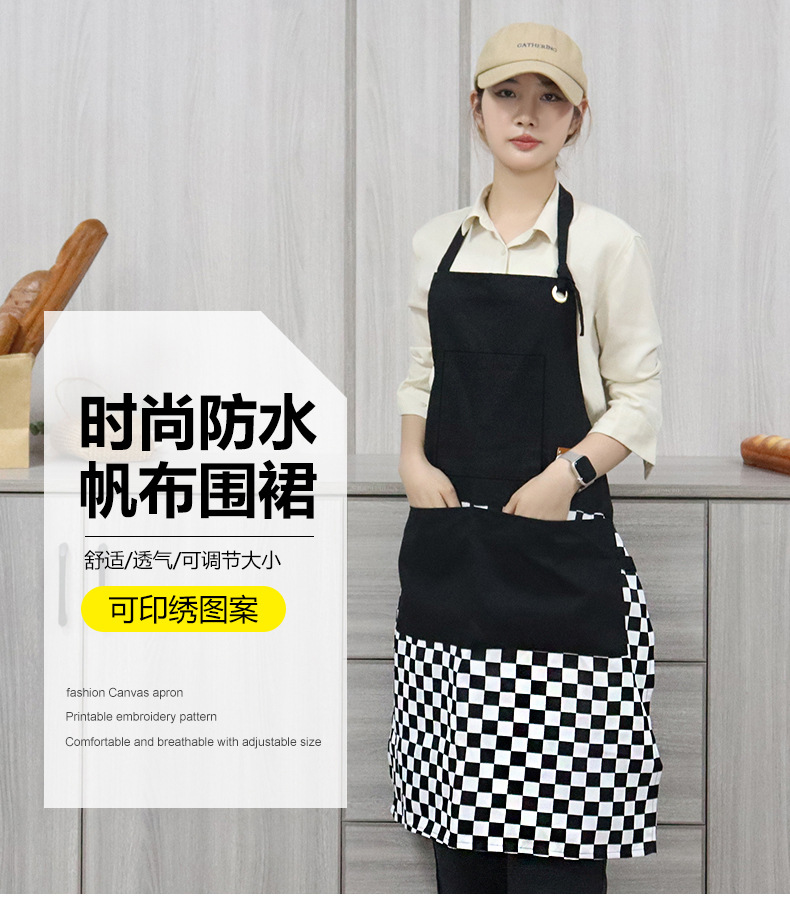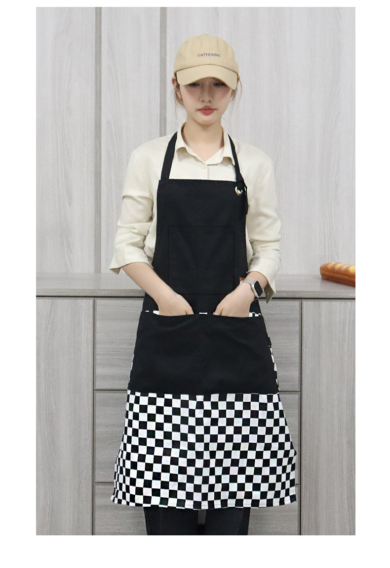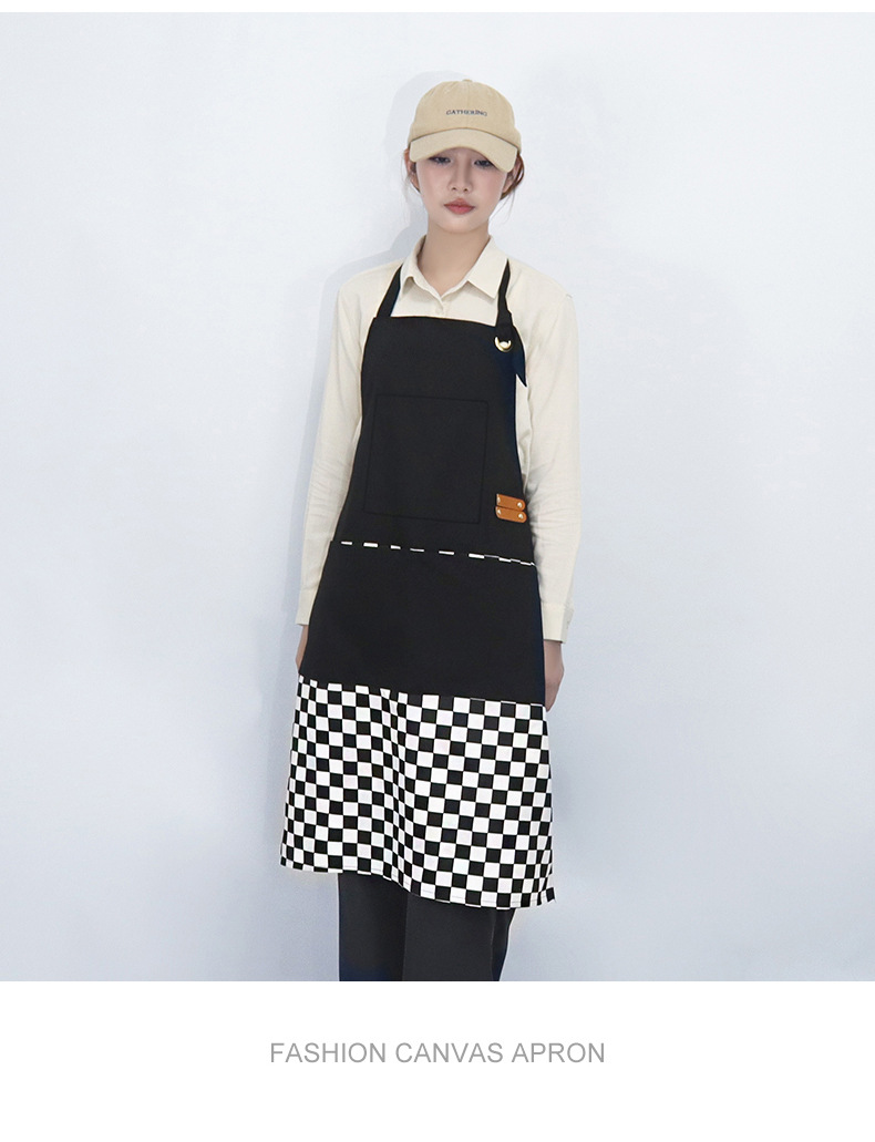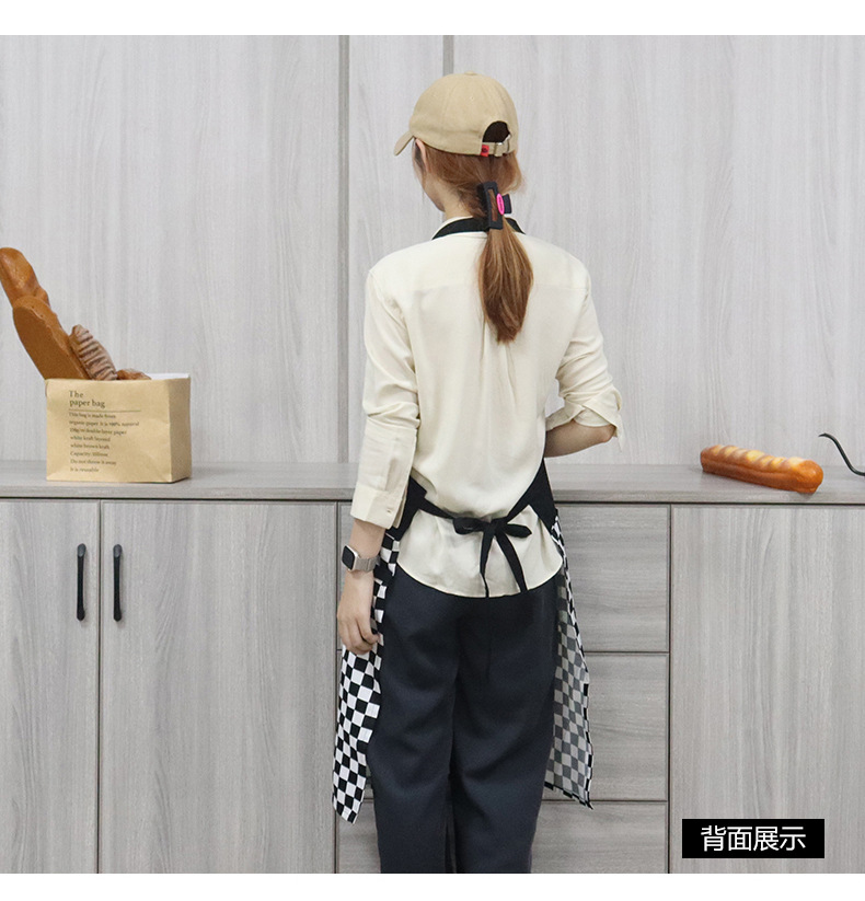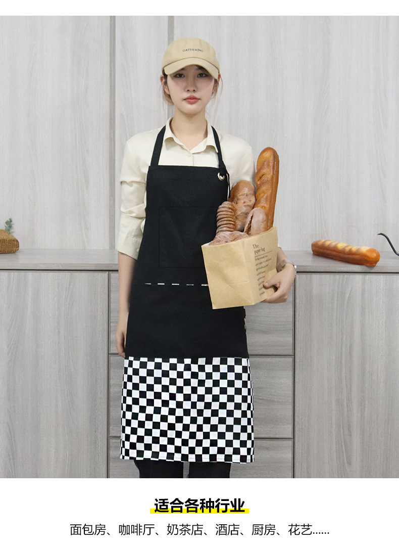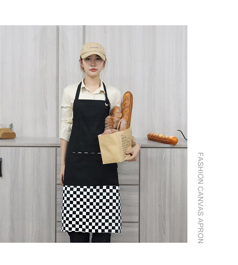 국경 간 일일 필수품 캔버스 앞치마 방수 체크 무늬 바느질 빵 우유 차 가게 커피 숍 목 작업복 사용자 정의