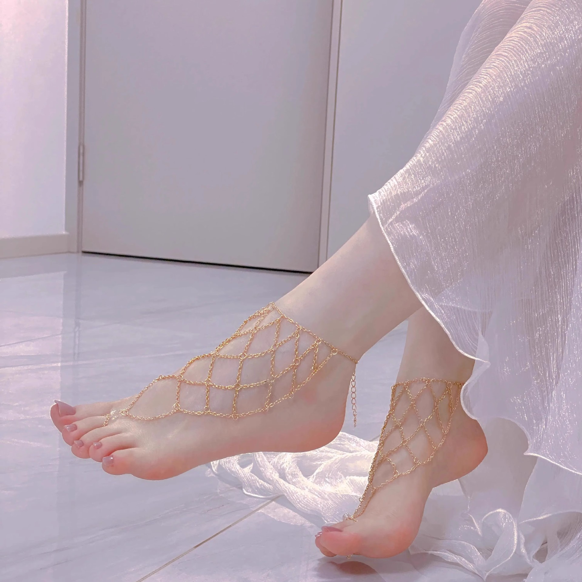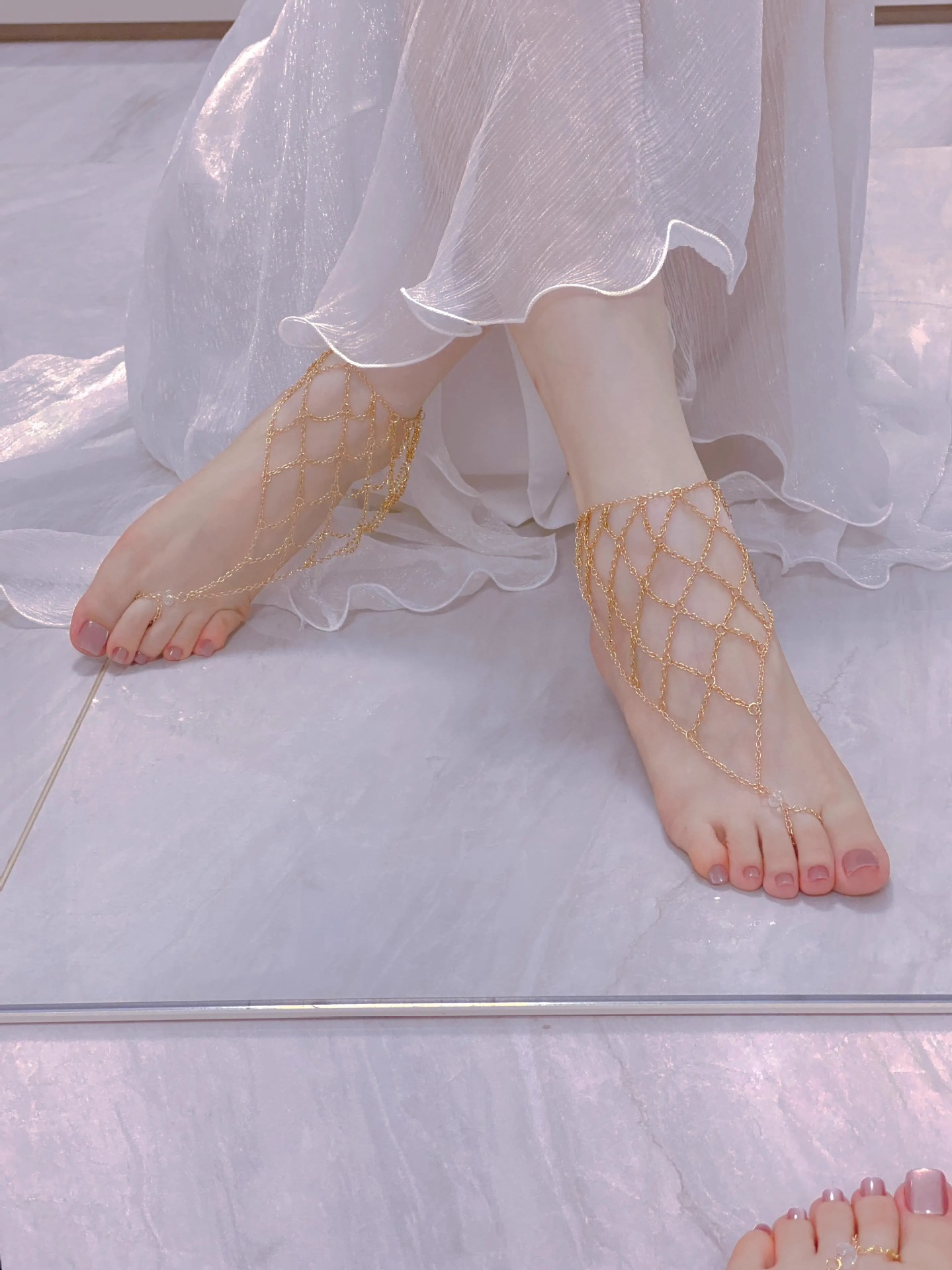 디린 옥 발 체인 이국적인 스타일 발 체인 여성의 2024 새로운 유행 섹시한 메쉬 골드 순수한 욕망 하이 엔드 센스스토어 가기