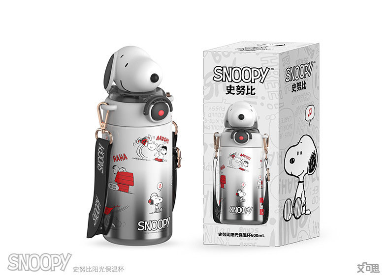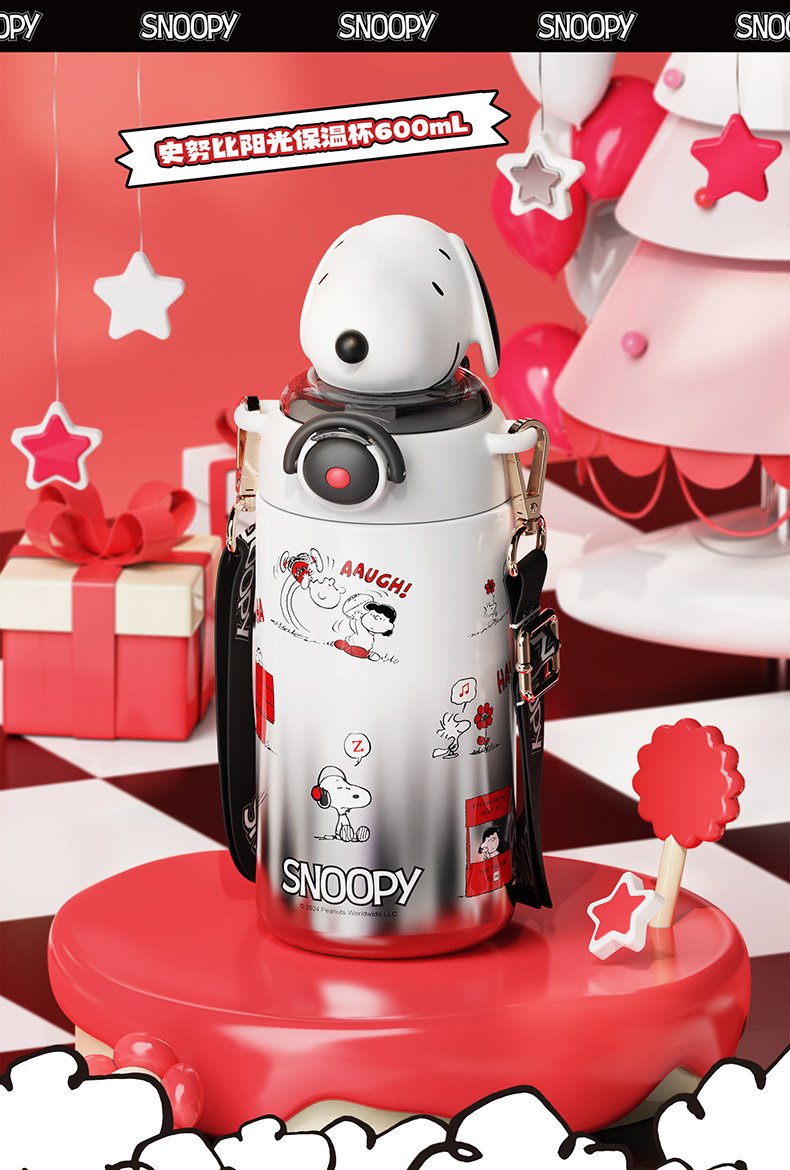 스누피 밀짚 보온병 컵 여성용 2025 새로운 고가치 316 스테인레스 스틸 워터 컵 학생 학교 특별
