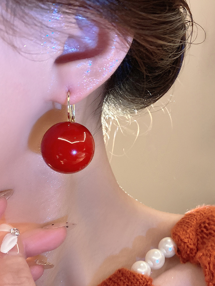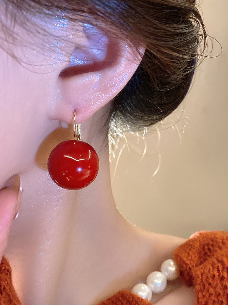 붉은 진주 귀걸이 2024 새로운 폭발 홍콩 스타일 복고풍 귀걸이 여성을위한 가벼운 럭셔리 높은 우아한 귀걸이