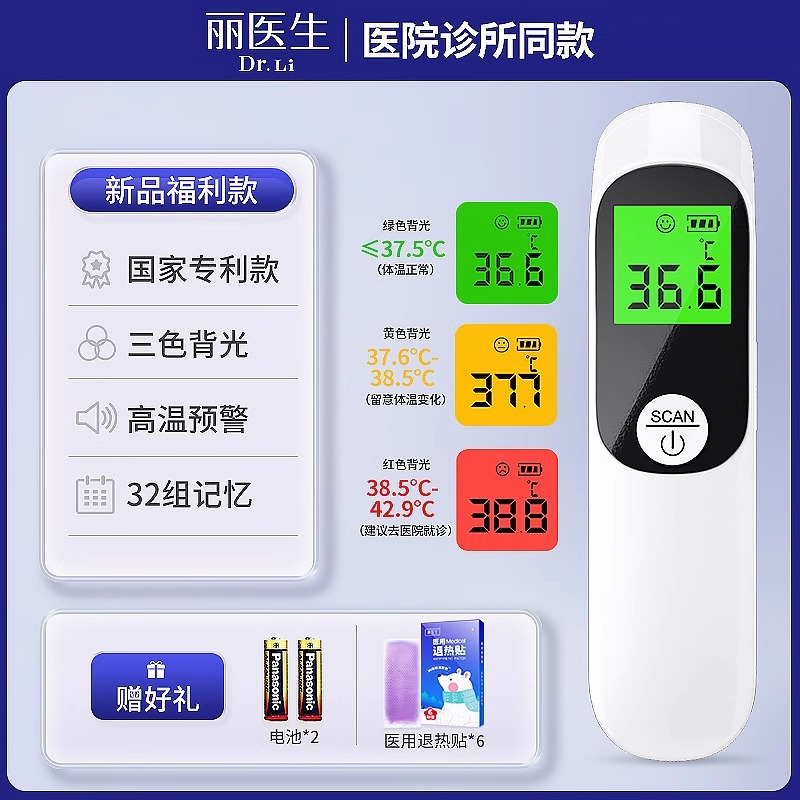 • [3개의 A와 동일한 스타일] 정확한 빠른 측정 체온계(의료용 해열 패치 6개 포함)
