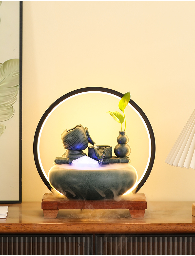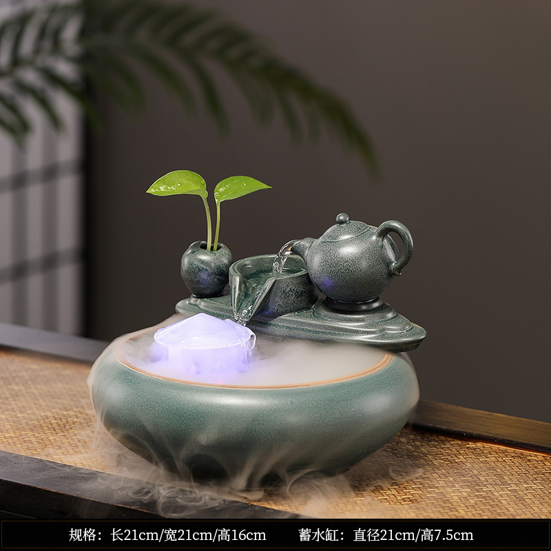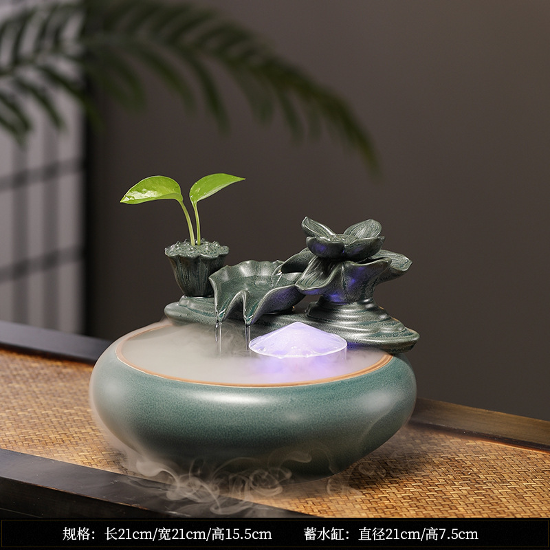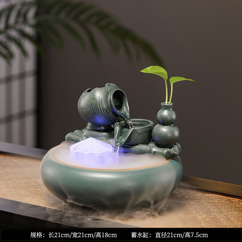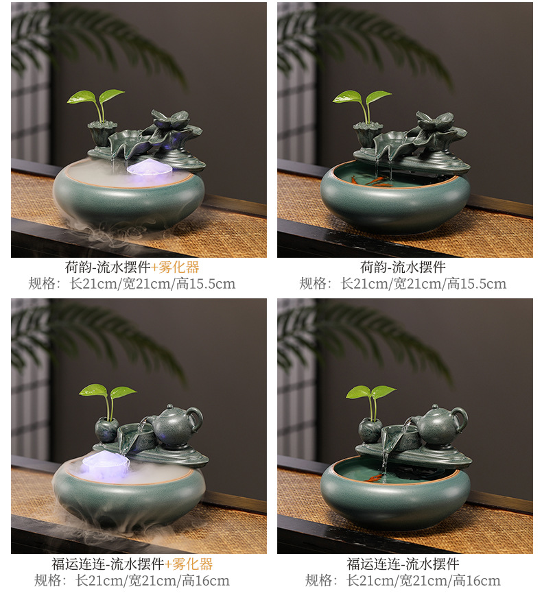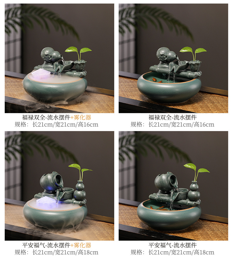 새로운 중국 스타일 부 초대 물 장식품 세라믹 작은 데스크탑 거실 차 테이블 사무실 장식 순환 물 물고기 탱크