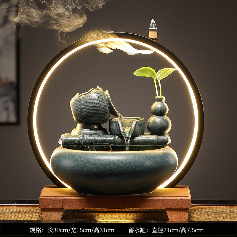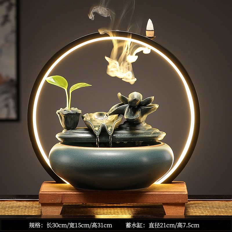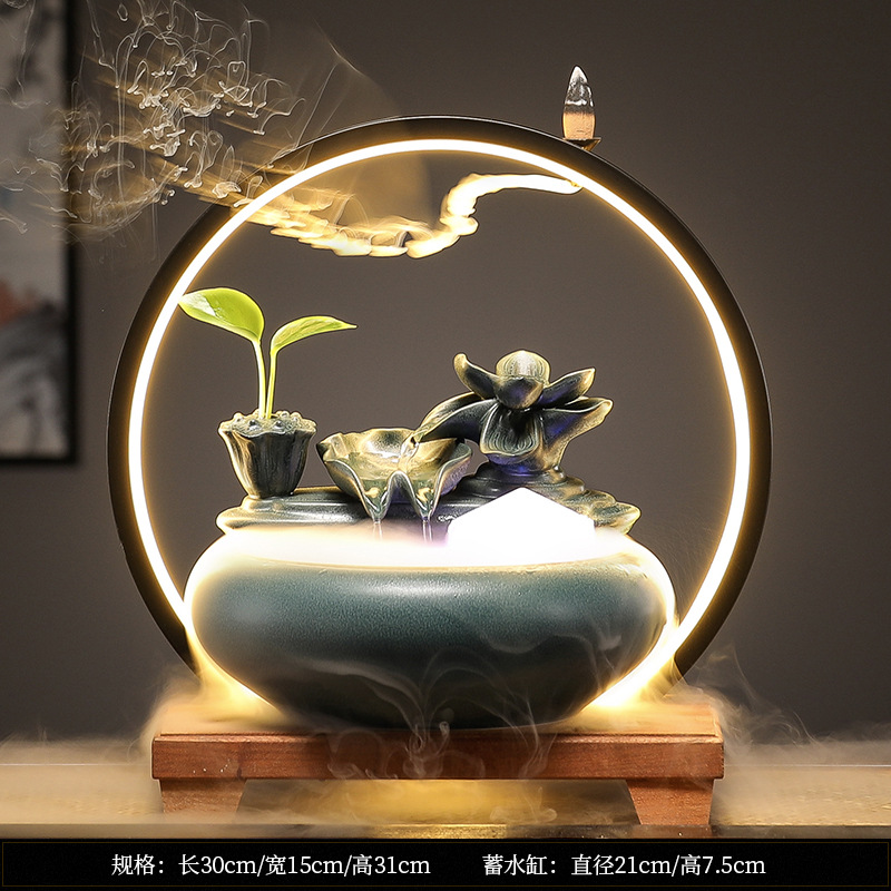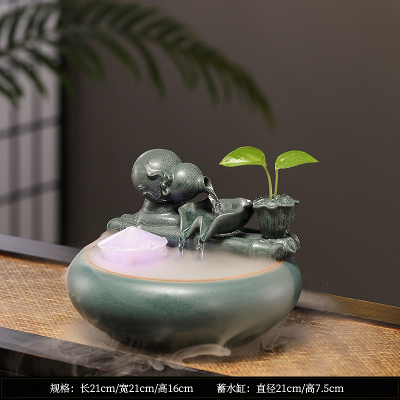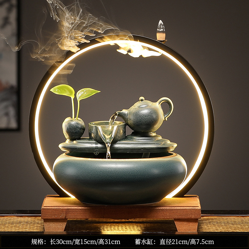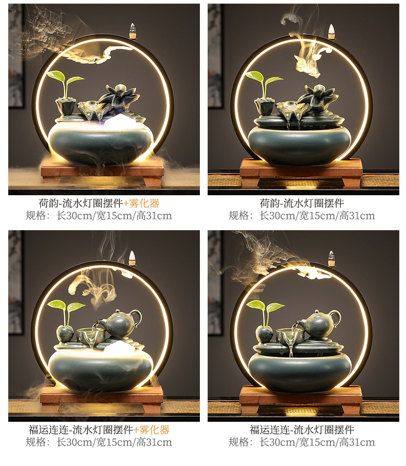 새로운 중국 스타일 부 초대 물 장식품 세라믹 작은 데스크탑 거실 차 테이블 사무실 장식 순환 물 물고기 탱크