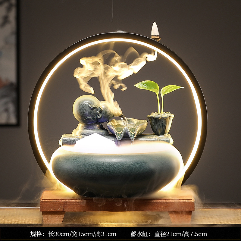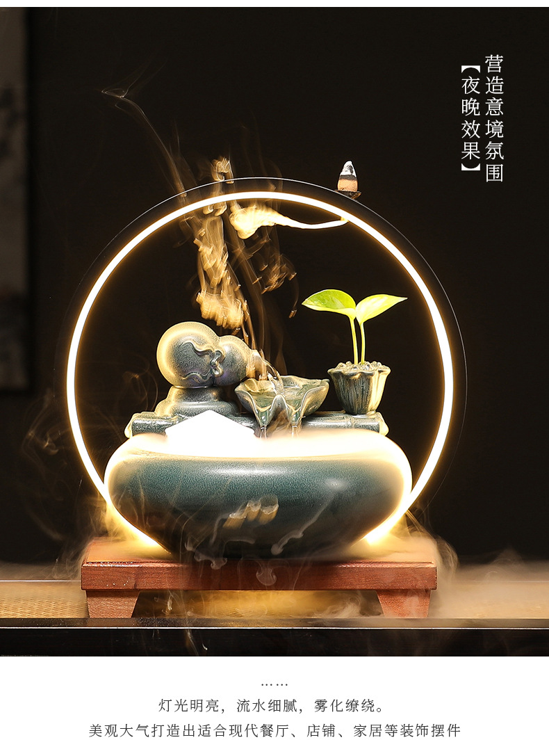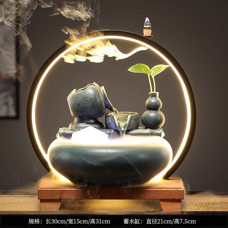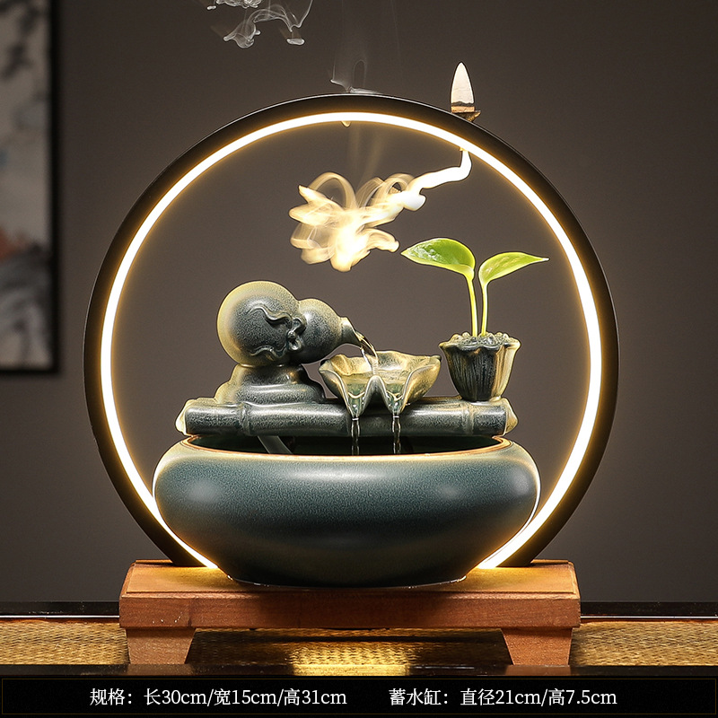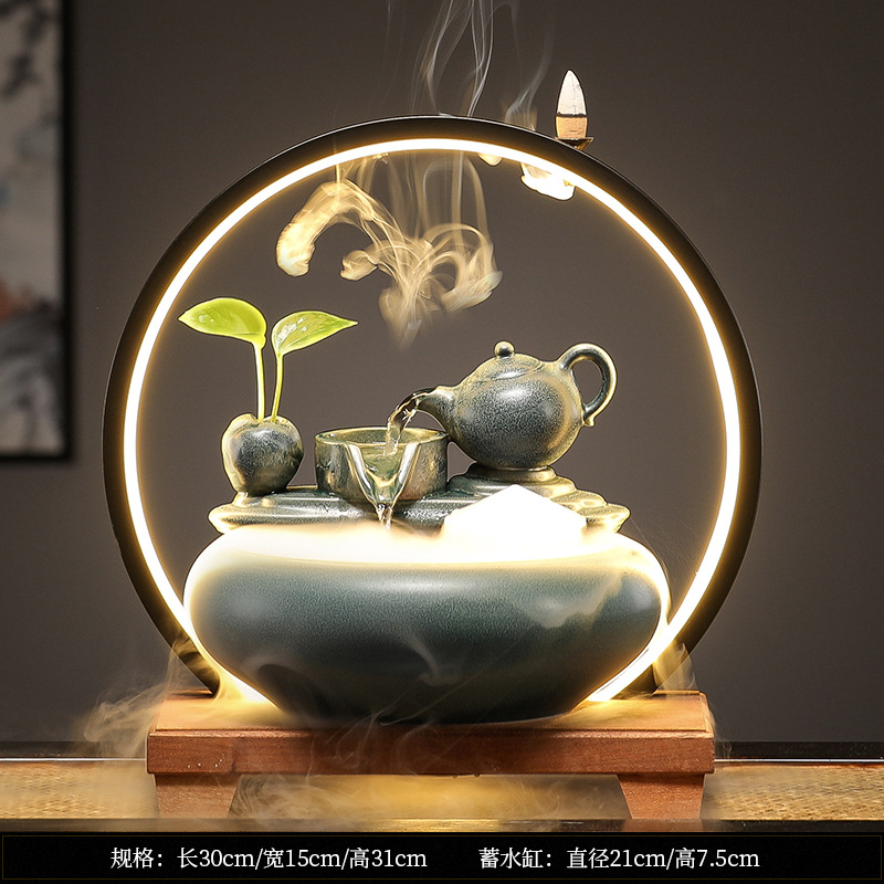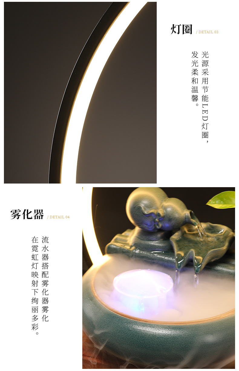 새로운 중국 스타일 부 초대 물 장식품 세라믹 작은 데스크탑 거실 차 테이블 사무실 장식 순환 물 물고기 탱크