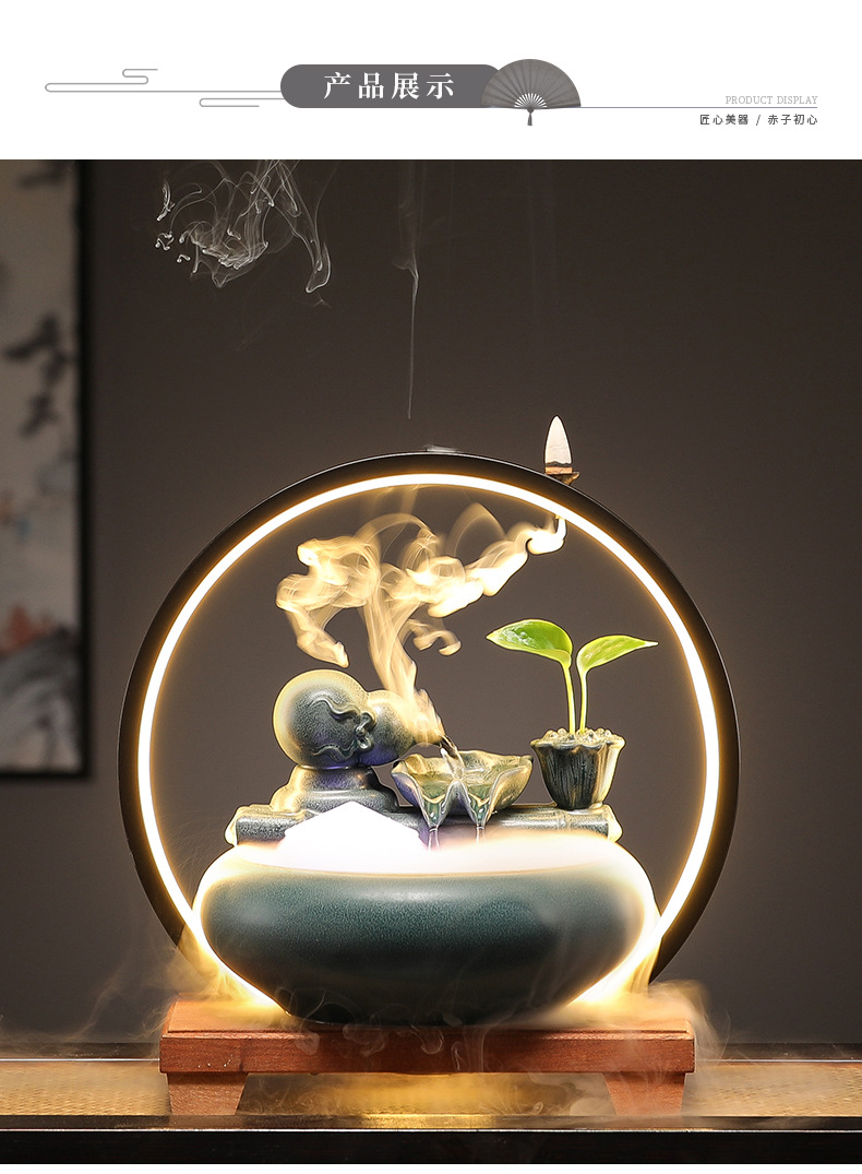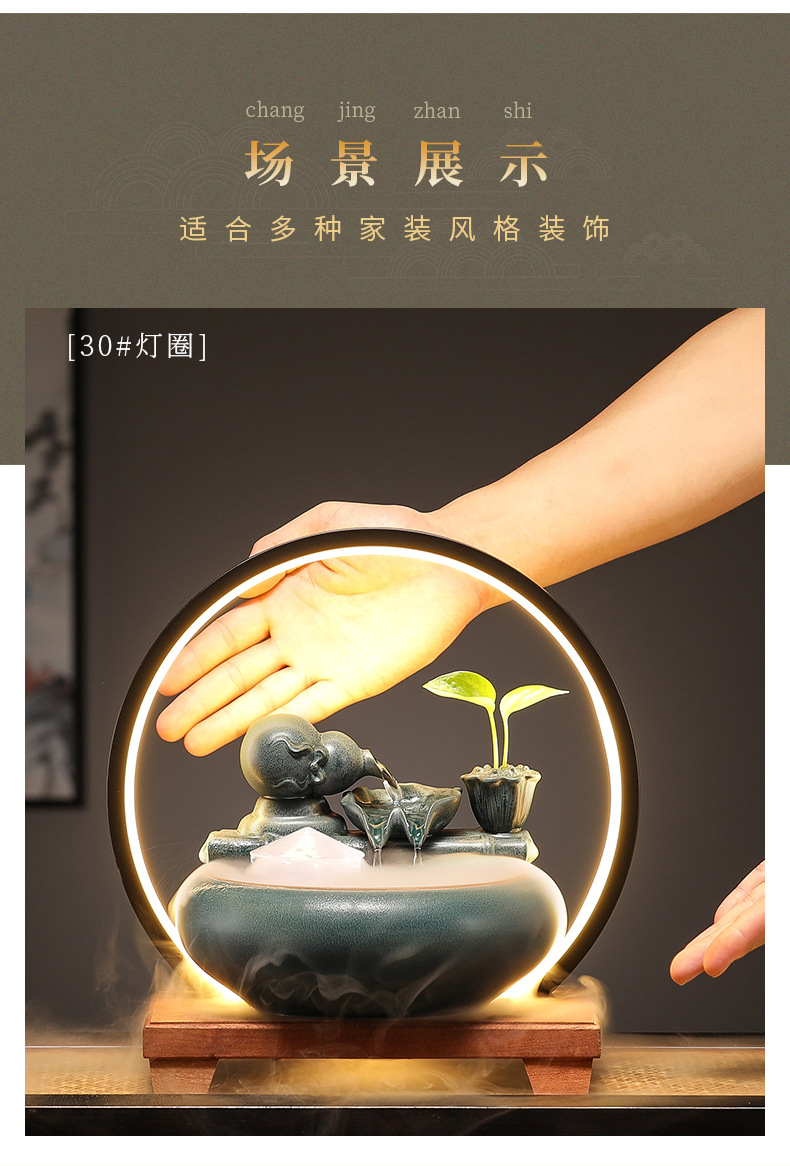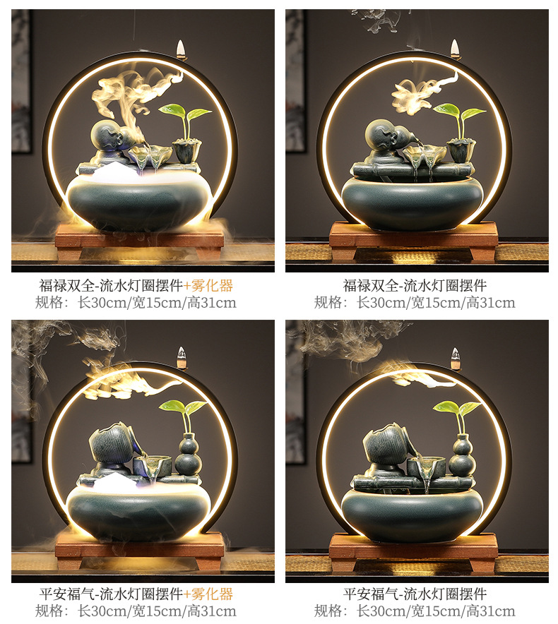 새로운 중국 스타일 부 초대 물 장식품 세라믹 작은 데스크탑 거실 차 테이블 사무실 장식 순환 물 물고기 탱크스토어 가기