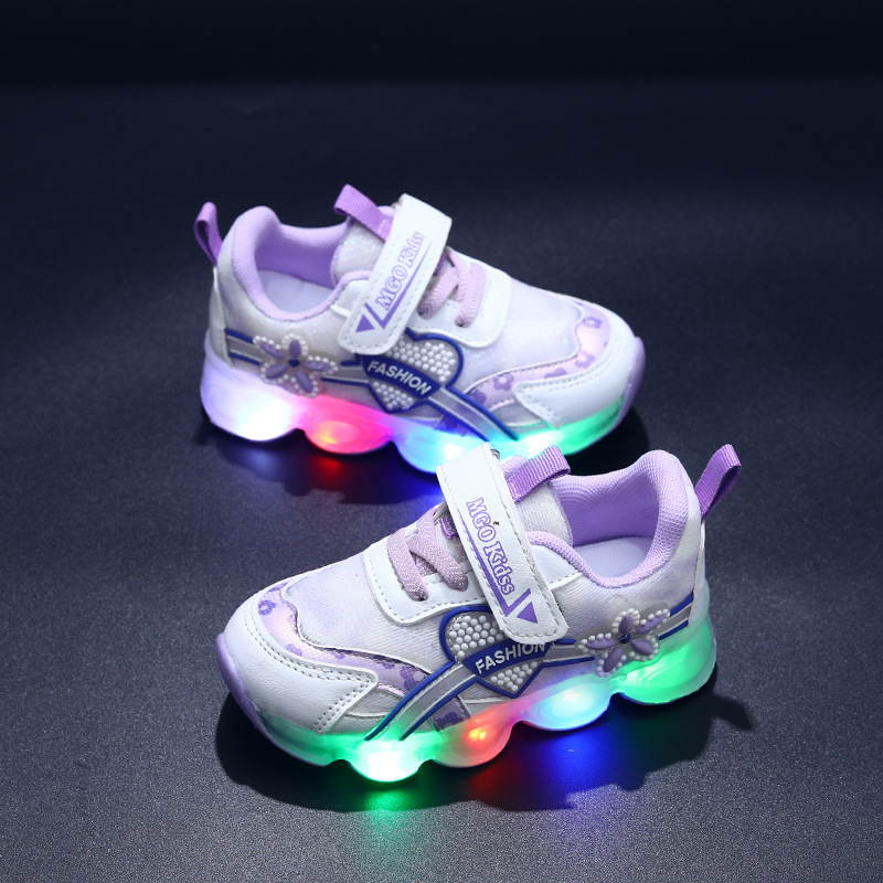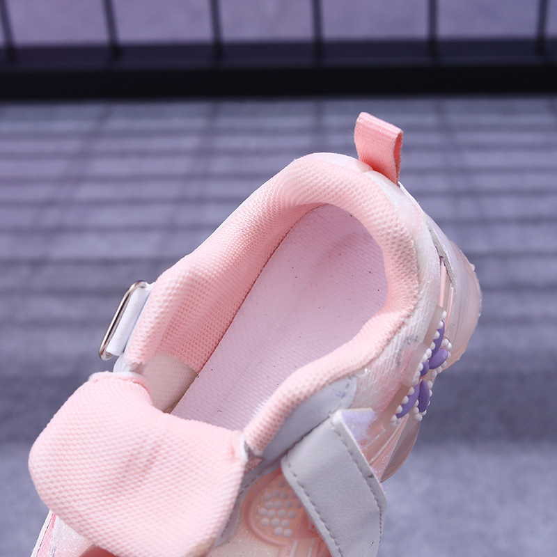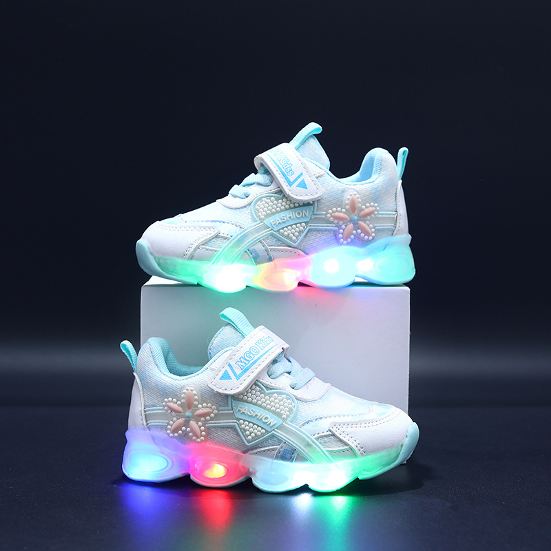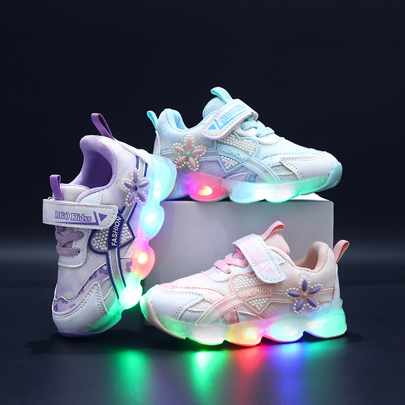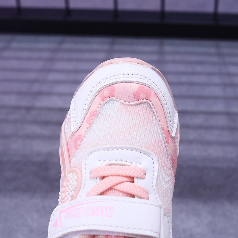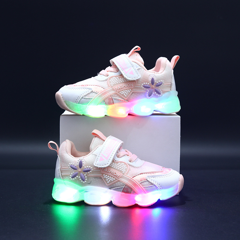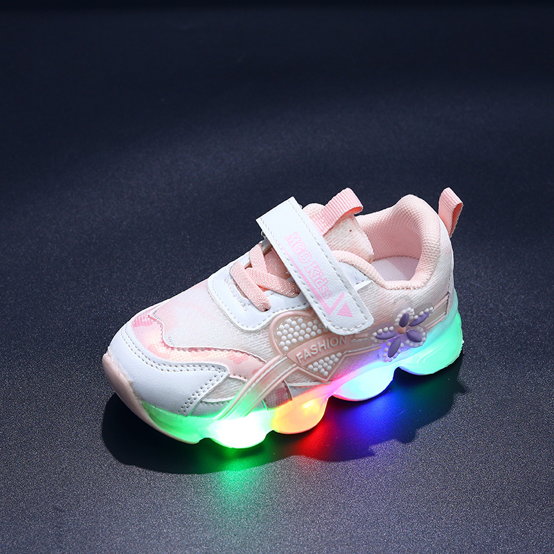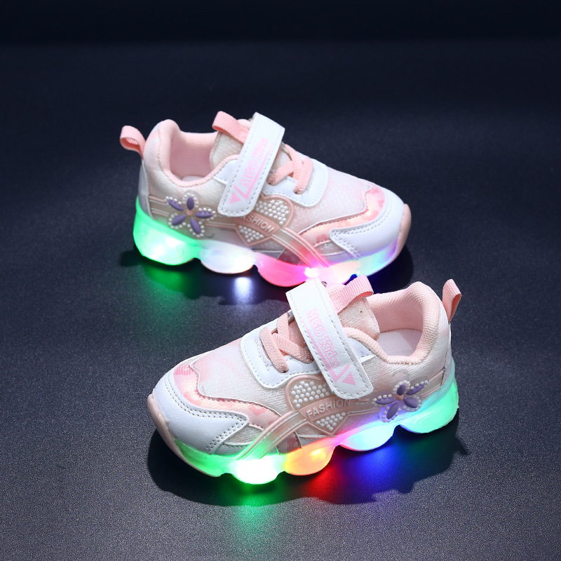 밝은 어린이 운동화 사랑의 꽃 2024 새로운 통기성 소녀 공주 달리기 신발 1-6 년 빛나는 신발스토어 가기