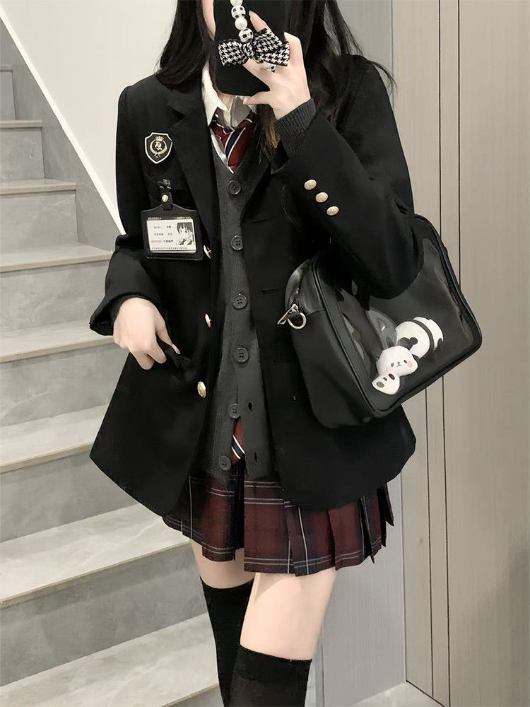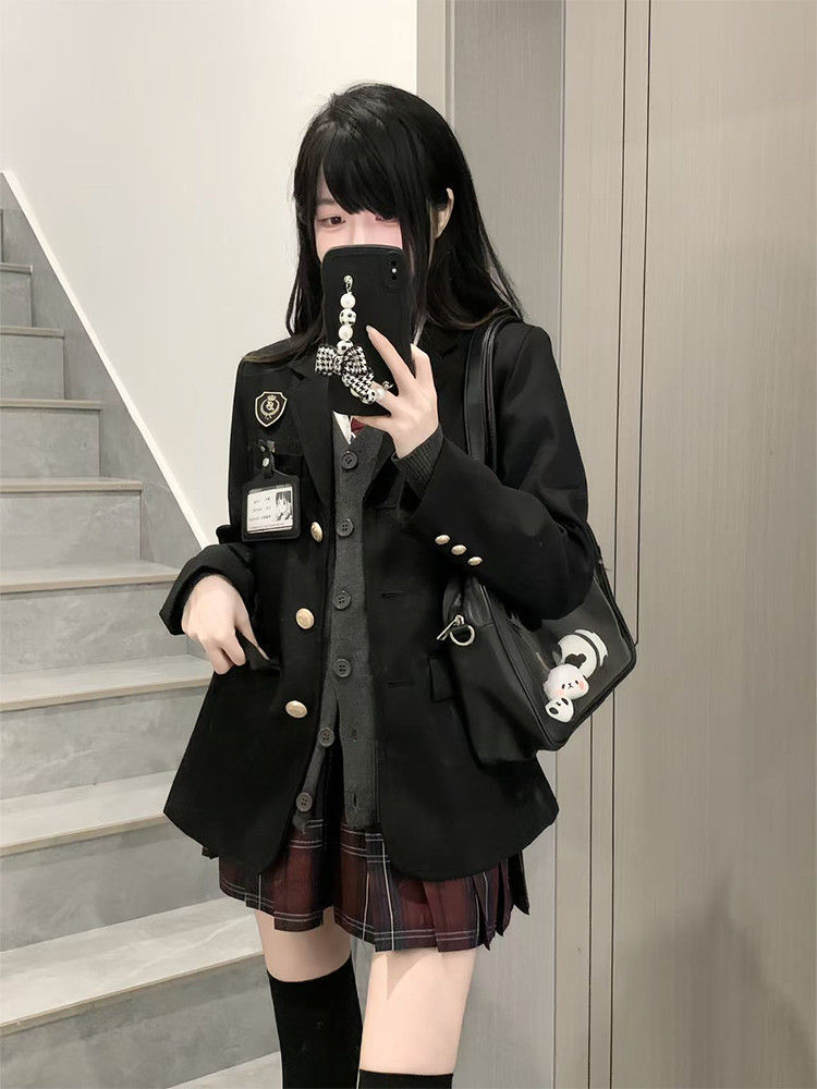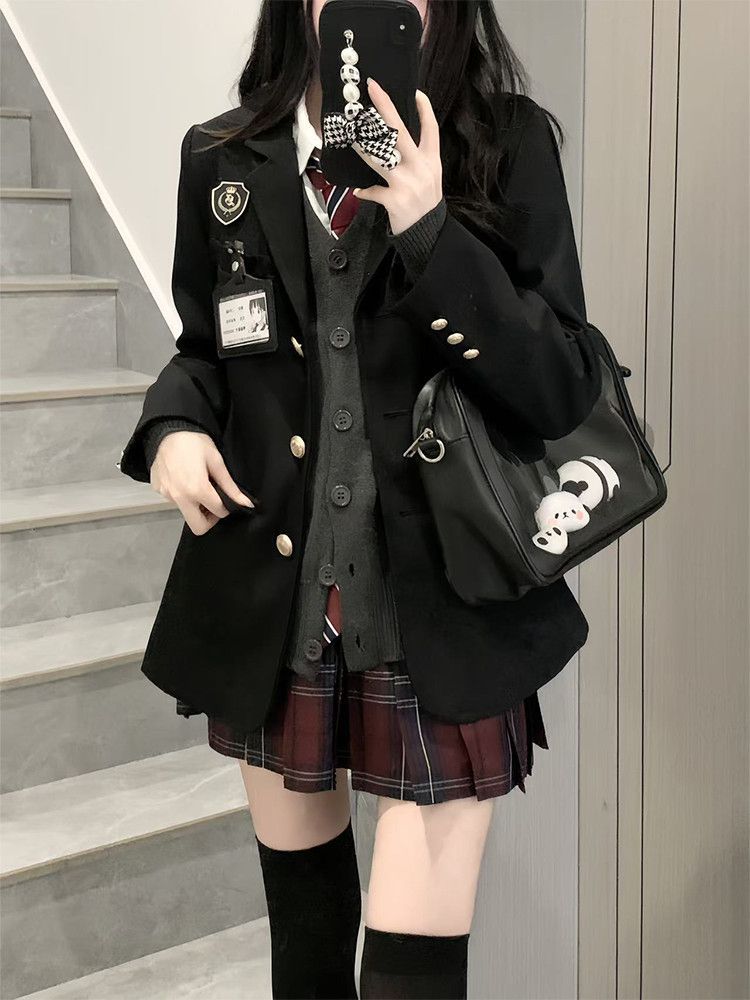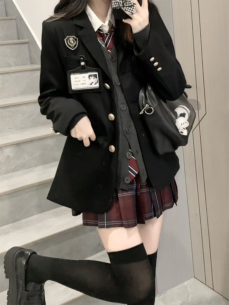오리지널 jk 유니폼 세트 여성 가을 및 겨울 정품 대학 스타일 학교 원피스 니트 카디건스토어 가기