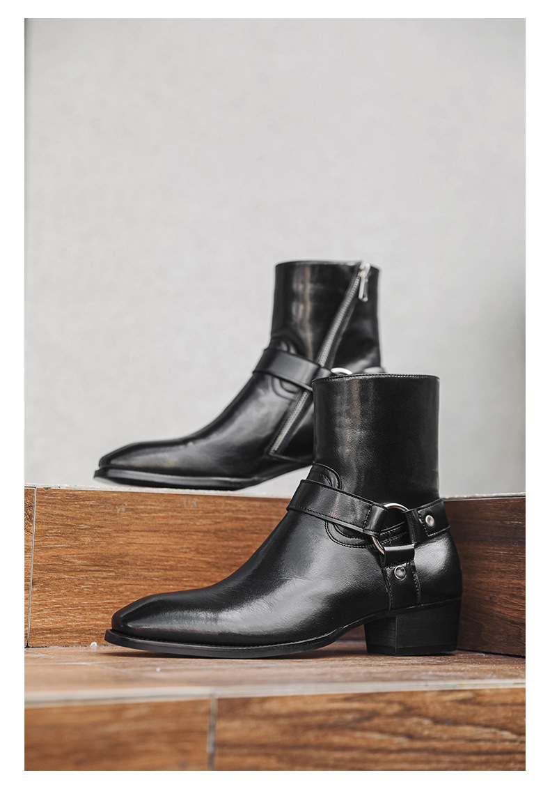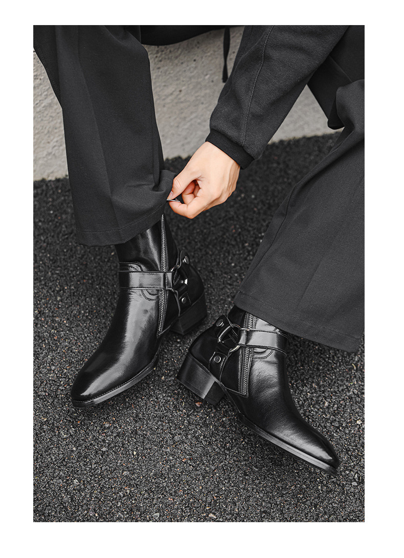 2024 가을과 겨울 새로운 남자 부츠 유럽과 미국의 영국 스타일 첼시 부츠 두꺼운 바닥 증가 단순 원피스 마틴 부츠