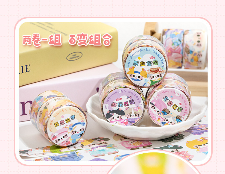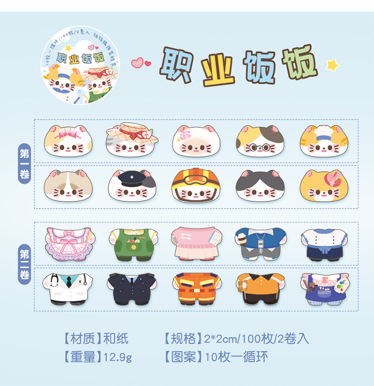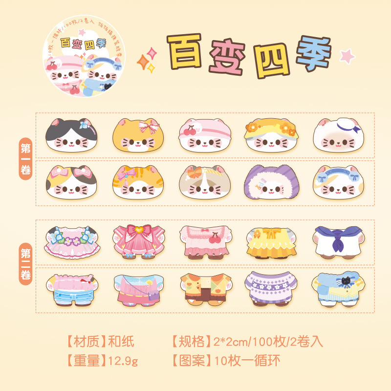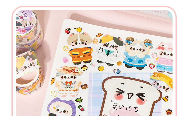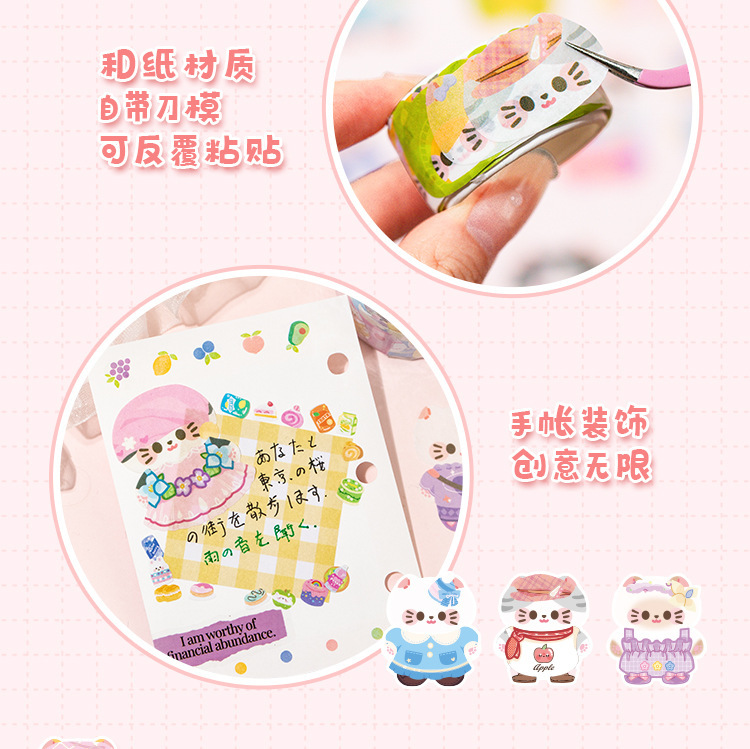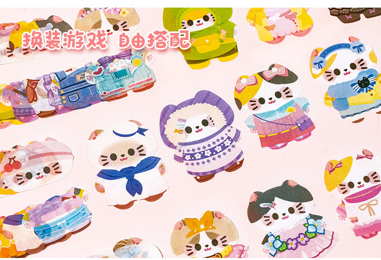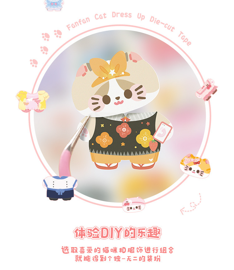 언어 레저 팬팬 고양이 원피스 다이 커팅 및 종이 테이프 귀여운 만화 사랑스러운 옷장 착용 손 계정 소재 콜라주스토어 가기