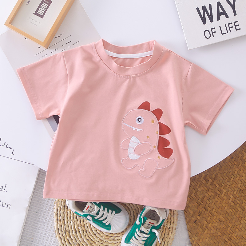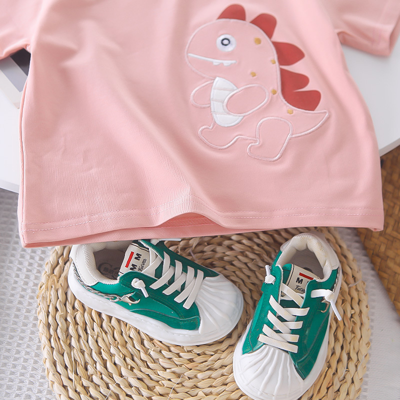 여름 새로운 어린이 아기 서양식 투피스 세트 한국 스타일 여름 새로운 캐주얼 자수 공룡 반팔 세트스토어 가기