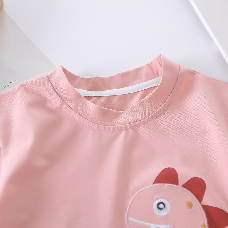 여름 새로운 어린이 아기 서양식 투피스 세트 한국 스타일 여름 새로운 캐주얼 자수 공룡 반팔 세트