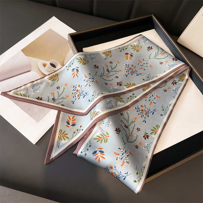 우아한 간단한 베벨 헤어 더블 레이어 스카프 장식 실크 스카프 통근 봄과 여름 베벨 목 보호 스카프 올매치 얇은 좁은 리본