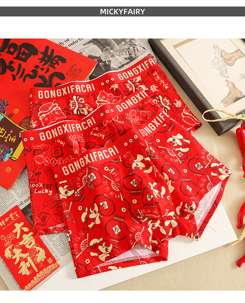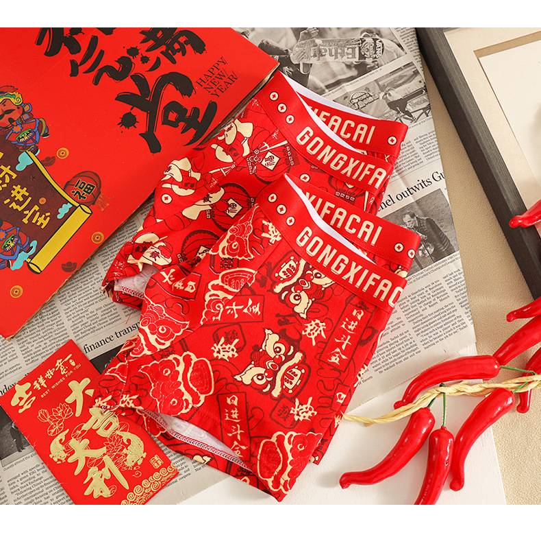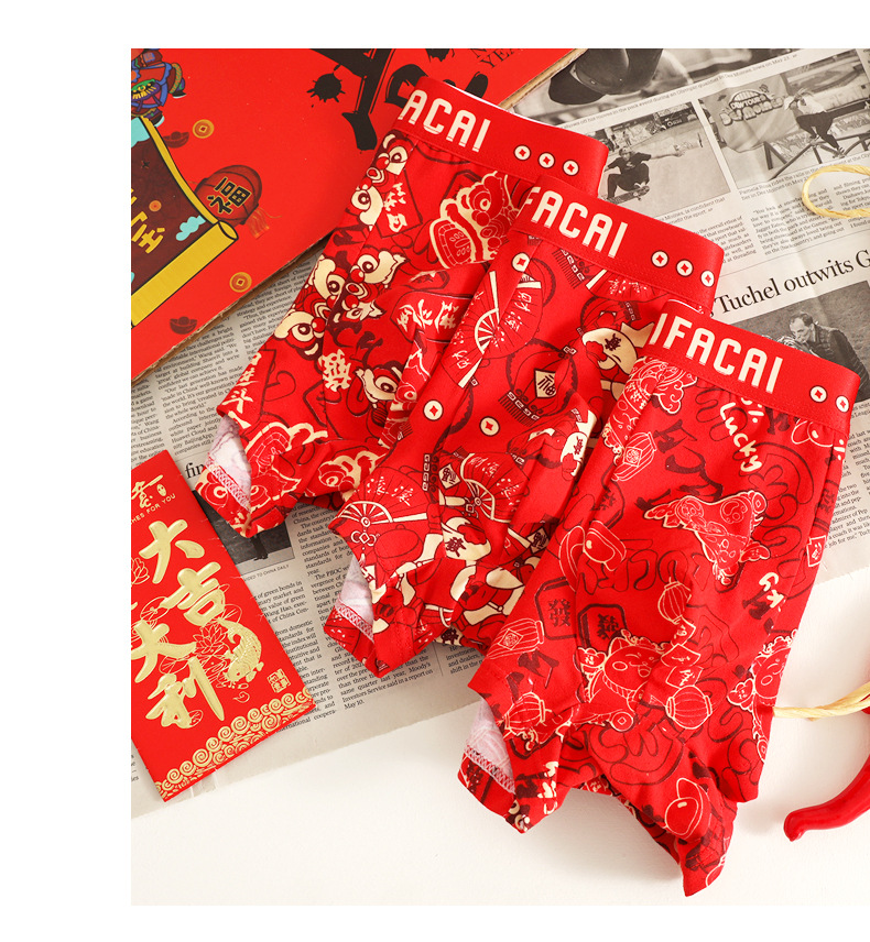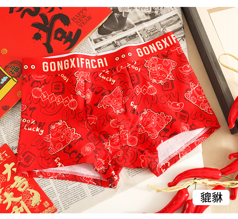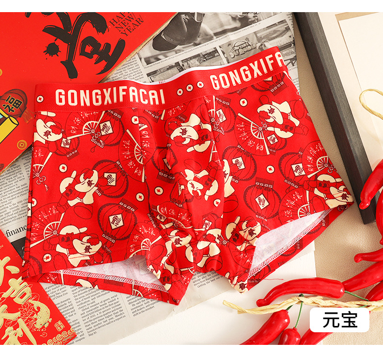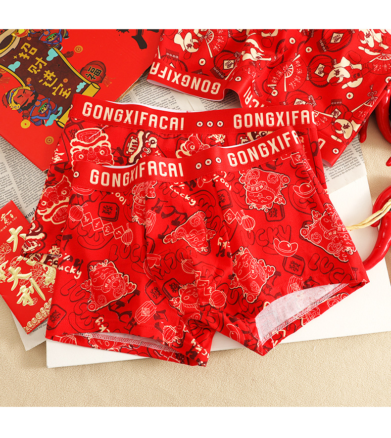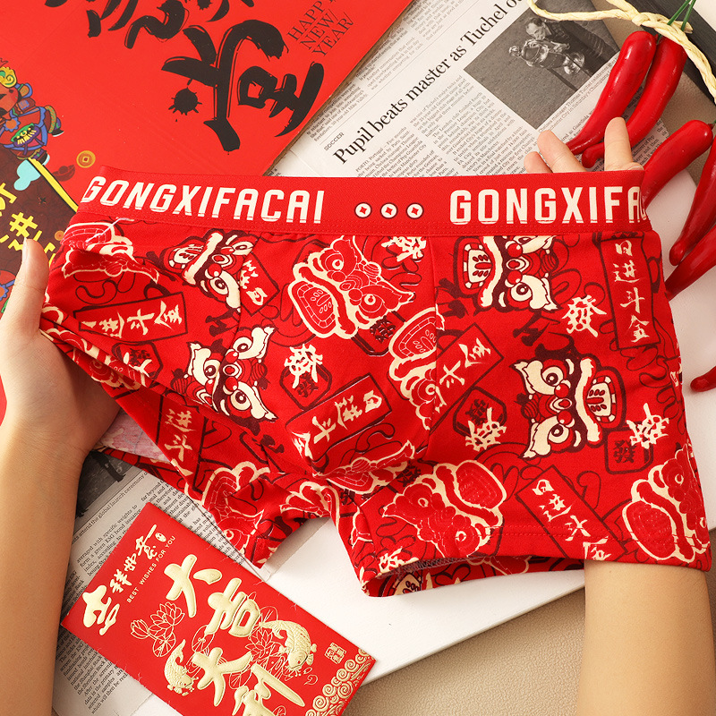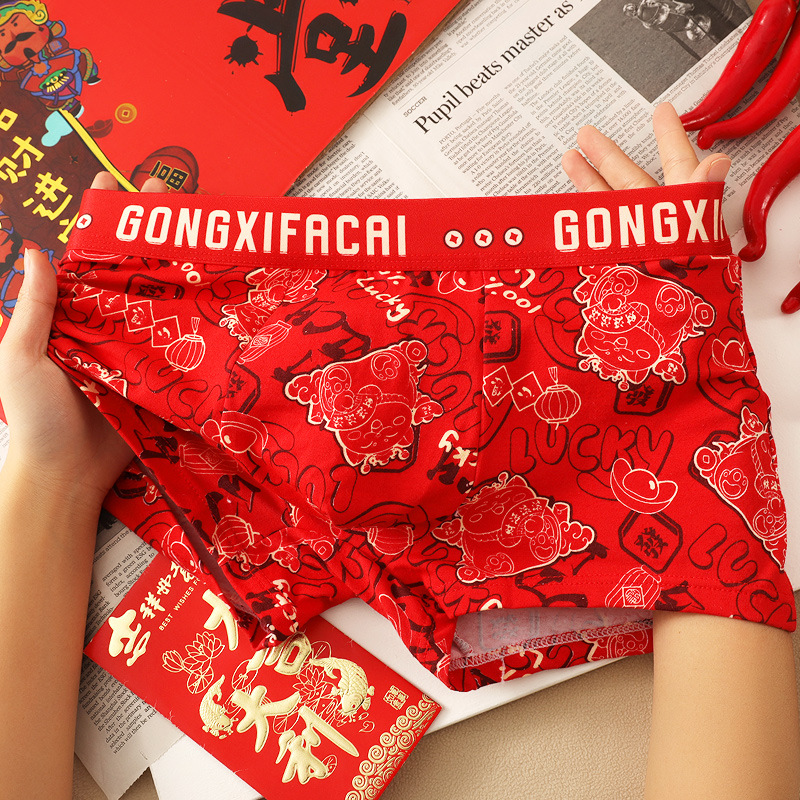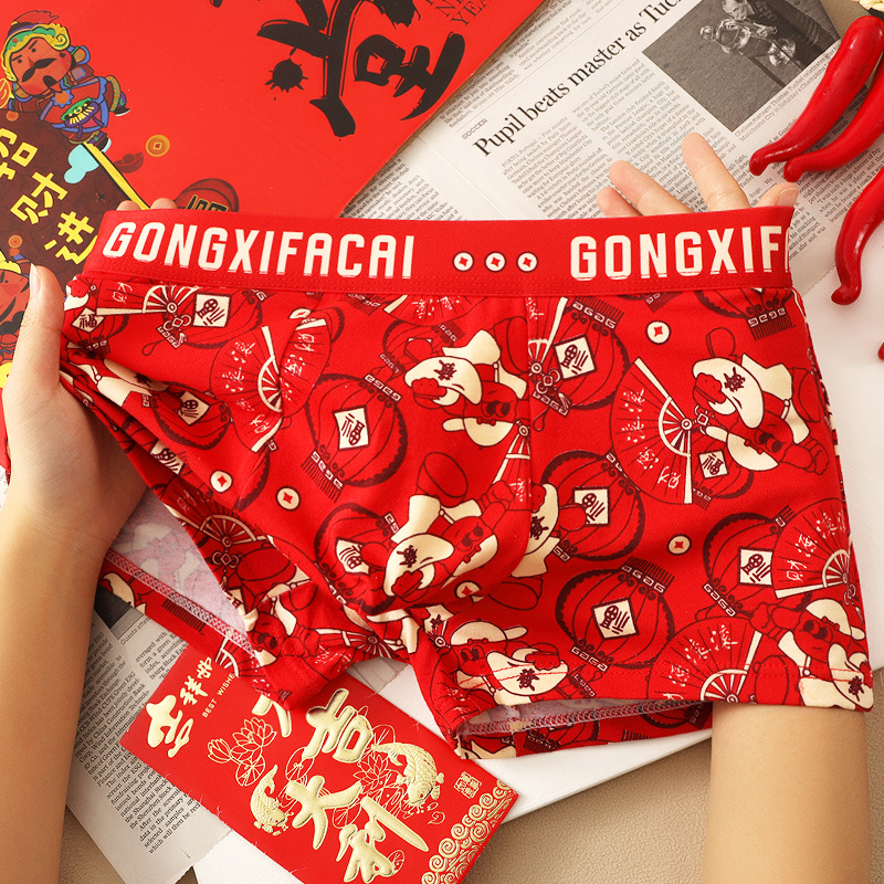 공장 도매 올해 빨간 행운의 남자 속옷 남성용 면화 복서 결혼식 새로운 시대의 머리