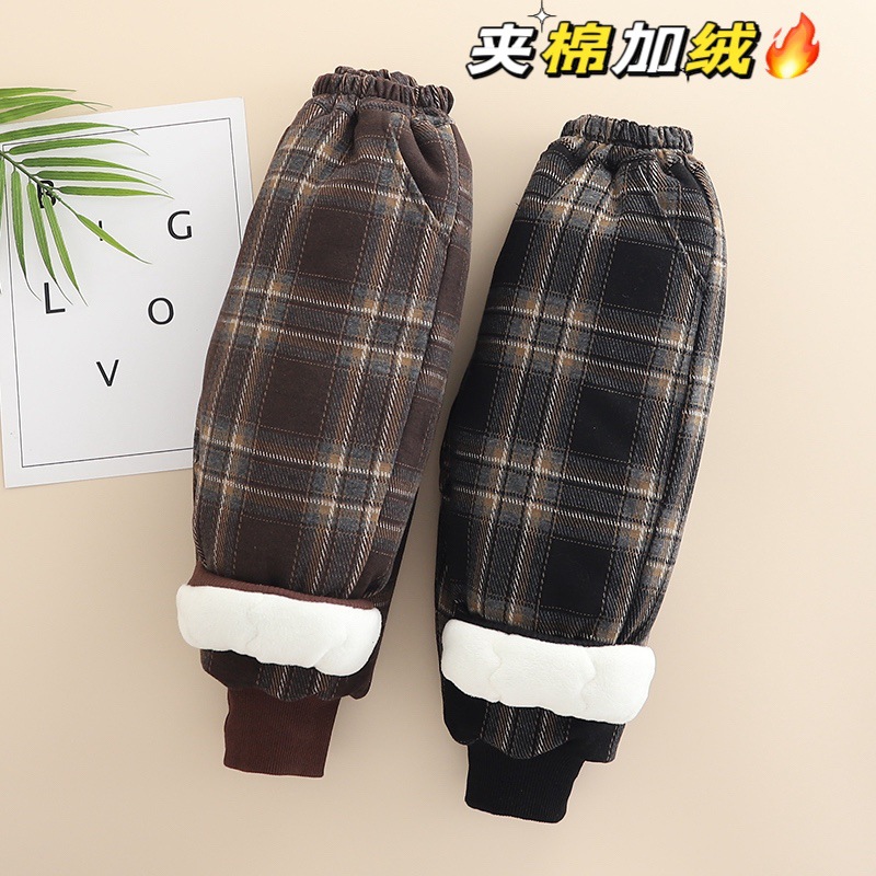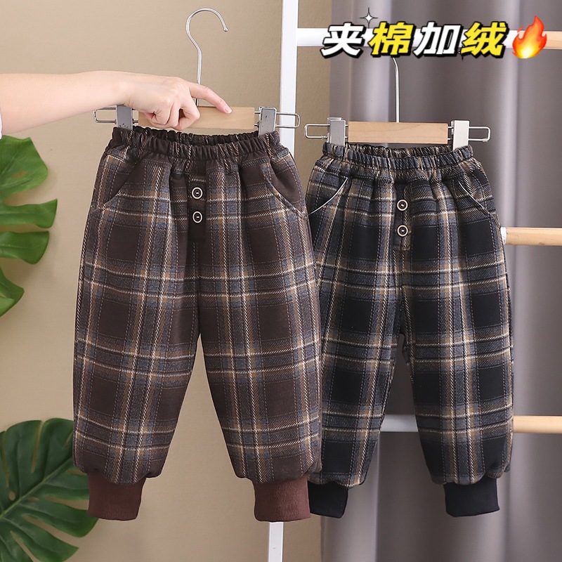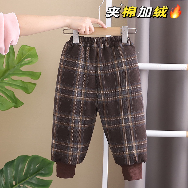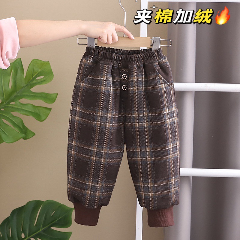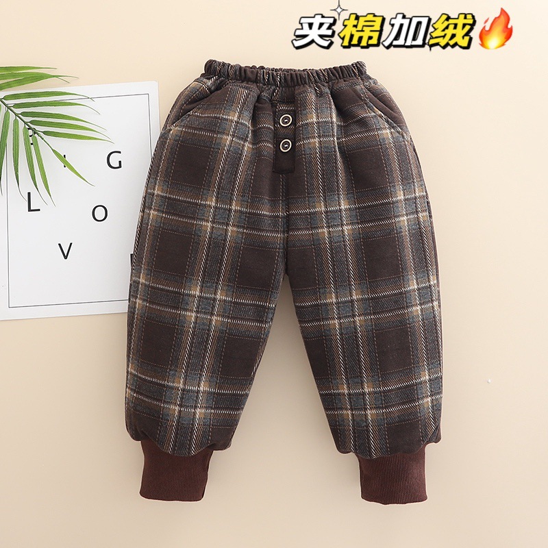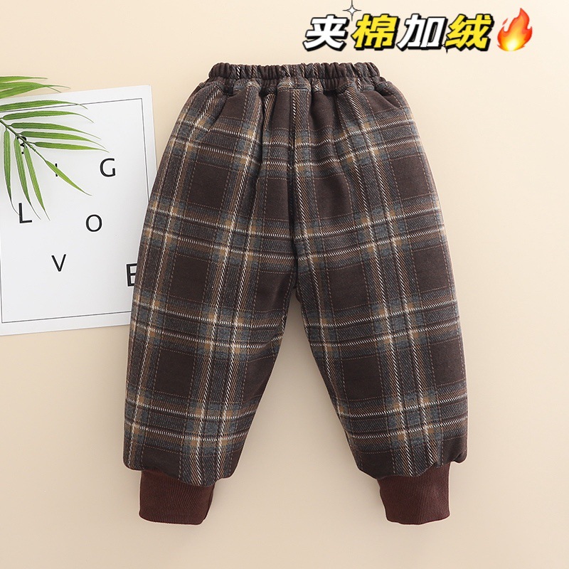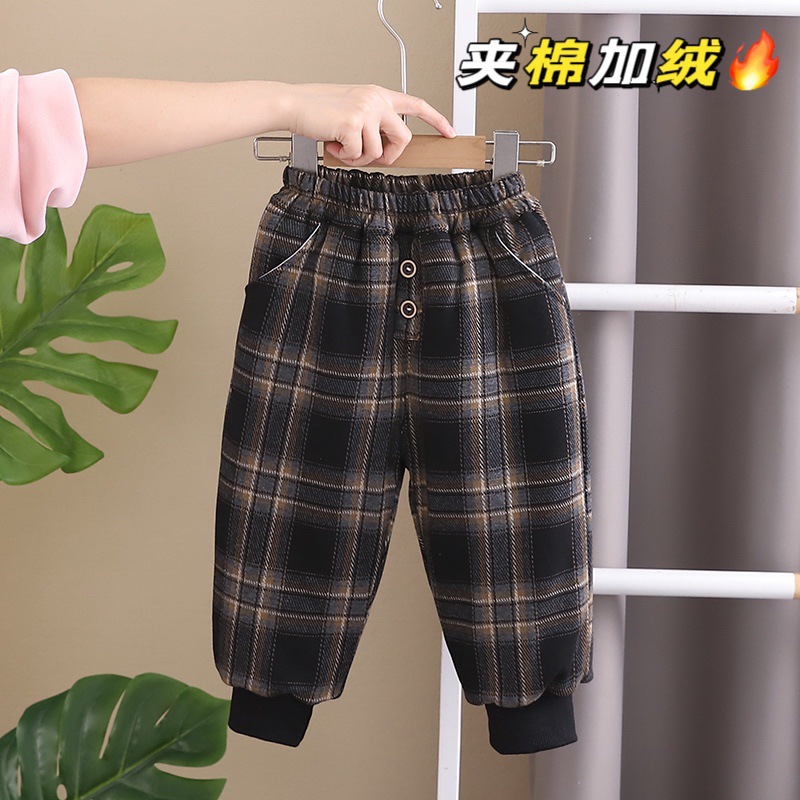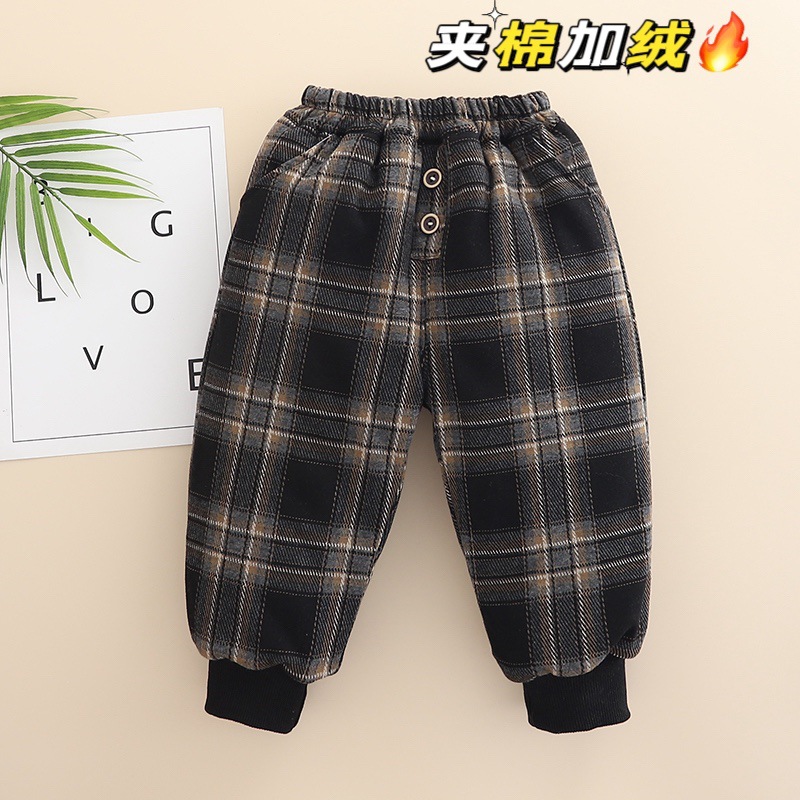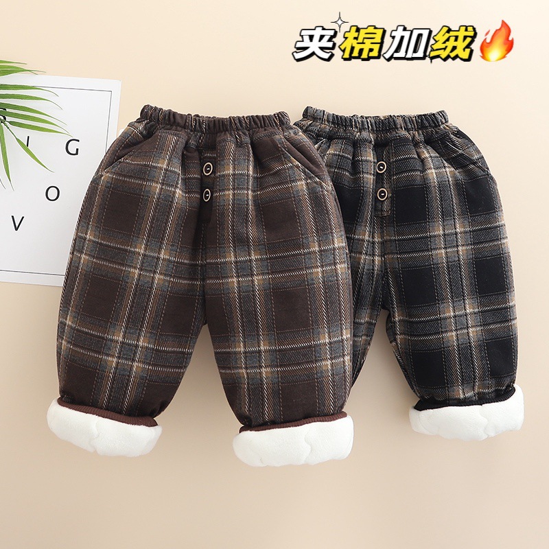 무료 배송 Yikids 겨울면 바지 아기 격자 무늬 겨울 두꺼운 따뜻한 면 기모 겨울 긴 바지스토어 가기