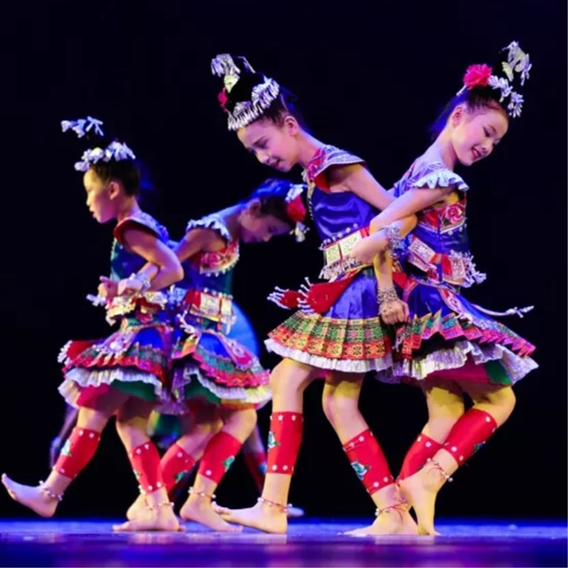 제 10 회 샤오 허 스타일 밟는 컬러 댄스 의류 어린이 먀오이 소수 6 월 1 일 댄스 공연 의류