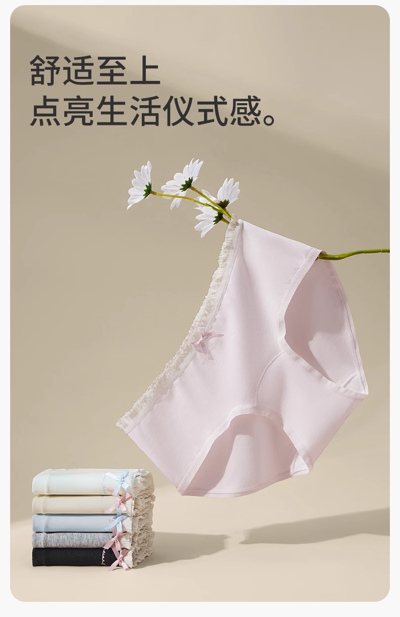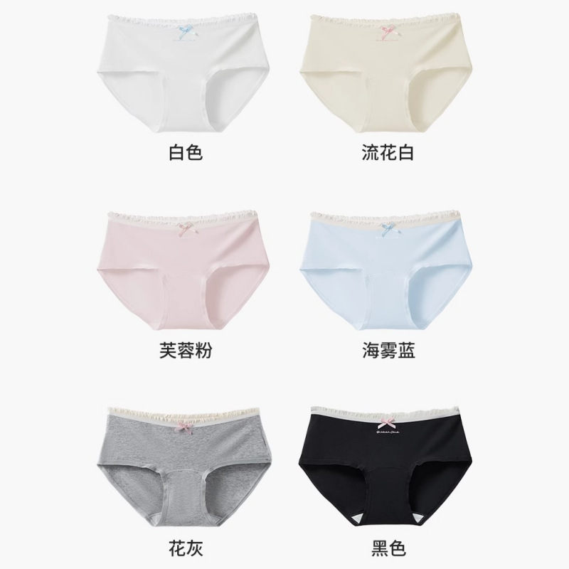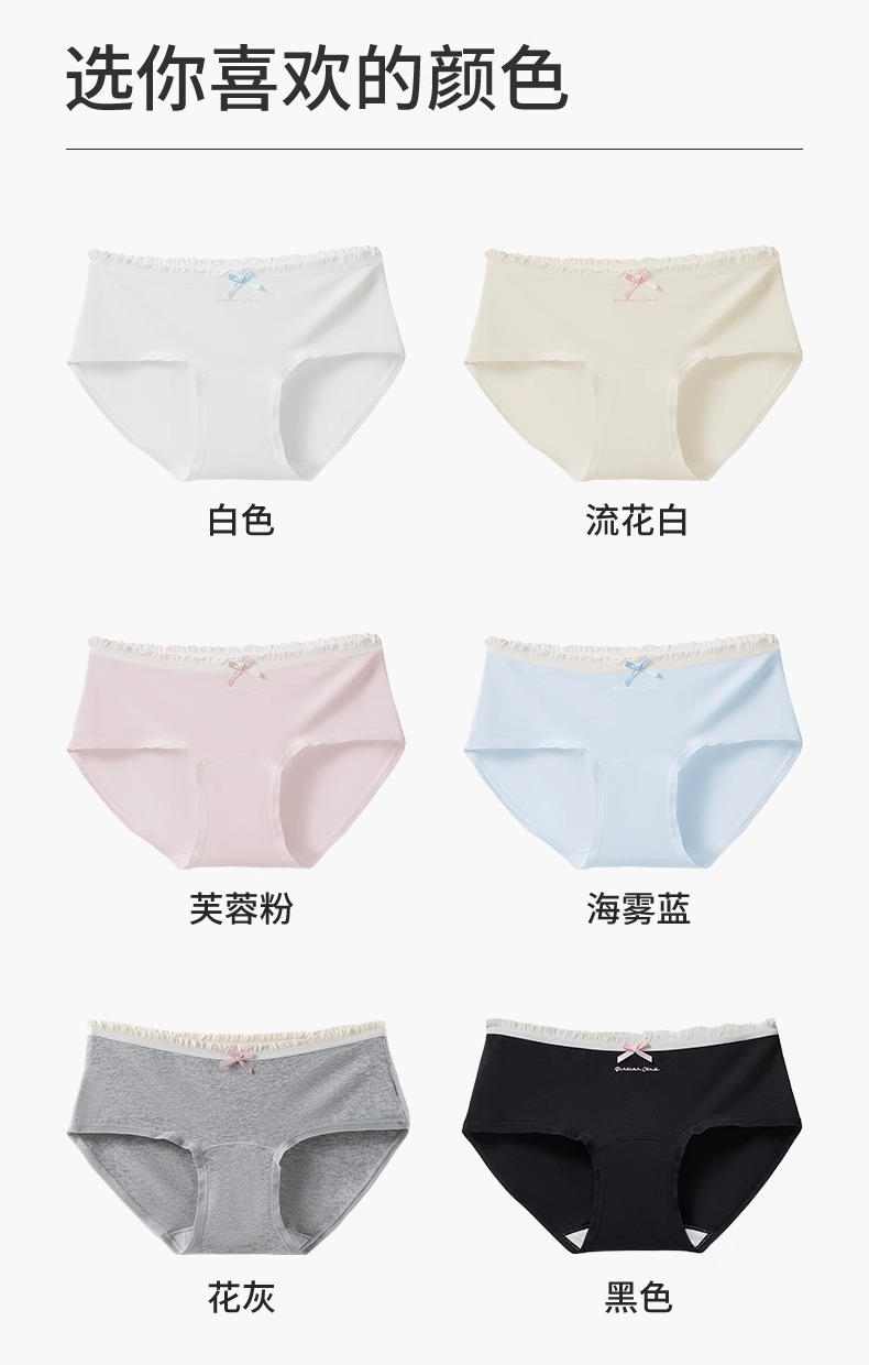 클래스 순수한면 소녀 속옷 2024 새로운면 7A 항균 길어진 숙녀 중간 허리 삼각형 반바지스토어 가기