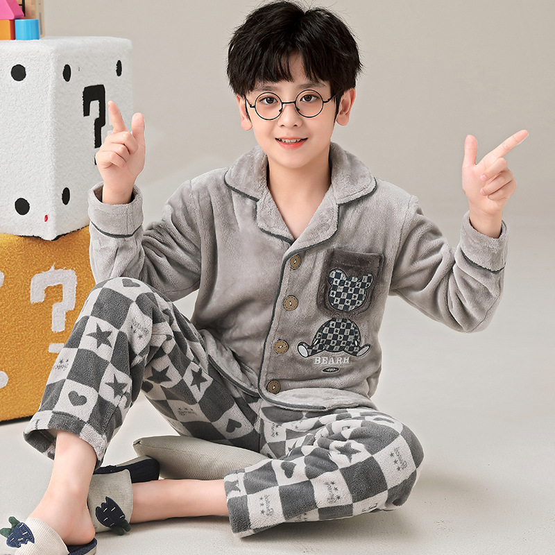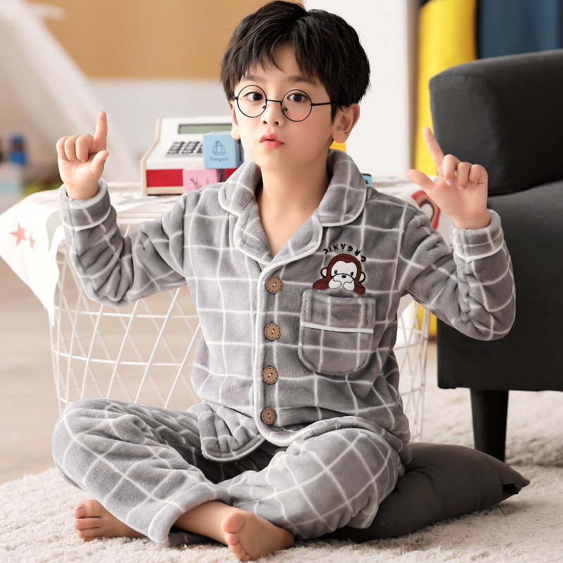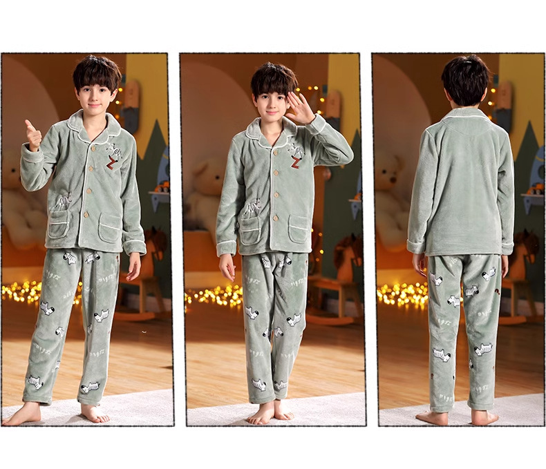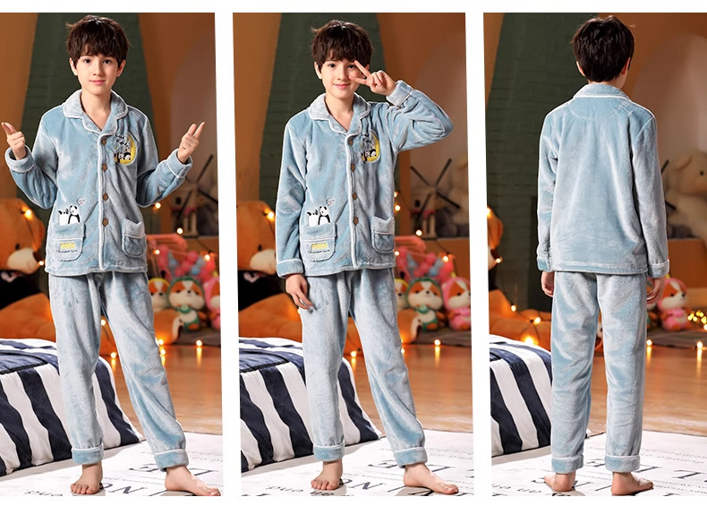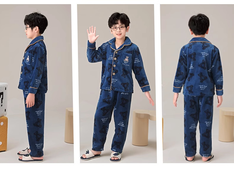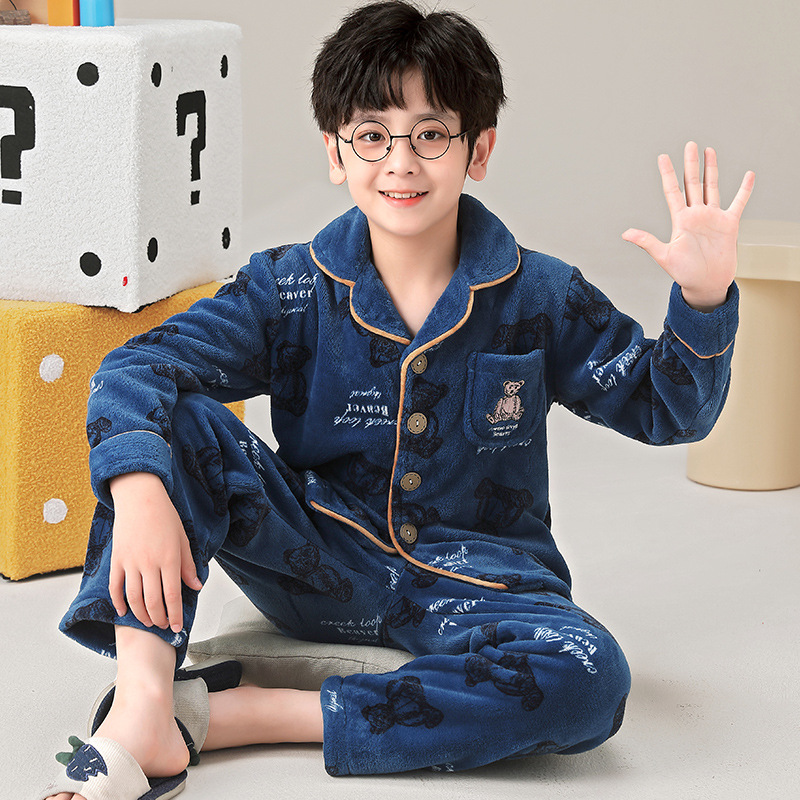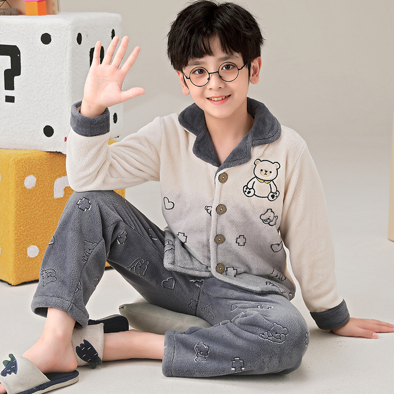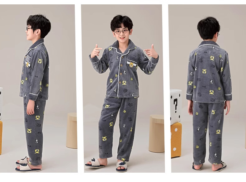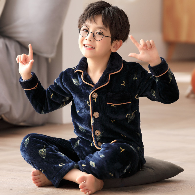 겨울 잠옷 소년의 산호 벨벳 기모 두꺼운 어린이 플란넬 가을과 겨울 어린이 세트스토어 가기