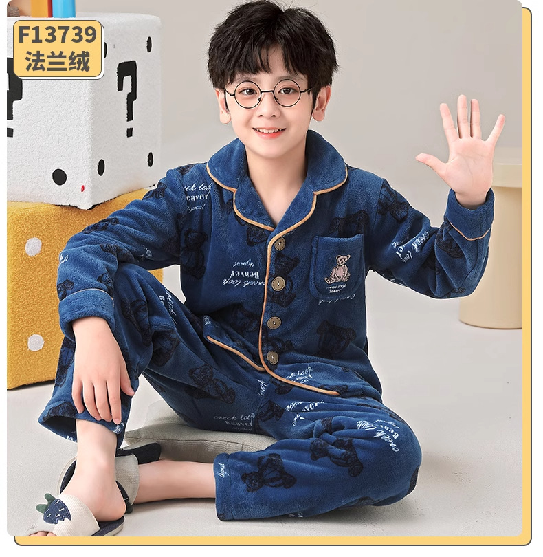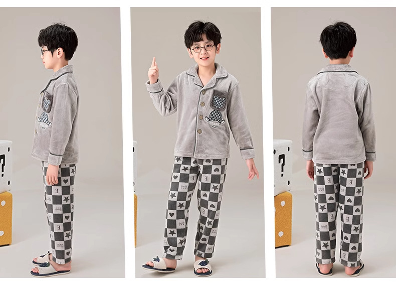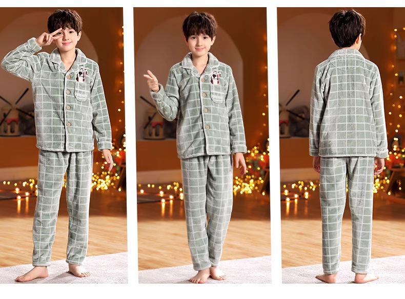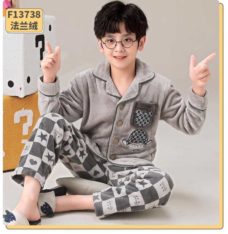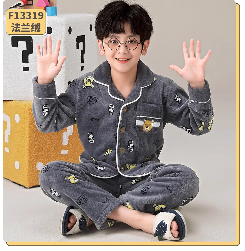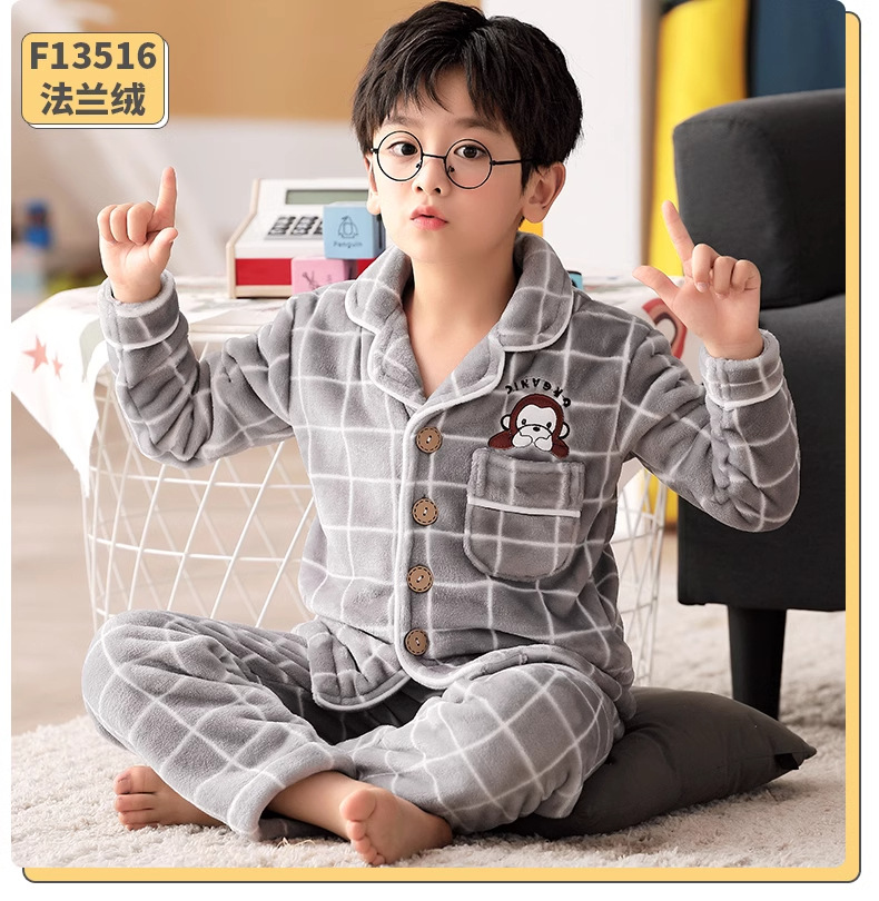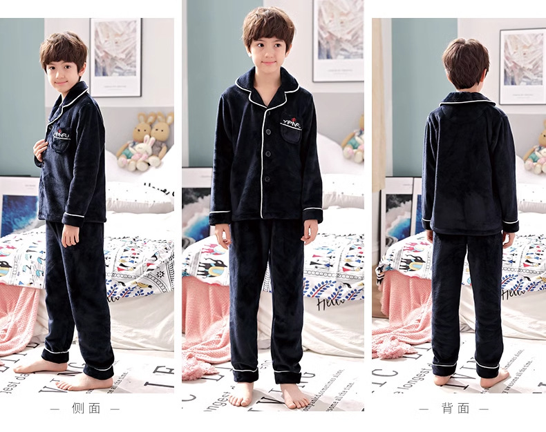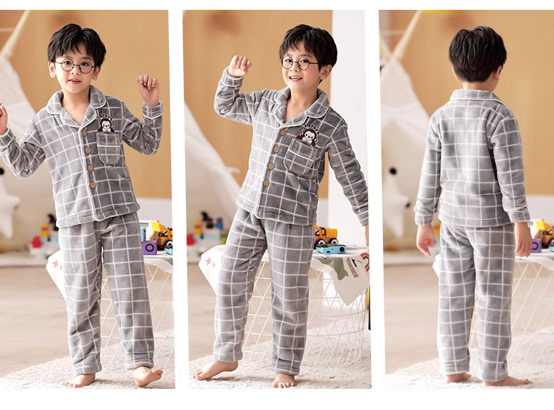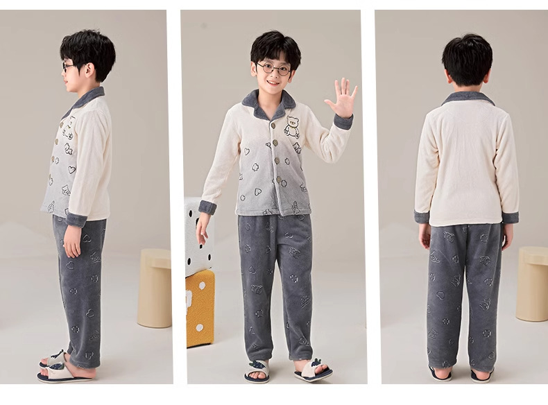 겨울 잠옷 소년의 산호 벨벳 기모 두꺼운 어린이 플란넬 가을과 겨울 어린이 세트스토어 가기